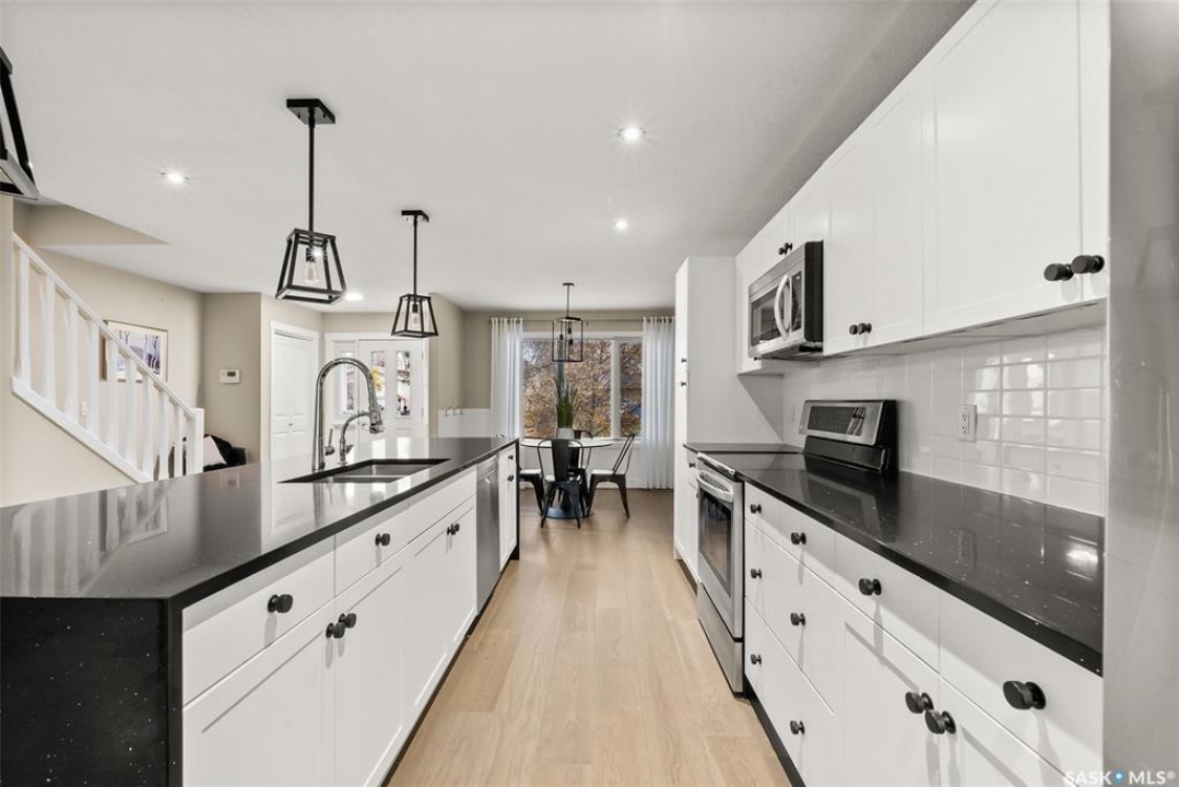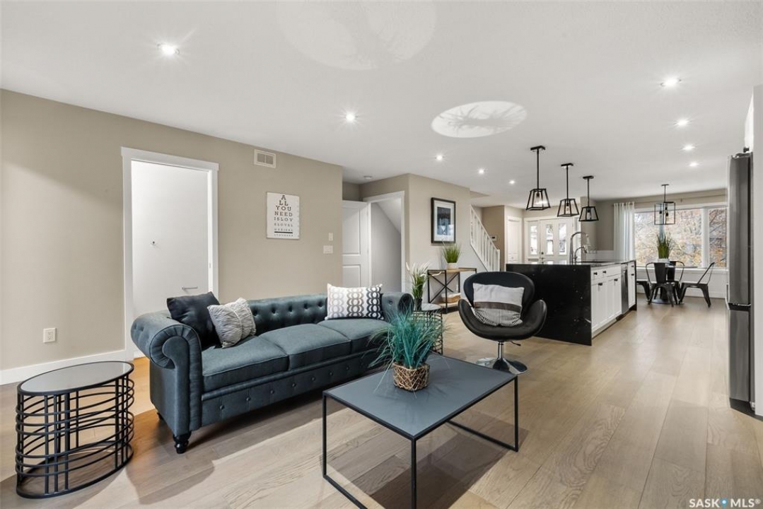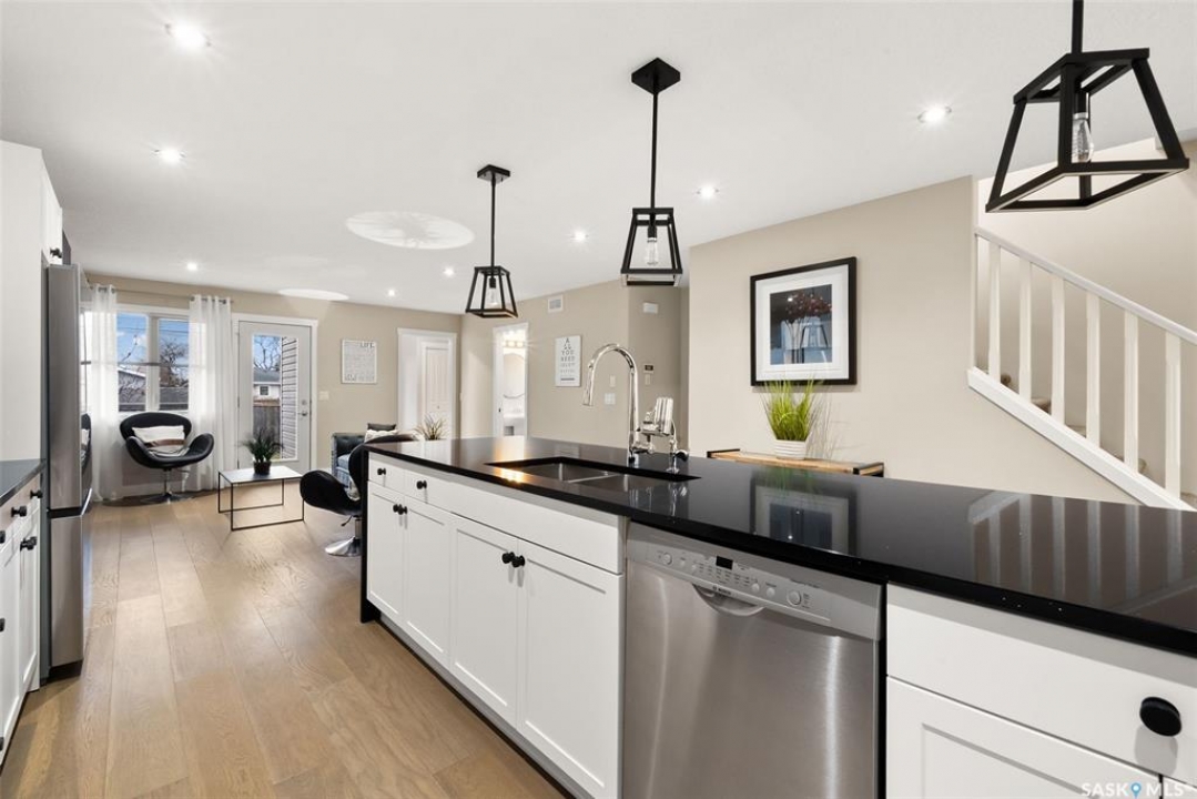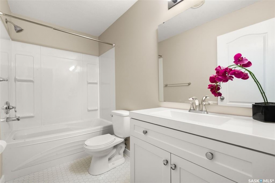 Stylish, move-in ready two-storey in Churchill Downs with a bright open concept and a long list of recent upgrades. The main floor features a large living room with feature fireplace wall, dining area, and a refreshed white kitchen with quartz-style countertops, tile backsplash and a full stainless appliance package. Convenient main-floor laundry and a handy 2-pc bath complete this level. Upstairs you'll find 3 bedrooms including a spacious primary suite with 4-pc ensuite, plus another full 4-pc bath. The lower level is a terrific hangout with a huge rec room and a newer 4-pc bath. Updates in 2025 include: fresh interior paint, new basement flooring, updated light fixtures, countertop refresh throughout, and deck repairs—giving the home a modern, cohesive look. Outside, enjoy the fully fenced yard with a large west-facing deck and lawn—great for kids, pets, and summer BBQs. Close to parks, schools, and amenities, this 2008 build offers 1,680 sq ft above grade with family-friendly spaces on every level. A fantastic turnkey option with room to grow.