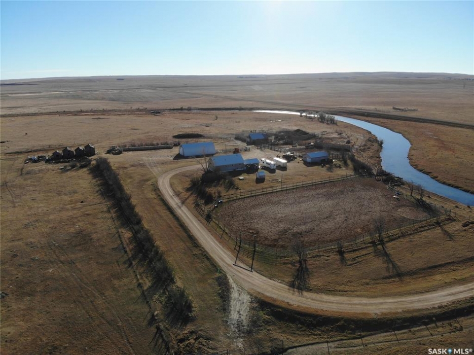 This property comprises a quarter section located in the Rural Municipality of Hart Butte just minutes from the Town of Coronach. Girard Creek runs through the land, providing a reliable and abundant water source for the ranch at all times. Natural gas is available on the property. Residential Buildings The main residence is a 4 bed/2 bath house featuring a one-car attached garage. Currently, this attached garage serves as a porch and utility room. The house is wired to accommodate a backup generator, ensuring continued operations during power outages. Outbuildings and Infrastructure • The Horse barn is constructed with a concrete floor and is fully serviced with both power and water. • A large Quonset building measuring 40 by 60 feet offers ample space for equipment storage or other needs. • The property features corrals and three watering bowls to support livestock operations. • A separate, one-car detached garage is equipped with electrical power, providing additional storage or workspace. • Outdoor Riding Area in main yard that allows for roping, barrel racing etc. Land and Fencing The entire quarter section is cross-fenced, allowing for effective management and rotation of livestock. Of the total acreage, 50 acres are cultivated, while the remaining 101 acres consist of native grass, supporting both grazing and crop production.