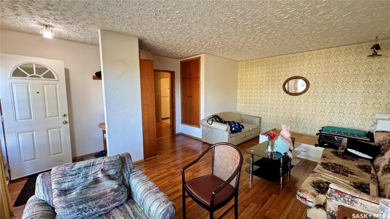 115 1st Street, Davidson, SK – $179,000 Affordable 5-bedroom, 2-bath bungalow for sale in Davidson, Saskatchewan, located within walking distance of local schools and amenities. This 988 sq ft home offers excellent flexibility for families, extended households, or anyone looking for a revenue property in Davidson. The main floor includes a bright living room, eat-in kitchen, three bedrooms, and a 4-piece bathroom. The fully finished basement adds a second kitchen, large family room, two more bedrooms, a full bath, and a den or office which is ideal for multi-family living or a non-regulation basement suite. Updates include laminate flooring, a metal roof, and refreshed finishes, making this property move-in ready. The attached single-car garage opens to a closed-in sunroom overlooking the backyard. A paved driveway and 60' x 138' lot provide ample parking and outdoor space with mature trees. Located halfway between Saskatoon and Regina along Highway 11, Davidson offers convenient central access for commuters. Whether you're searching homes for sale in Davidson, a starter home, or a Saskatchewan investment property, 115 1st Street offers solid value and plenty of potential.
