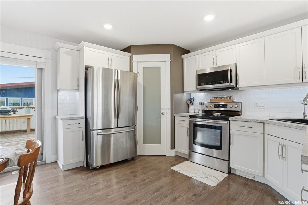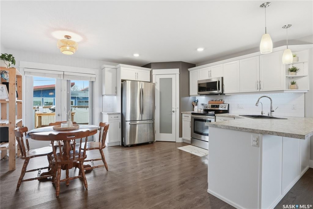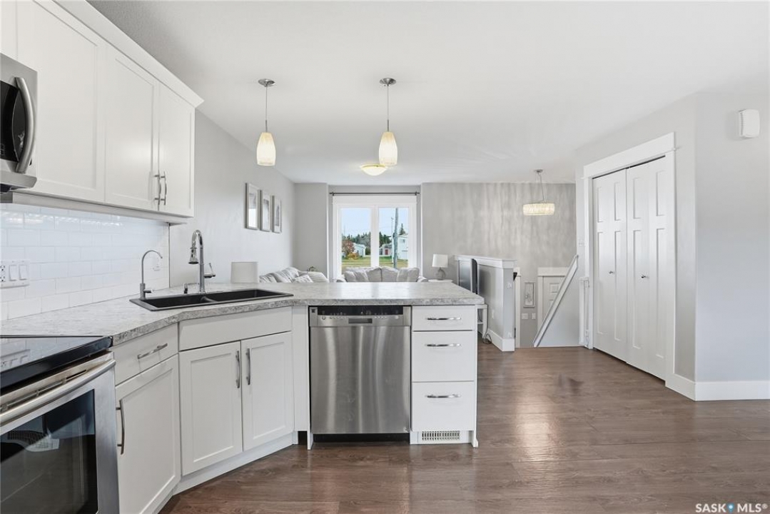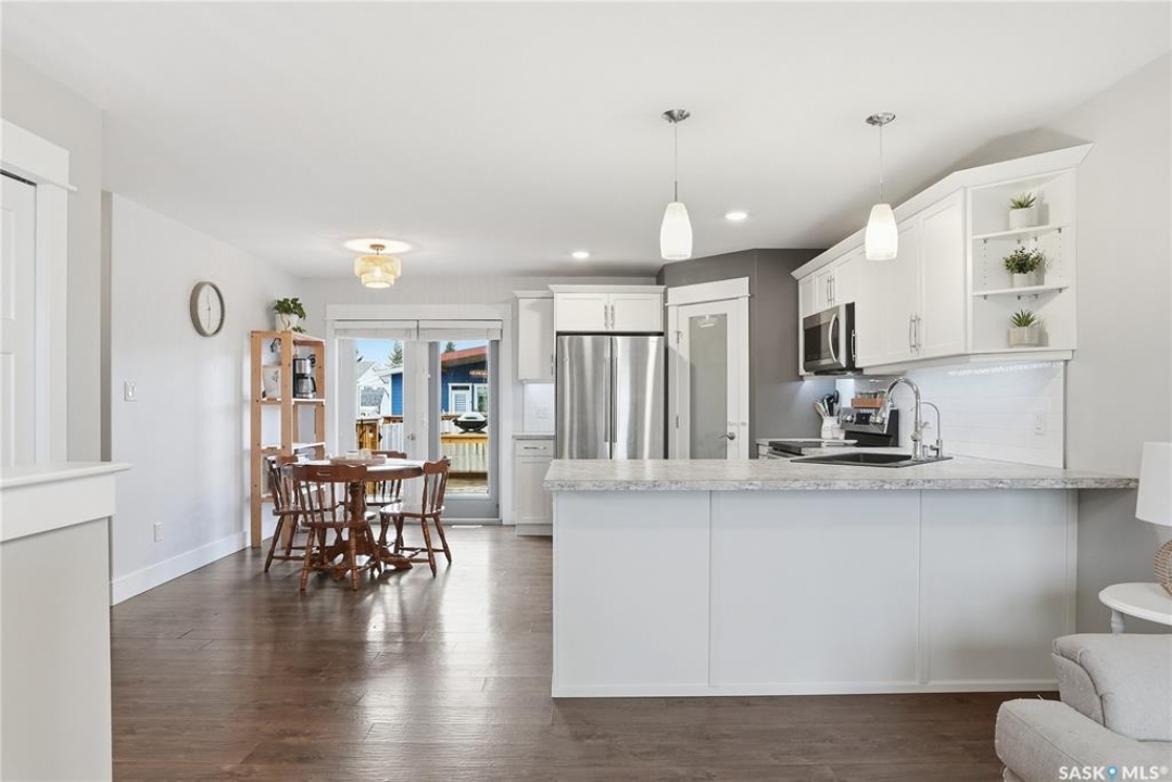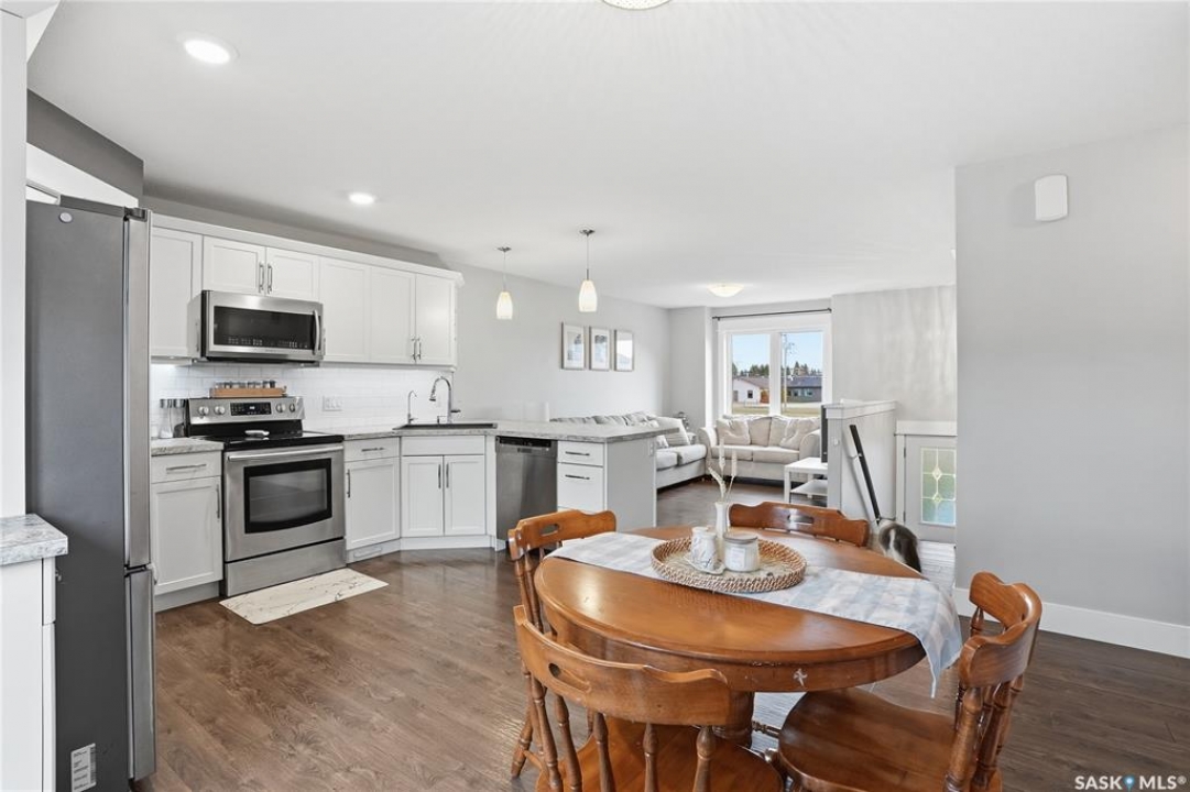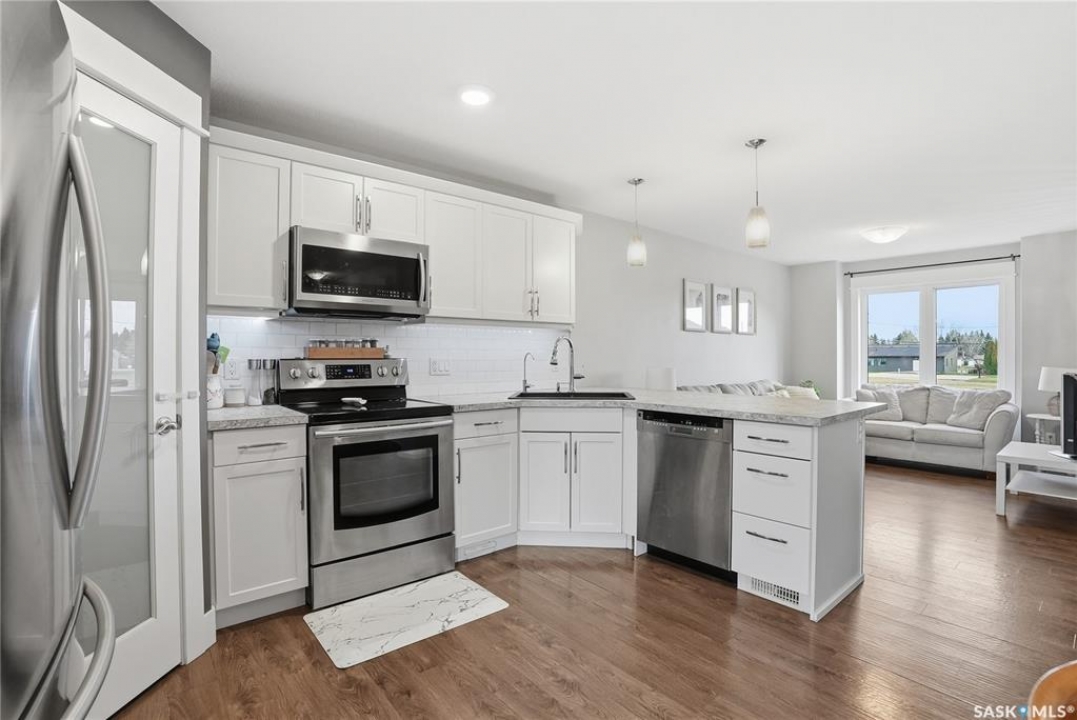 Your Waldheim Welcome Awaits! Discover this beautifully finished home in the heart of Waldheim – the perfect blend of small-town charm and modern comfort. Offering 3 bedrooms and 2 bathrooms on the main level, this home impresses from the moment you step inside. The sleek kitchen features a peninsula-style island with a built-in eating bar, ideal for casual meals or catching up over coffee. The open-concept living and dining area creates a bright, connected space that's perfect for entertaining or relaxing. Downstairs, the fully developed basement adds incredible versatility with a spacious rec room, a 4th bedroom, a 3rd bathroom, and enough room to design your dream gym, home office, or media space. Car lovers will appreciate the heated, fully finished garage, ready for year-round use. Just steps from downtown Waldheim and a short walk to the K-12 school, this location offers the ultimate convenience while giving you that peaceful, community-oriented lifestyle. After the bustle of the city, you'll love the calm of Waldheim – friendly faces, quiet streets, and the feeling of home the moment you arrive. Take the drive out today and see what you've been missing. Your kids will love it here!