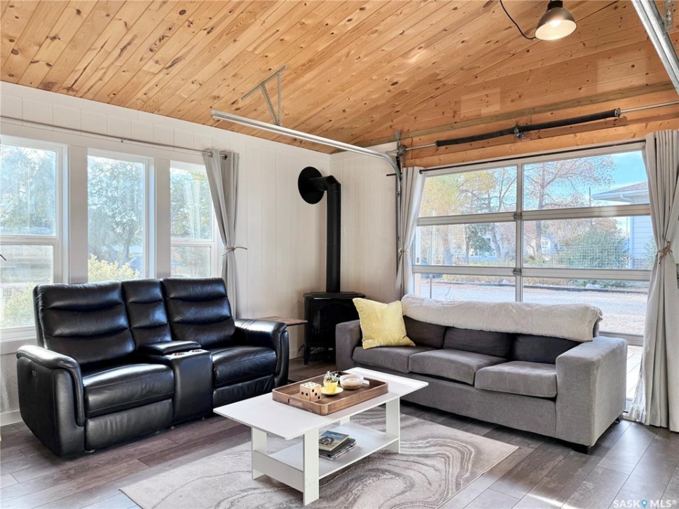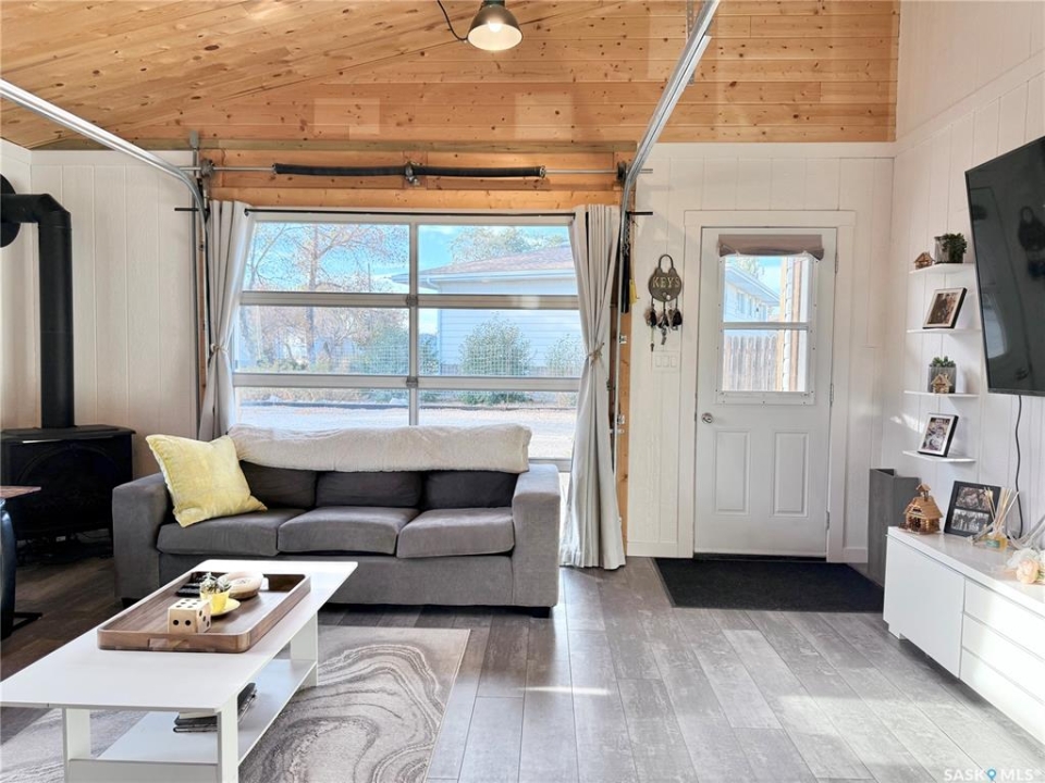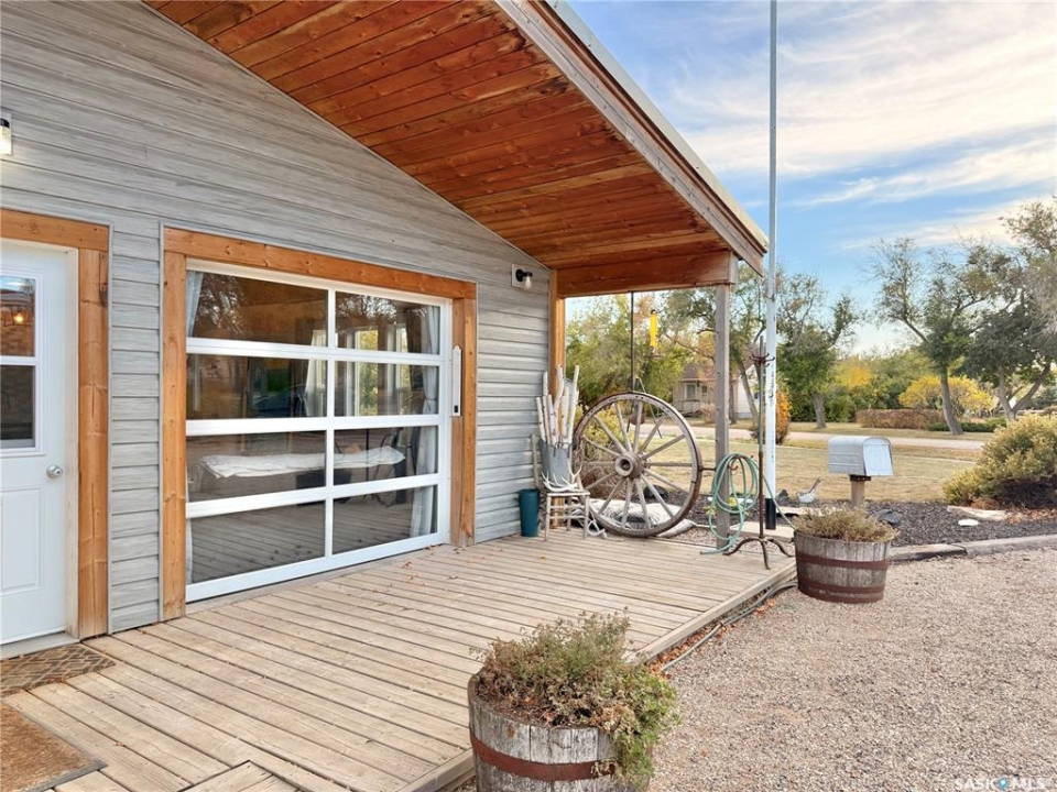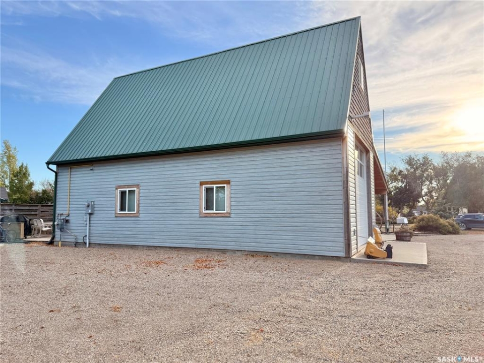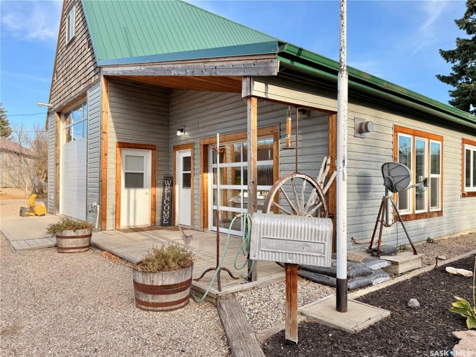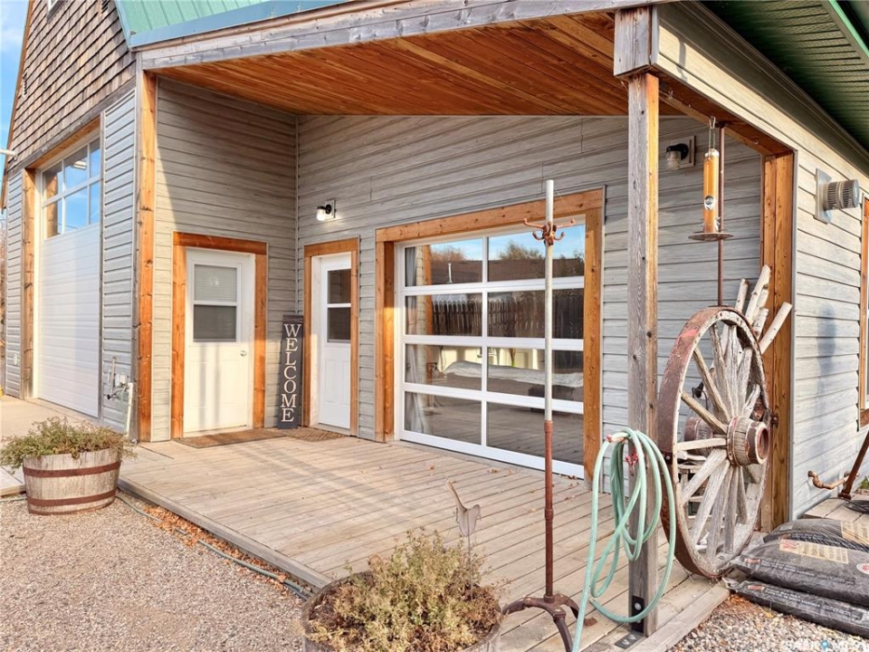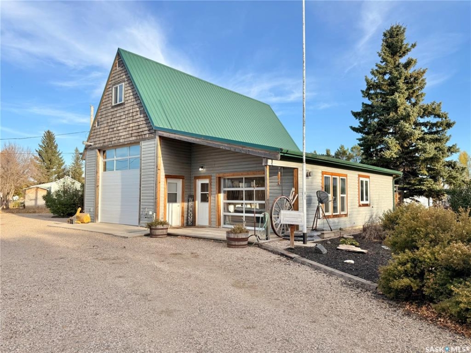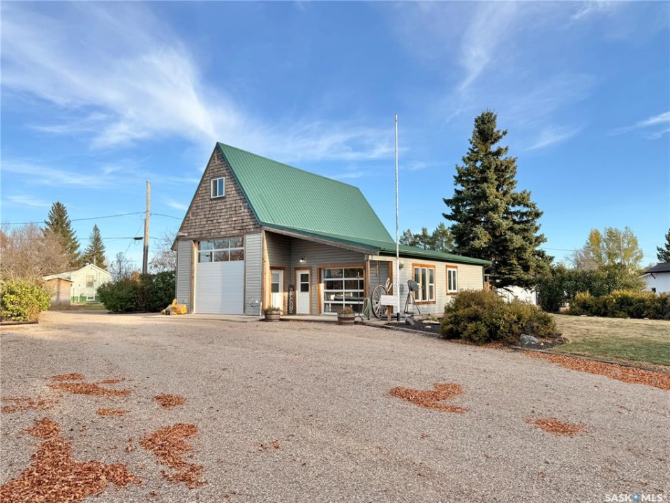 Newly 2012 built home with vaulted ceilings and attached RV garage in Milden for sale! When not just any house will do this home provides all those unique modern finishes combined with that classic charm! Step inside and you'll be captivated by vaulted pine ceilings and large windows flooding the main living areas with natural light. The living room boasts a natural gas stove to cozy up to in the cooler months and an overhead door to extend your living space to the outdoors in the warmer months so you can capture the best of both seasons. The eat-in kitchen features an island, lots of counter top space, ample cupboards with soft close doors and stainless steel appliances. The renovated main bathroom and laundry area is spacious and features a large walk in shower. Across the bathroom leads you to a long staircase up to your master suite located over the shop with its own vaulted ceilings, miles of open closet space and a 3 piece bathroom. If you are a person with a mechanical hobby or would love warm storage for your boat or RV then you are going to love this attached and radiant heated shop! Measuring 40 ft long by 20 ft wide you can have it as a flex room for entertainment, storage, keep the elements off your vehicles and so much more! There is also lots of parking space outside, storage shed, privately sheltered back deck area great for entertaining and underground sprinklers out front in the beautifully maintained yard. Noteworthy updates post 2022 are: vinyl plank flooring with cork underlay, kitchen reno, kitchen backsplash 2025, shower and toilet 2024. Milden is alongside a great highway, has treated water from Outlook, affordable property taxes and is centrally located between Outlook, Rosetown, the city and the lake! If you are in need of main floor bedrooms there is the potential for a buyer to look into adding a main floor bedroom inside the shop/garage. This is a home unlike no other and worth taking a look! You won't be disappointed! Call today!