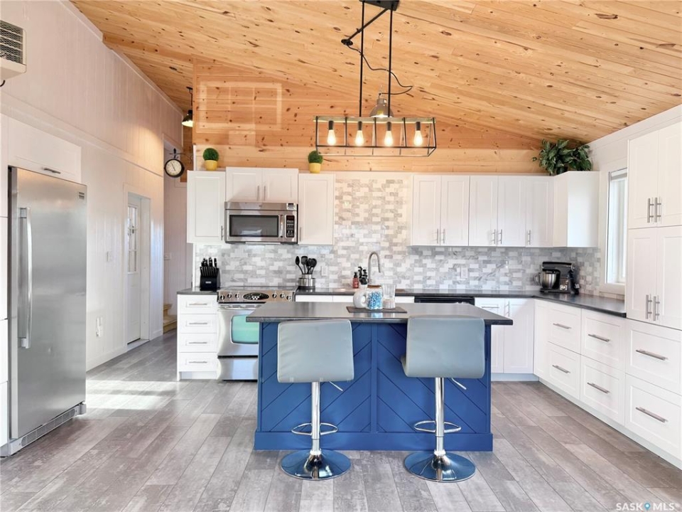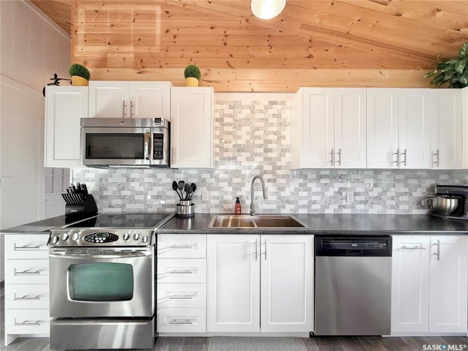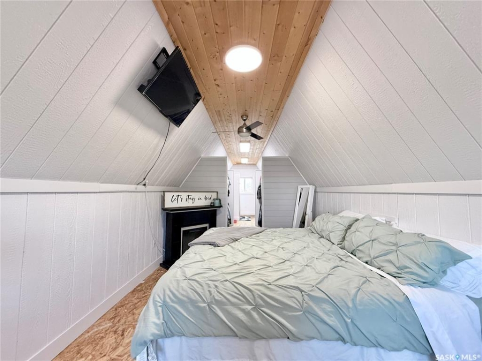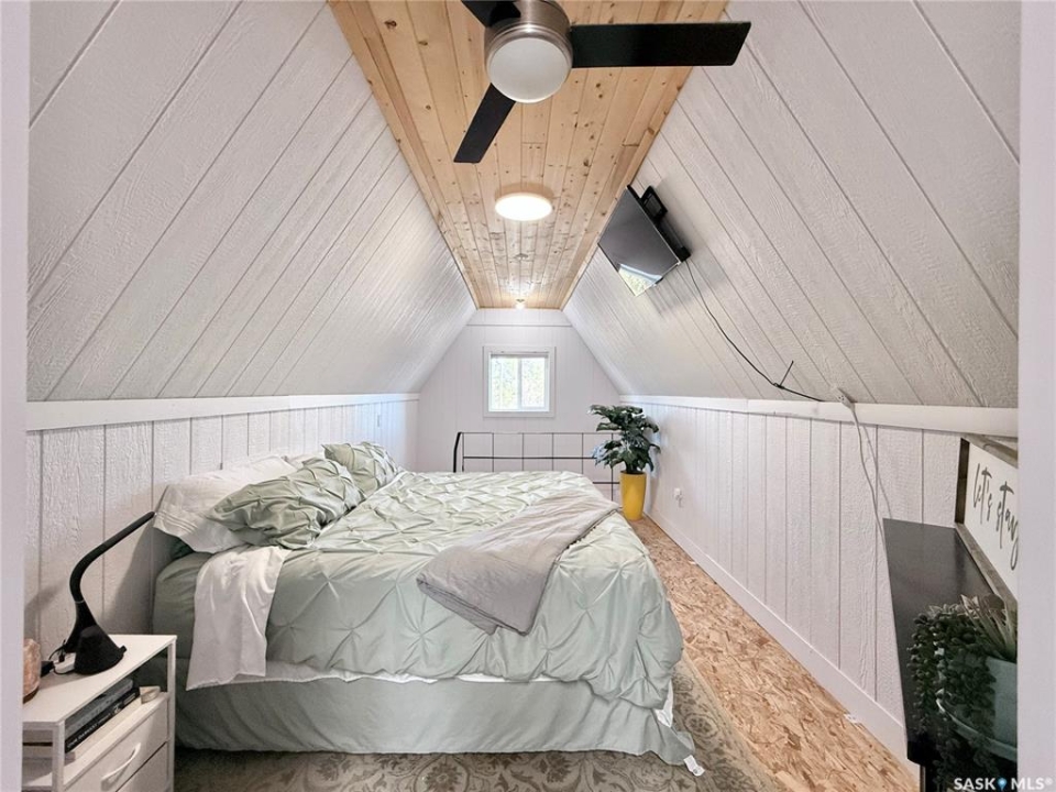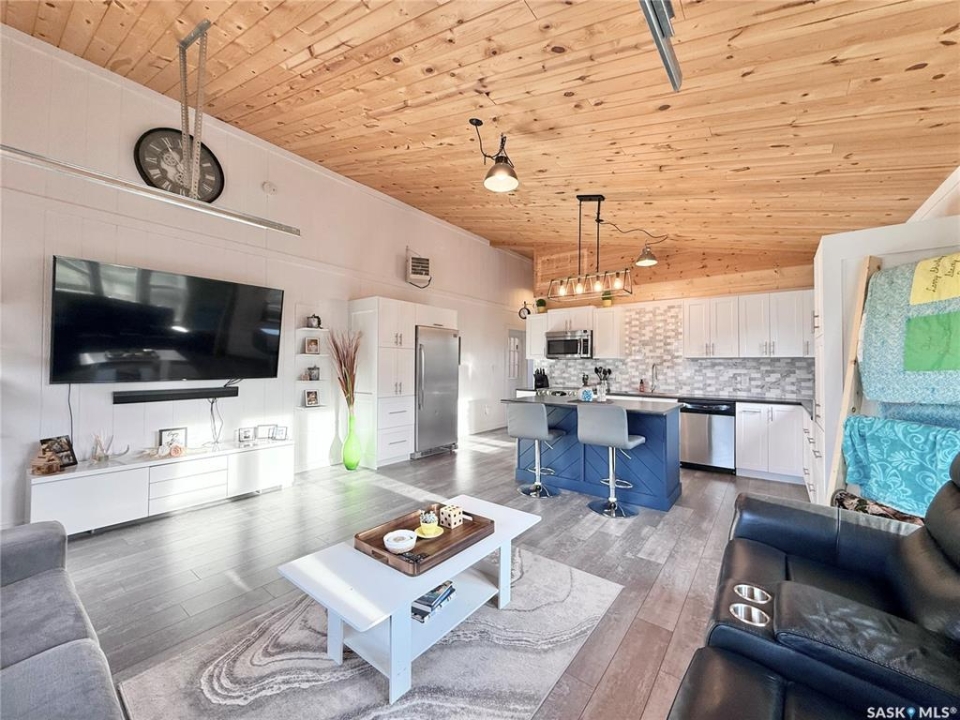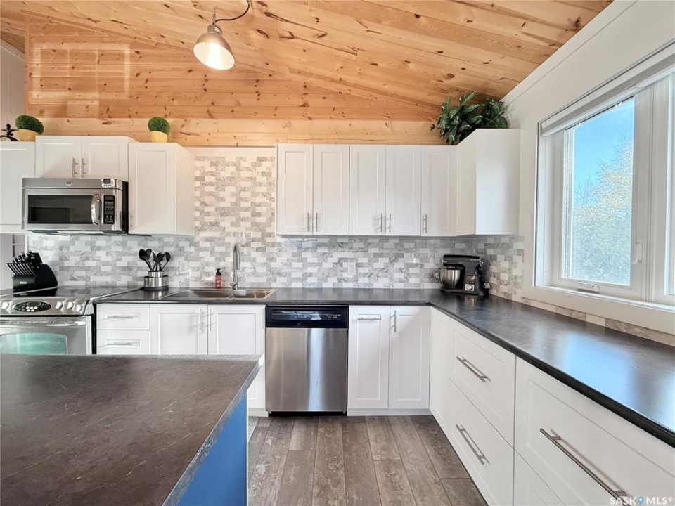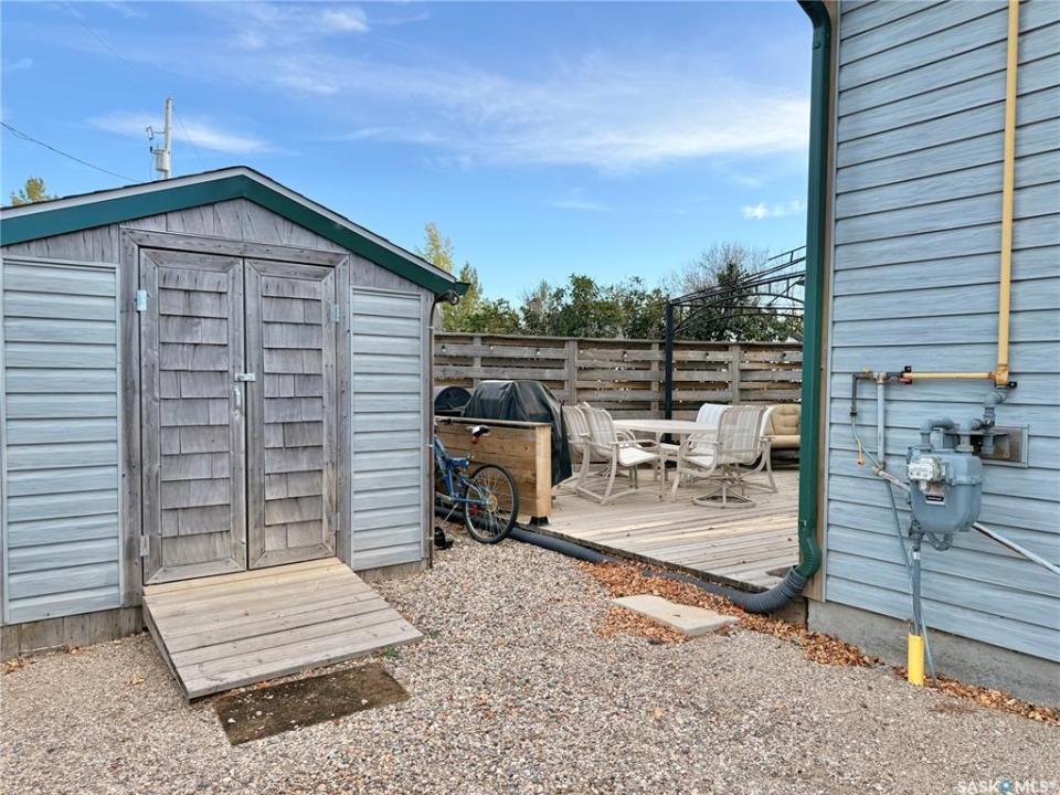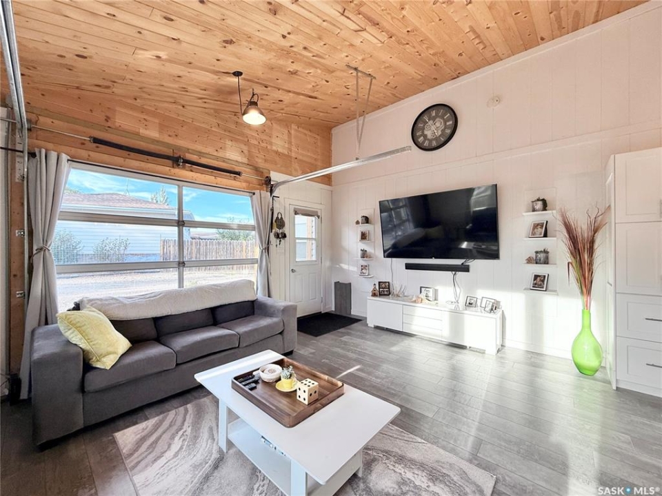 Newly 2012 built home with vaulted ceilings and attached RV garage in Milden for sale! When not just any house will do this home provides all those unique modern finishes combined with that classic charm! Step inside and you'll be captivated by vaulted pine ceilings and large windows flooding the main living areas with natural light. The living room boasts a natural gas stove to cozy up to in the cooler months and an overhead door to extend your living space to the outdoors in the warmer months so you can capture the best of both seasons. The eat-in kitchen features an island, lots of counter top space, ample cupboards with soft close doors and stainless steel appliances. The renovated main bathroom and laundry area is spacious and features a large walk in shower. Across the bathroom leads you to a long staircase up to your master suite located over the shop with its own vaulted ceilings, miles of open closet space and a 3 piece bathroom. If you are a person with a mechanical hobby or would love warm storage for your boat or RV then you are going to love this attached and radiant heated shop! Measuring 40 ft long by 20 ft wide you can have it as a flex room for entertainment, storage, keep the elements off your vehicles and so much more! There is also lots of parking space outside, storage shed, privately sheltered back deck area great for entertaining and underground sprinklers out front in the beautifully maintained yard. Noteworthy updates post 2022 are: vinyl plank flooring with cork underlay, kitchen reno, kitchen backsplash 2025, shower and toilet 2024. Milden is alongside a great highway, has treated water from Outlook, affordable property taxes and is centrally located between Outlook, Rosetown, the city and the lake! If you are in need of main floor bedrooms there is the potential for a buyer to look into adding a main floor bedroom inside the shop/garage. This is a home unlike no other and worth taking a look! You won't be disappointed! Call today!