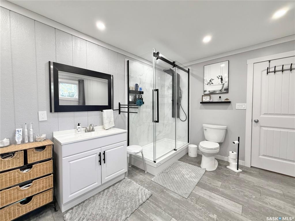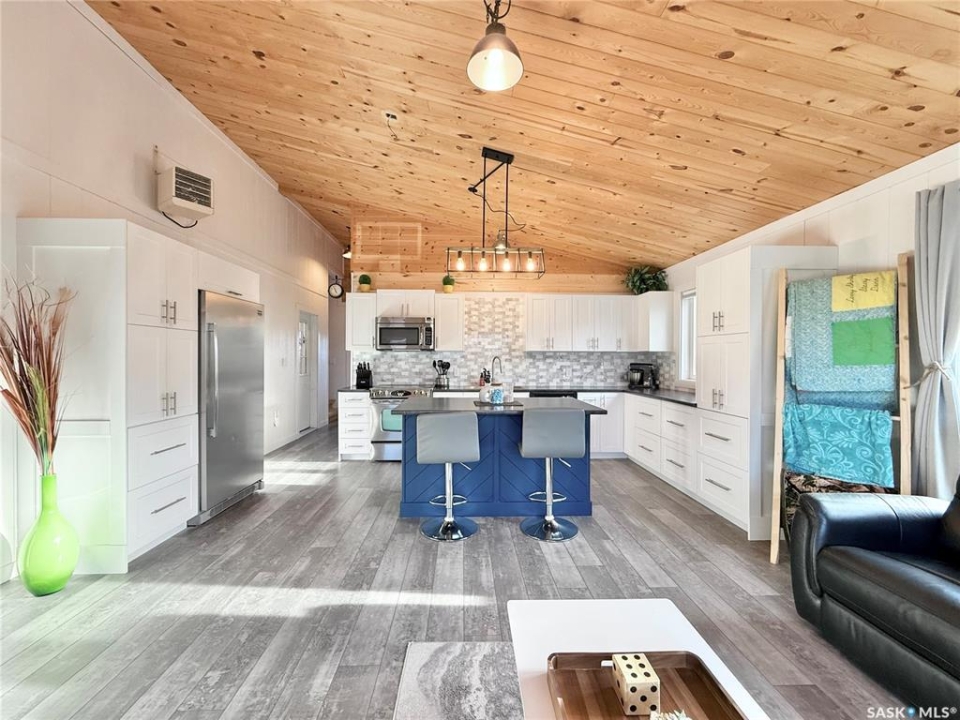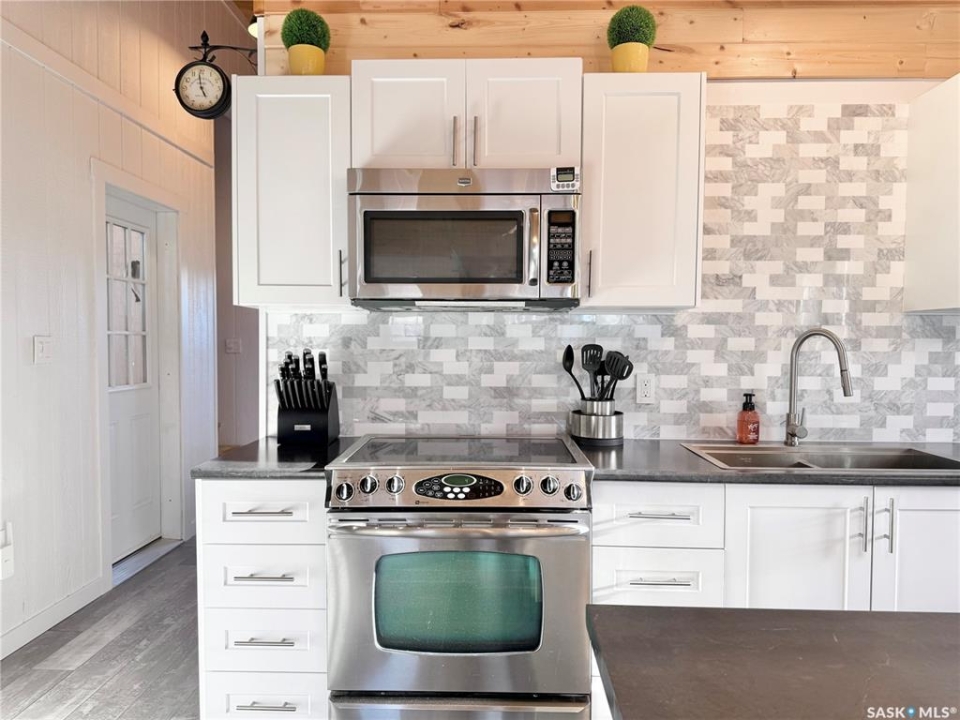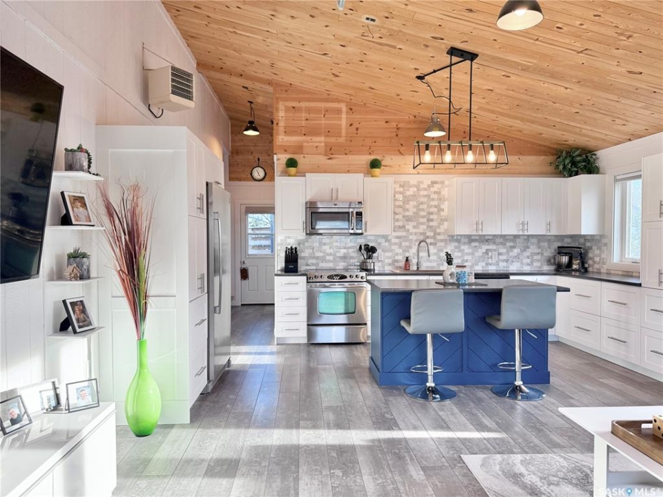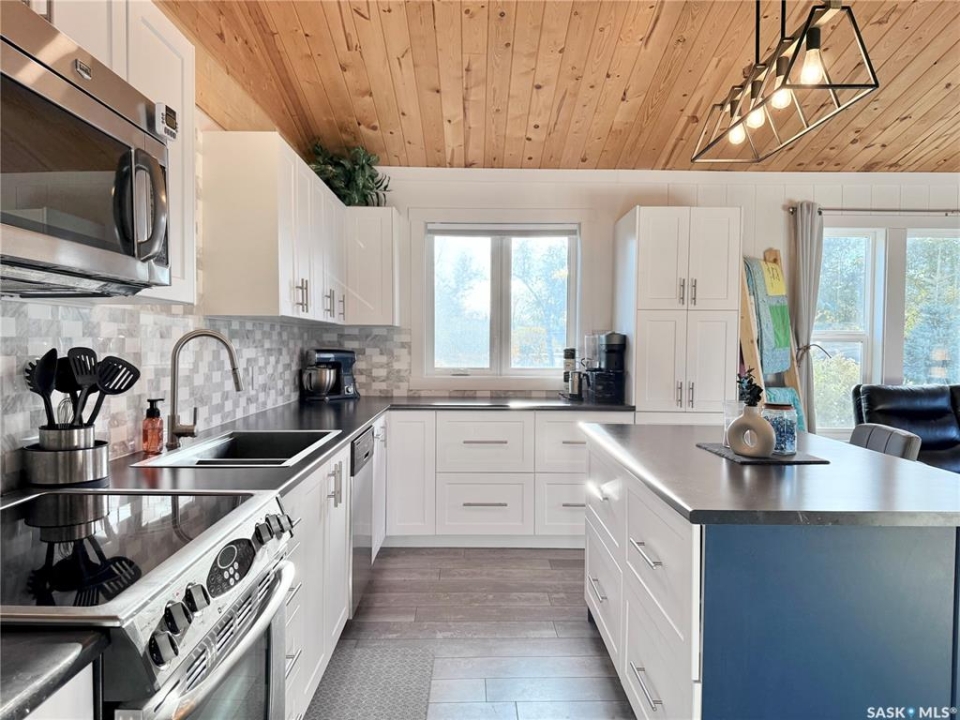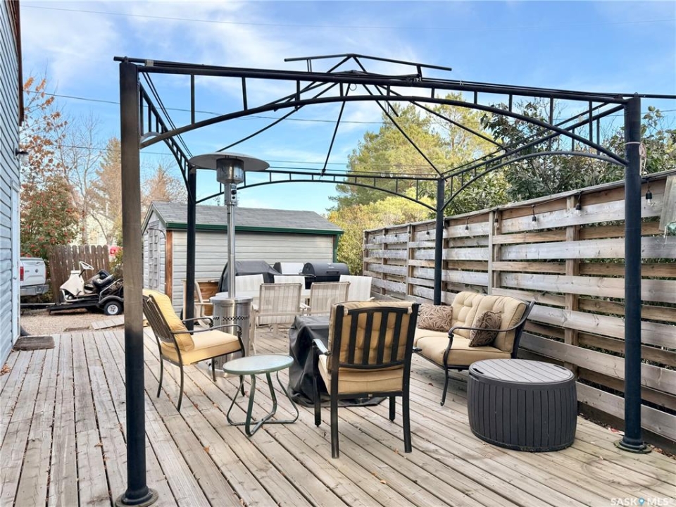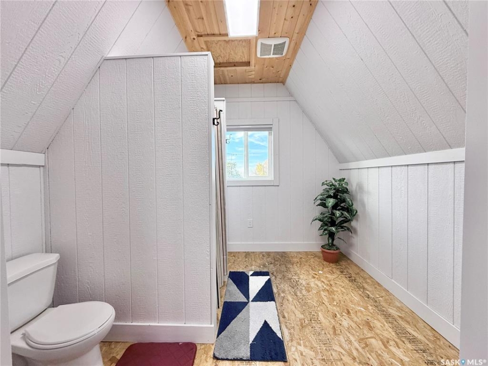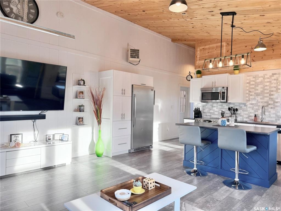 Newly 2012 built home with vaulted ceilings and attached RV garage in Milden for sale! When not just any house will do this home provides all those unique modern finishes combined with that classic charm! Step inside and you'll be captivated by vaulted pine ceilings and large windows flooding the main living areas with natural light. The living room boasts a natural gas stove to cozy up to in the cooler months and an overhead door to extend your living space to the outdoors in the warmer months so you can capture the best of both seasons. The eat-in kitchen features an island, lots of counter top space, ample cupboards with soft close doors and stainless steel appliances. The renovated main bathroom and laundry area is spacious and features a large walk in shower. Across the bathroom leads you to a long staircase up to your master suite located over the shop with its own vaulted ceilings, miles of open closet space and a 3 piece bathroom. If you are a person with a mechanical hobby or would love warm storage for your boat or RV then you are going to love this attached and radiant heated shop! Measuring 40 ft long by 20 ft wide you can have it as a flex room for entertainment, storage, keep the elements off your vehicles and so much more! There is also lots of parking space outside, storage shed, privately sheltered back deck area great for entertaining and underground sprinklers out front in the beautifully maintained yard. Noteworthy updates post 2022 are: vinyl plank flooring with cork underlay, kitchen reno, kitchen backsplash 2025, shower and toilet 2024. Milden is alongside a great highway, has treated water from Outlook, affordable property taxes and is centrally located between Outlook, Rosetown, the city and the lake! If you are in need of main floor bedrooms there is the potential for a buyer to look into adding a main floor bedroom inside the shop/garage. This is a home unlike no other and worth taking a look! You won't be disappointed! Call today!