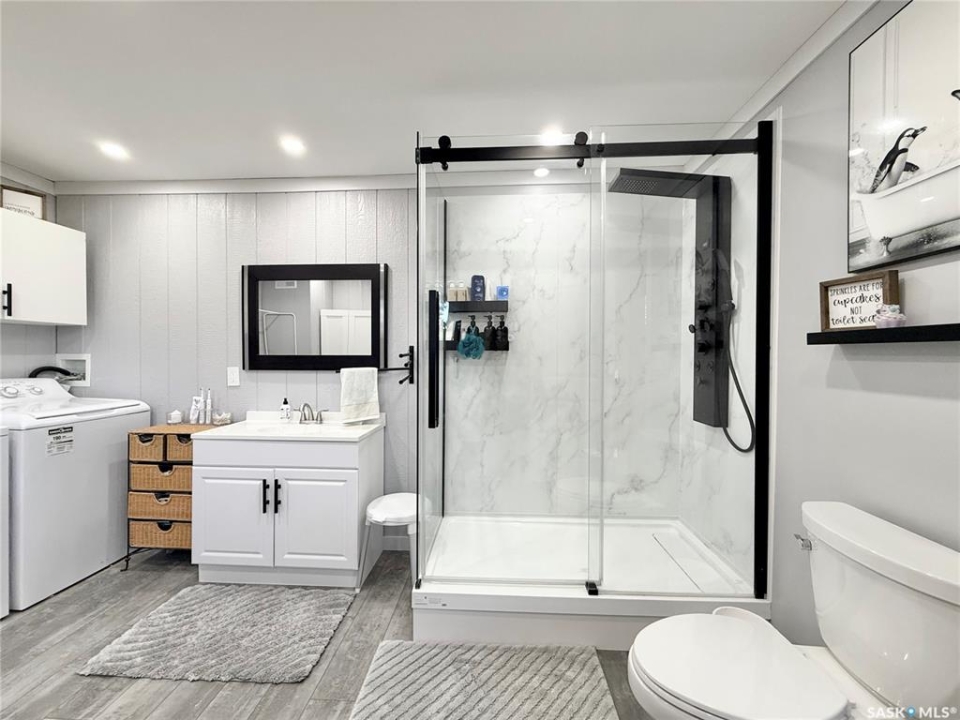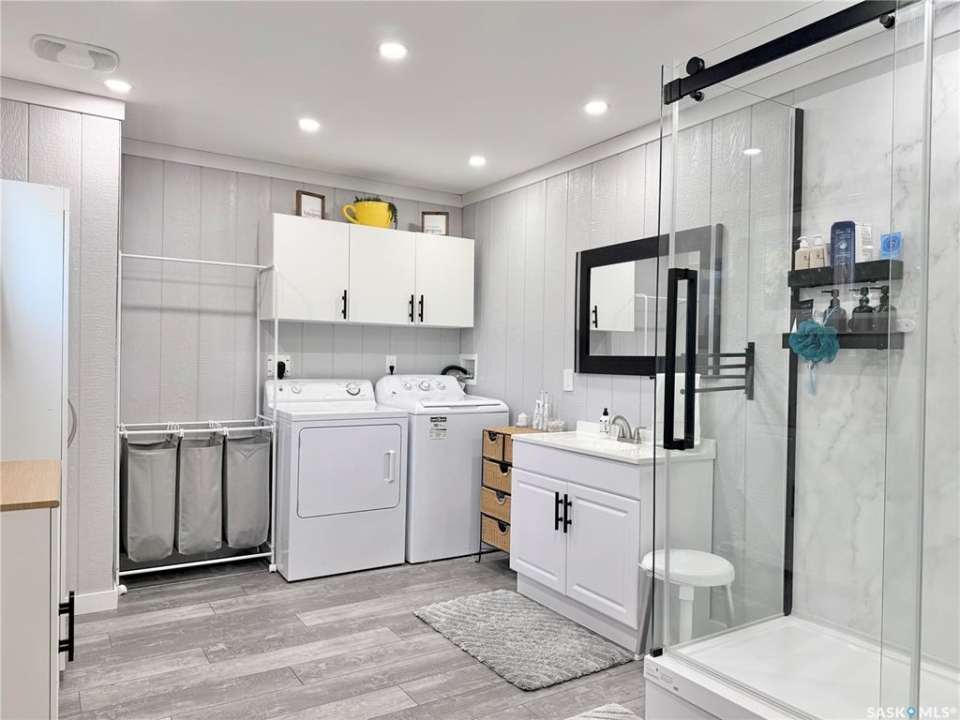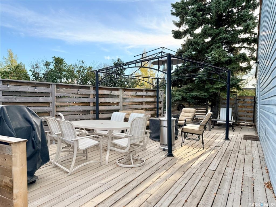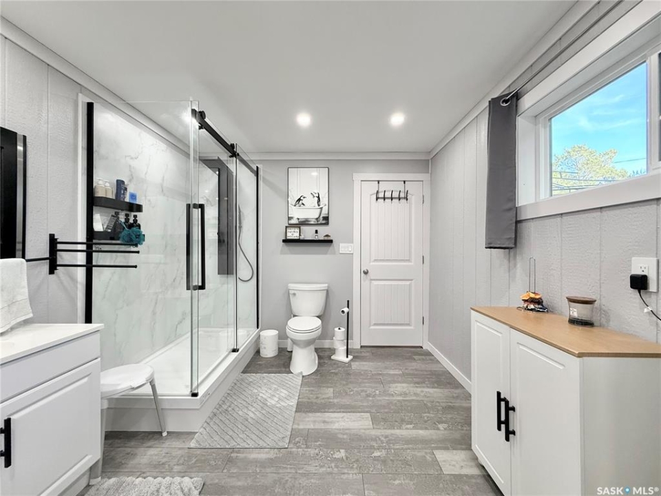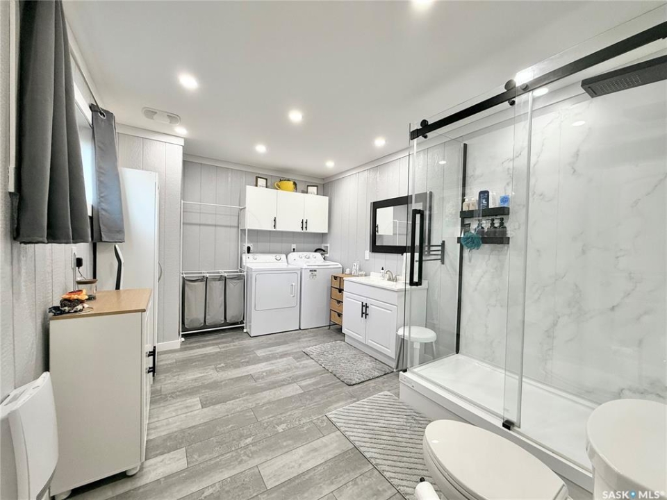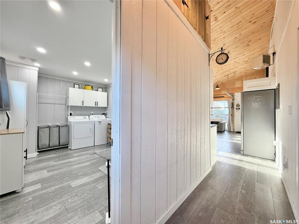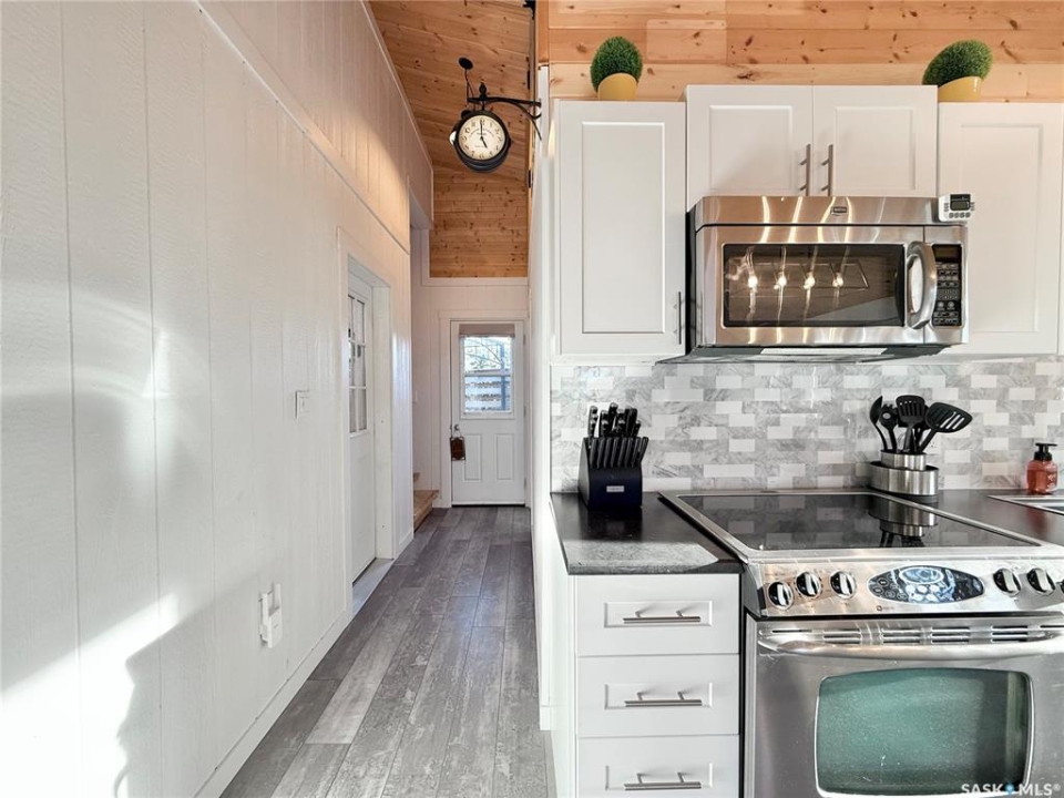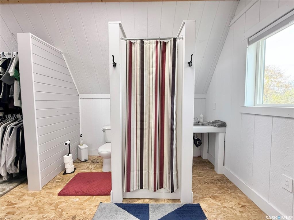 Newly 2012 built home with vaulted ceilings and attached RV garage in Milden for sale! When not just any house will do this home provides all those unique modern finishes combined with that classic charm! Step inside and you'll be captivated by vaulted pine ceilings and large windows flooding the main living areas with natural light. The living room boasts a natural gas stove to cozy up to in the cooler months and an overhead door to extend your living space to the outdoors in the warmer months so you can capture the best of both seasons. The eat-in kitchen features an island, lots of counter top space, ample cupboards with soft close doors and stainless steel appliances. The renovated main bathroom and laundry area is spacious and features a large walk in shower. Across the bathroom leads you to a long staircase up to your master suite located over the shop with its own vaulted ceilings, miles of open closet space and a 3 piece bathroom. If you are a person with a mechanical hobby or would love warm storage for your boat or RV then you are going to love this attached and radiant heated shop! Measuring 40 ft long by 20 ft wide you can have it as a flex room for entertainment, storage, keep the elements off your vehicles and so much more! There is also lots of parking space outside, storage shed, privately sheltered back deck area great for entertaining and underground sprinklers out front in the beautifully maintained yard. Noteworthy updates post 2022 are: vinyl plank flooring with cork underlay, kitchen reno, kitchen backsplash 2025, shower and toilet 2024. Milden is alongside a great highway, has treated water from Outlook, affordable property taxes and is centrally located between Outlook, Rosetown, the city and the lake! If you are in need of main floor bedrooms there is the potential for a buyer to look into adding a main floor bedroom inside the shop/garage. This is a home unlike no other and worth taking a look! You won't be disappointed! Call today!