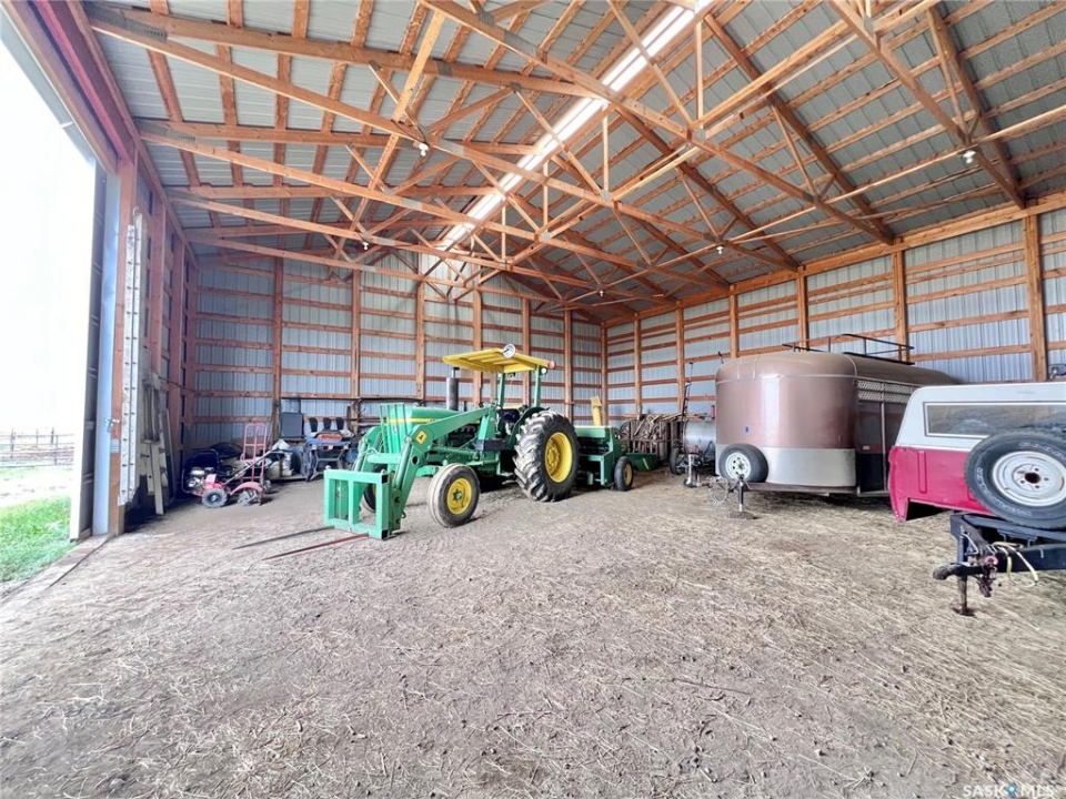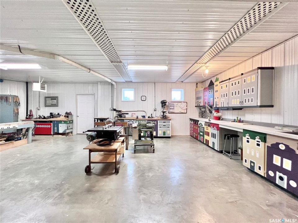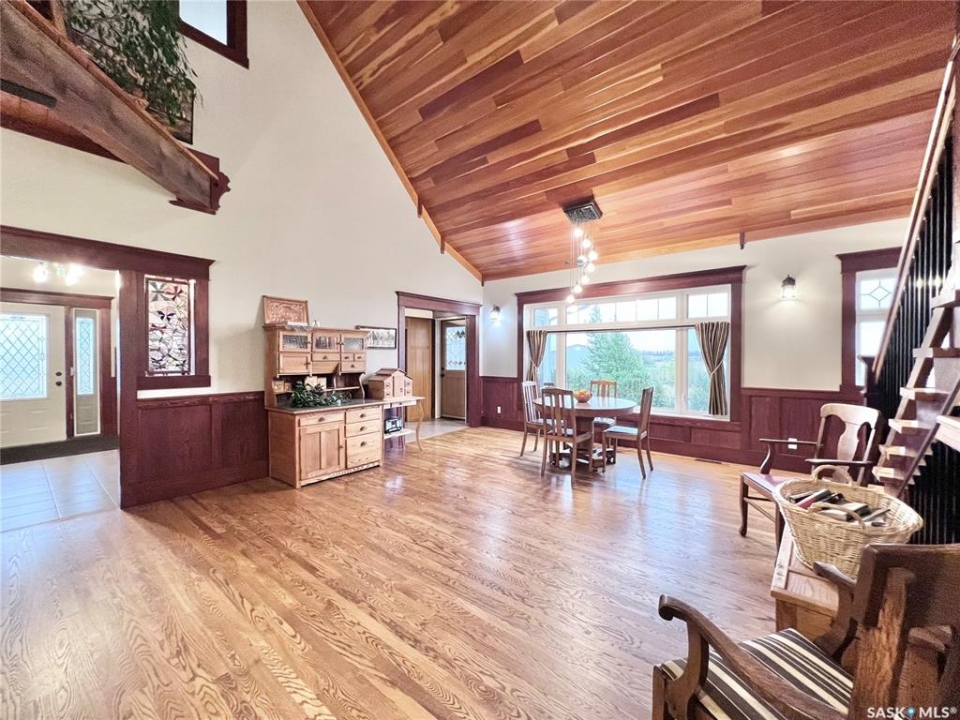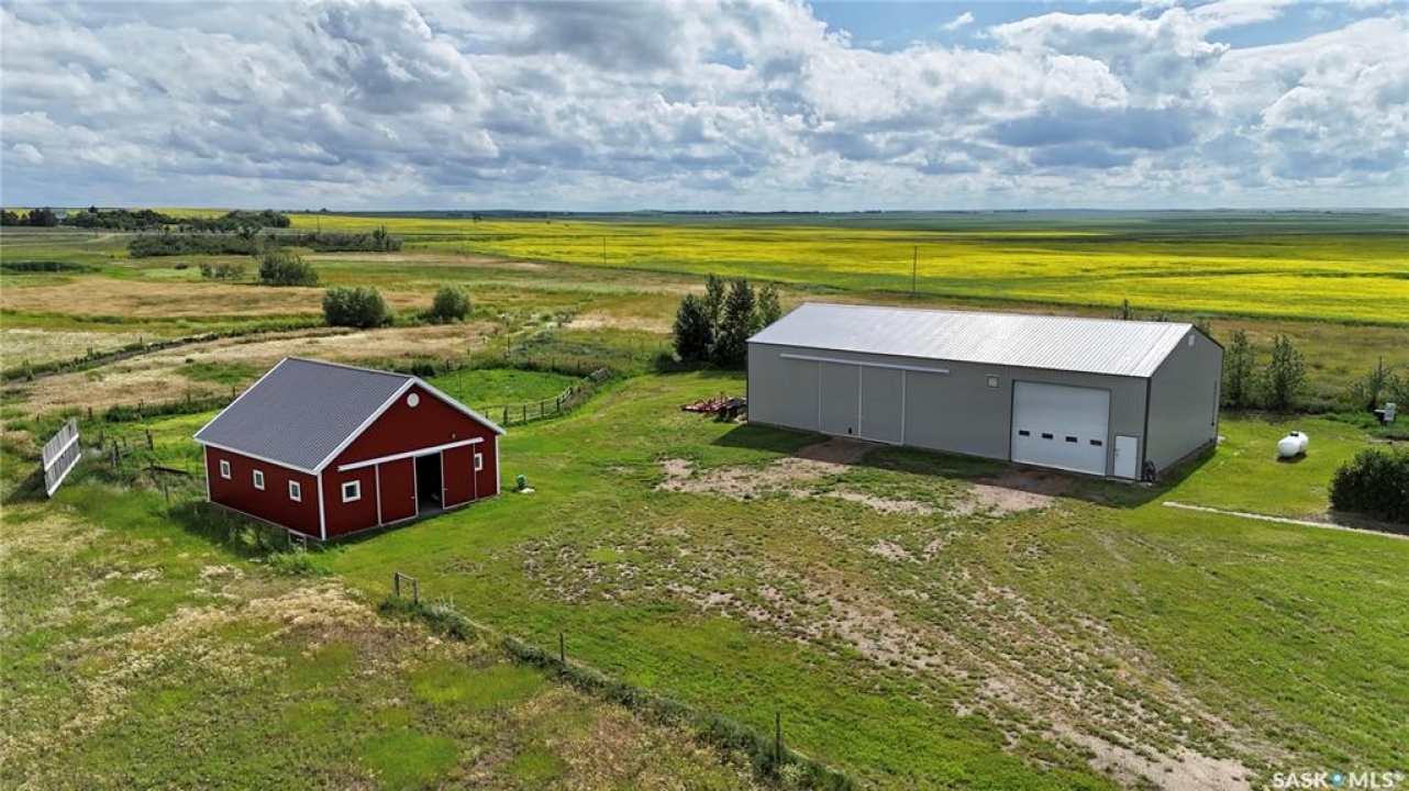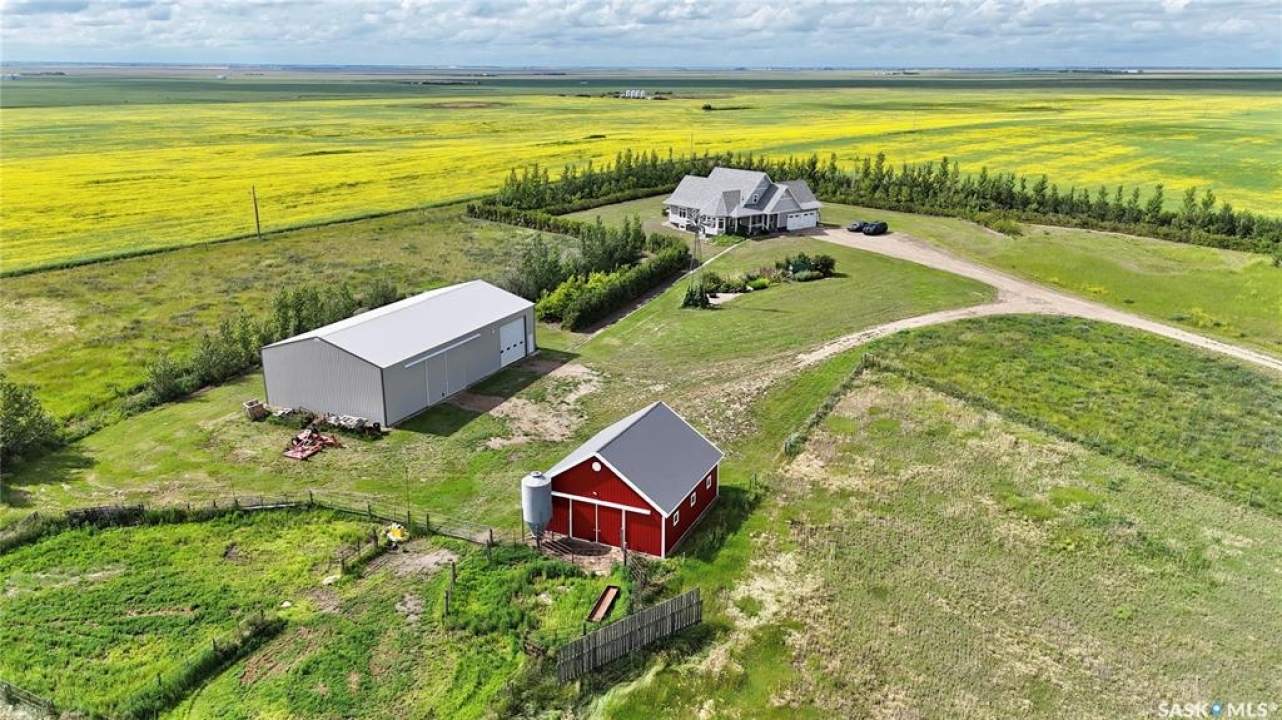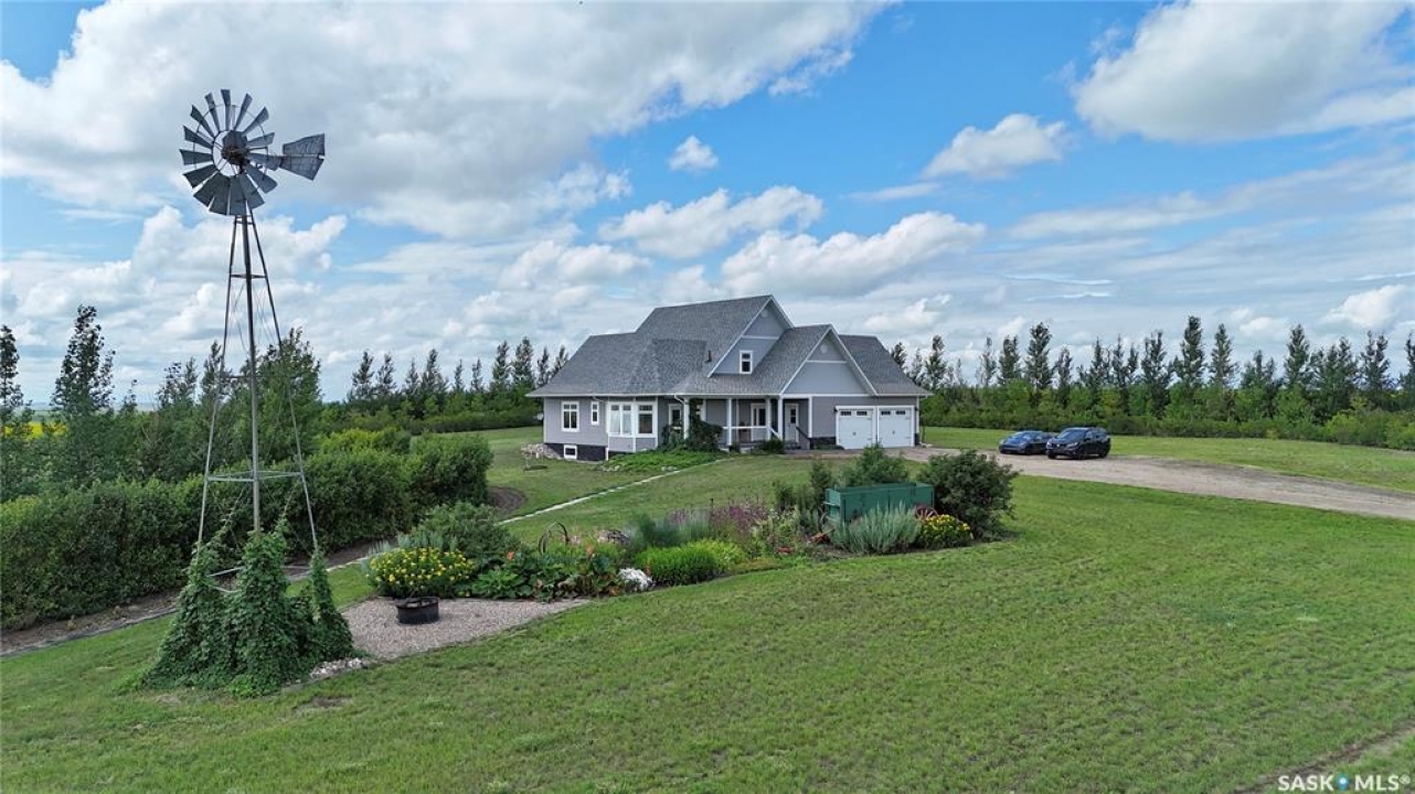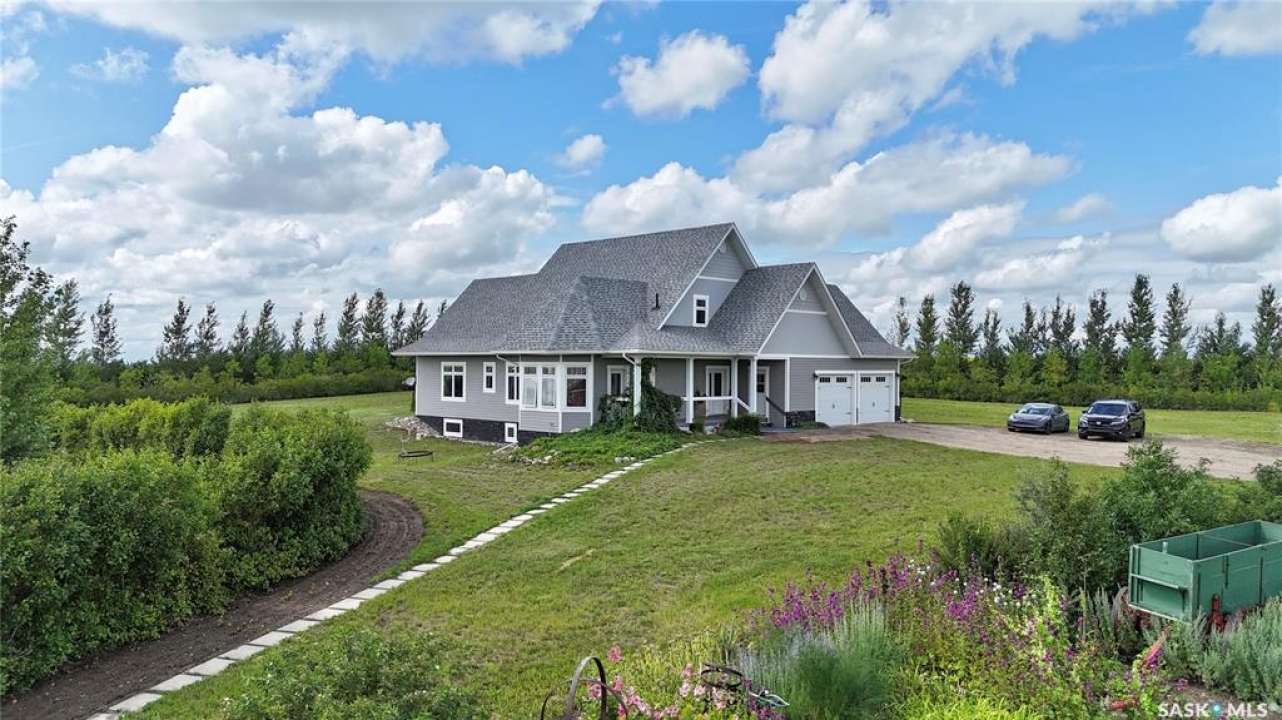 Attention horse lovers, character home enthusiasts, and shop seekers! This remarkable property sits on 27 acres and offers the perfect blend of functionality and charm. You'll find a 30x32 ft barn with 2x10 walls plus a 78x42 ft shop—with a 42x32 ft heated/insulated section and the remainder for cold storage. The custom Edwardian-era replica bungalow, built in 2013, features 2,259 sq ft of space with a loft, 3 bedrooms and 3 bathrooms, and potential for more with a few easy modifications. This home is beautifully designed as passive solar, has vaulted ceilings and custom woodwork. Many antique-style cupboards and armoires are built-in as permanent features. The grand dining room features a statement vaulted ceiling and a stunning custom staircase that leads to an open loft—perfect for a home office, craft space, or extra guest room. Just beneath, the cozy living room offers privacy doors for added tranquility and includes a Murphy bed for flexible use. The kitchen is a perfect blend of old-world character and modern convenience, with custom cabinetry, classic stove, built-in lighting, and a south-facing year-round sunroom just off to the side. The primary suite is expansive, complete with a walk-in closet and five-piece ensuite. The main floor bath/laundry features a clawfoot tub and plenty of unique shelving. Upstairs, you'll find a second bedroom (armoire that stays), while the third bedroom in the basement includes its own walk-in closet and ensuite bath. The basement workshop is ideal for hobbyists or could easily convert into a spacious rec room. The yard site is lined with mature trees, a built-up road for easier winter access, a dugout, and a garden area. Located just 45 minutes from Saskatoon and 15 minutes from Outlook on a well-maintained highway. There are too many details to list— be sure to ask for the full feature breakdown or check the final photos for a complete look at what this property has to offer. Watch our video tour: https://shorturl.at/HVgEb