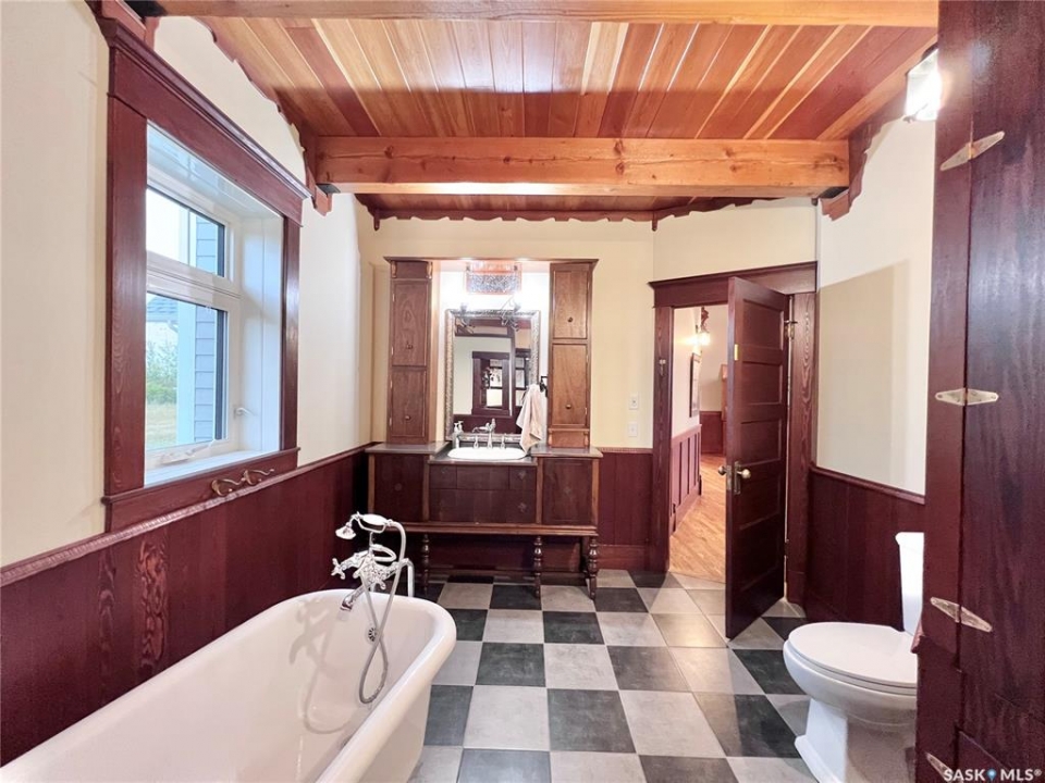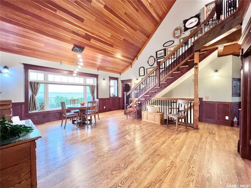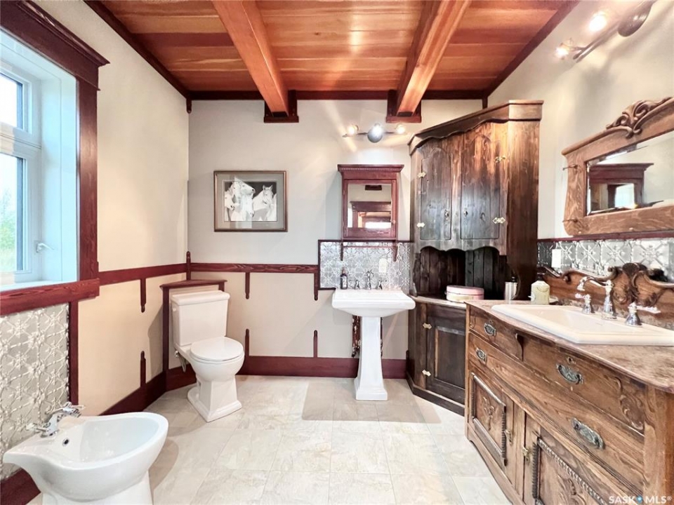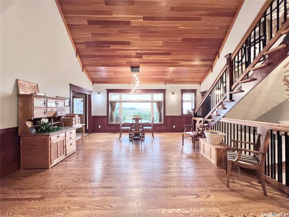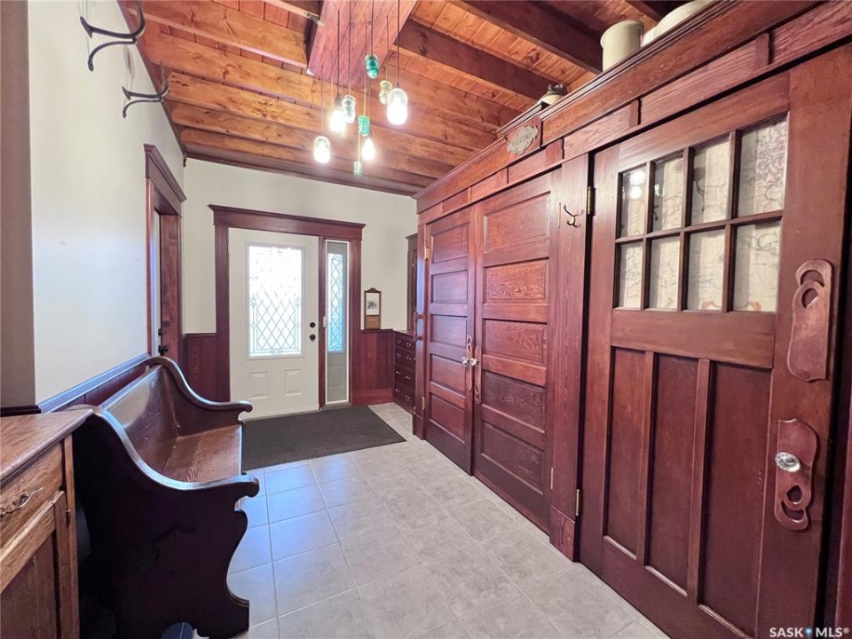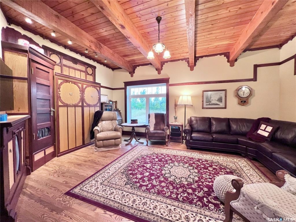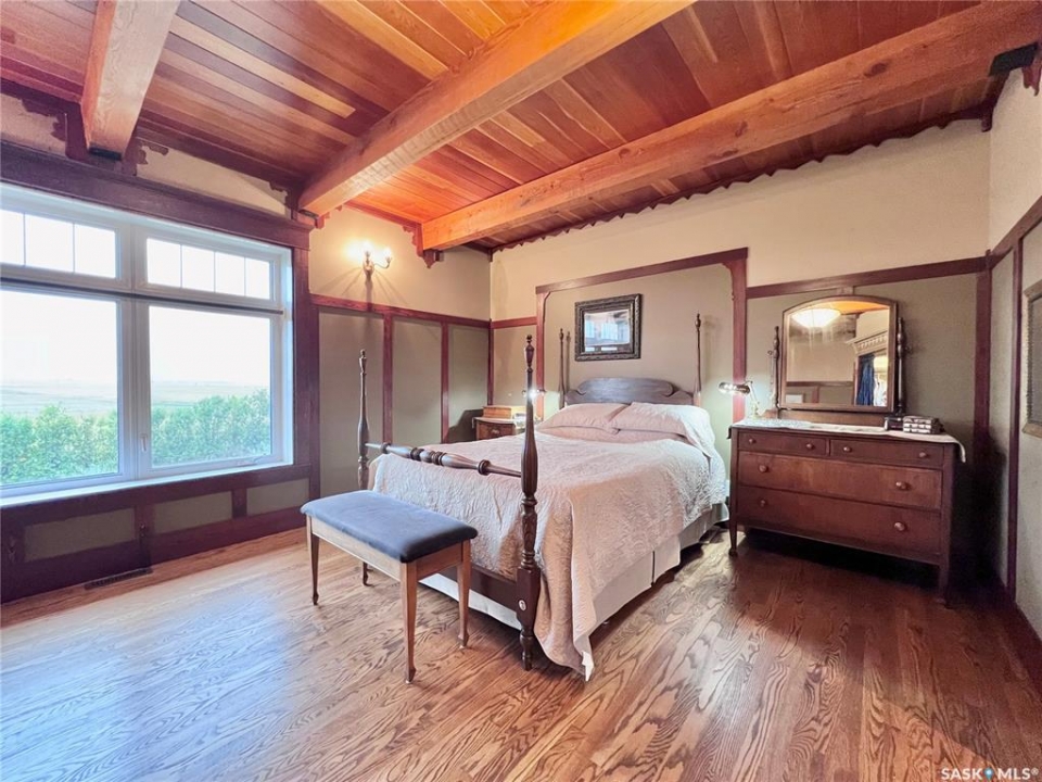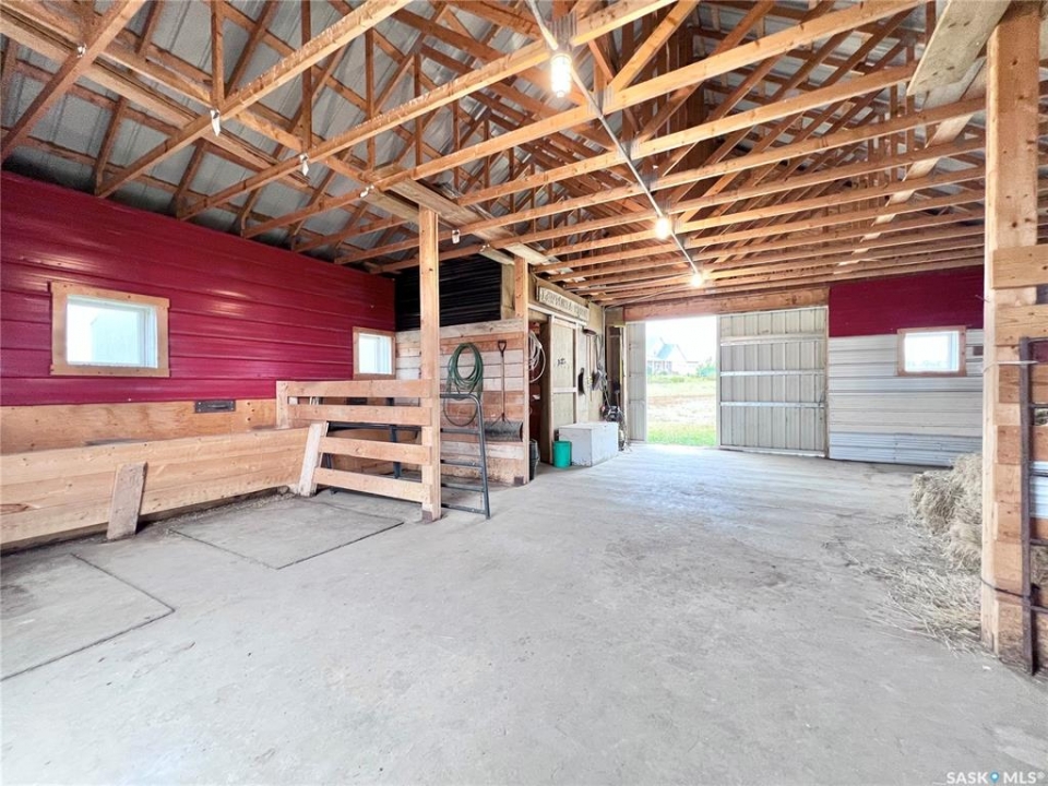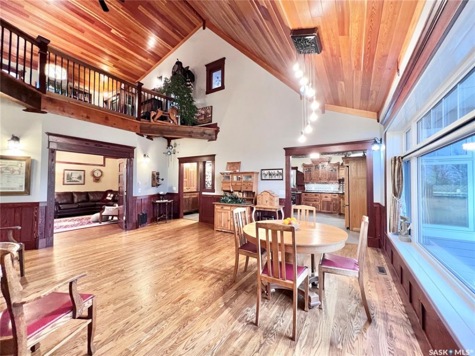 Attention horse lovers, character home enthusiasts, and shop seekers! This remarkable property sits on 27 acres and offers the perfect blend of functionality and charm. You'll find a 30x32 ft barn with 2x10 walls plus a 78x42 ft shop—with a 42x32 ft heated/insulated section and the remainder for cold storage. The custom Edwardian-era replica bungalow, built in 2013, features 2,259 sq ft of space with a loft, 3 bedrooms and 3 bathrooms, and potential for more with a few easy modifications. This home is beautifully designed as passive solar, has vaulted ceilings and custom woodwork. Many antique-style cupboards and armoires are built-in as permanent features. The grand dining room features a statement vaulted ceiling and a stunning custom staircase that leads to an open loft—perfect for a home office, craft space, or extra guest room. Just beneath, the cozy living room offers privacy doors for added tranquility and includes a Murphy bed for flexible use. The kitchen is a perfect blend of old-world character and modern convenience, with custom cabinetry, classic stove, built-in lighting, and a south-facing year-round sunroom just off to the side. The primary suite is expansive, complete with a walk-in closet and five-piece ensuite. The main floor bath/laundry features a clawfoot tub and plenty of unique shelving. Upstairs, you'll find a second bedroom (armoire that stays), while the third bedroom in the basement includes its own walk-in closet and ensuite bath. The basement workshop is ideal for hobbyists or could easily convert into a spacious rec room. The yard site is lined with mature trees, a built-up road for easier winter access, a dugout, and a garden area. Located just 45 minutes from Saskatoon and 15 minutes from Outlook on a well-maintained highway. There are too many details to list— be sure to ask for the full feature breakdown or check the final photos for a complete look at what this property has to offer. Watch our video tour: https://shorturl.at/HVgEb