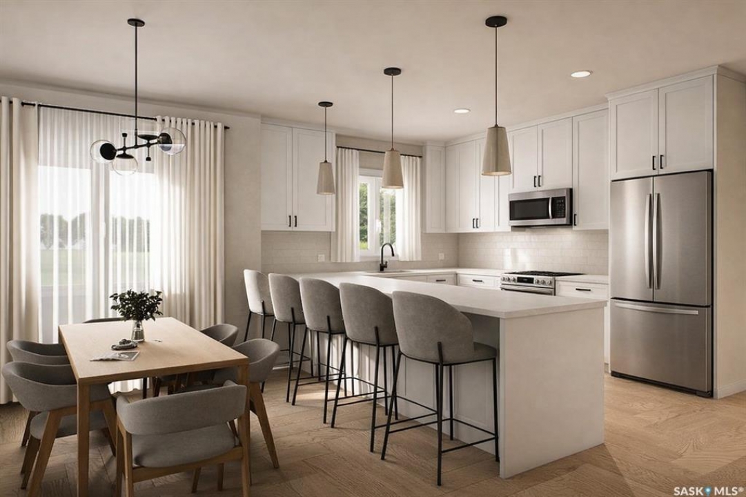 This 1,253 sq ft bungalow style duplex offers the perfect blend of sophisticated design, smart functionality, and low-maintenance living, all in the growing riverside community of Outlook, Saskatchewan. Featuring 2 spacious bedrooms, this home is designed with comfort in mind. The primary suite boasts a walk-in closet and full ensuite bathroom, while the open-concept main living space is finished with durable vinyl plank flooring throughout and bathed in natural light. Your dream kitchen includes ample cabinetry, an eat-up peninsula for entertaining, and seamless flow into the living and dining areas. Step out to your private back patio and enjoy peaceful prairie evenings. Built with quality in mind, this home includes Hardie Board siding, a single attached garage, and on-demand water heater. Best of all, GST & PST and New Home Warranty are included in the purchase price. As a pre-build, buyers have the exciting opportunity to work with the builder to customize finishes such as colours, and upgrade select features allowing you to personalize the home to suit your style and needs. Situated in Outlook, you're surrounded by river walking trails, a scenic golf course, shopping, and all amenities - making this the perfect place to settle down or invest. Call today to start your new home journey! Please note: Photos are renderings. This home is not yet built. Inquire today for more information.