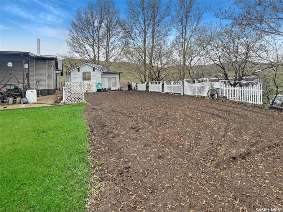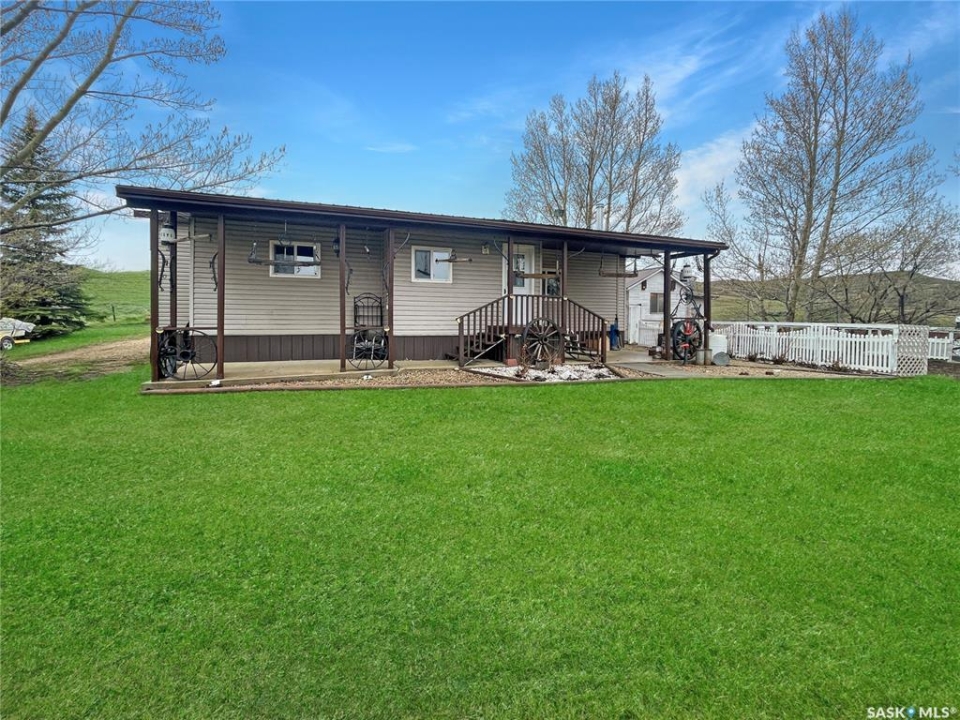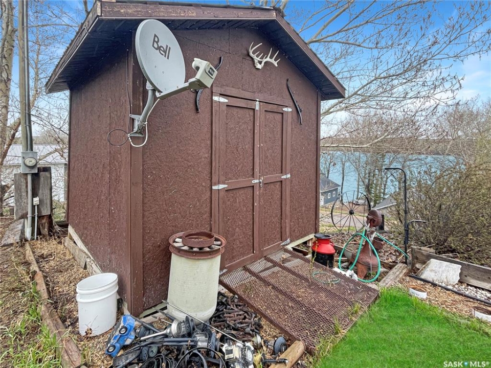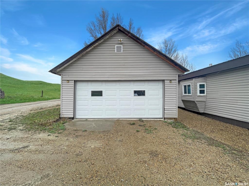 Welcome to this remarkable DEEDED lake property on the southwest end of Lac Pelletier. This stunning four-season home sits on a 1/2 acre lot with a tranquil water view. It offers privacy and seclusion, with beautiful landscaping, a private driveway, and ample off-street parking. The property backs onto a peaceful prairie field, ensuring tranquility and privacy. The tiered yard features lush lawns, concrete patios, storage sheds, a workshop, and a spacious 20x28 garage insulated with electric heat. There's even a garden plot for those with a green thumb. Inside the home, you'll find a thoughtfully designed interior. Two spacious bedrooms with walk-in closets provide ample space for relaxation and storage. The 4-piece washroom is well-appointed and convenient. The large front porch/mudroom welcomes you, while the open concept living room, kitchen, and dining area create an ideal space for entertaining and family gatherings. The rear porch houses the laundry and mechanical area. During cooler months, cozy up by the wood fireplace, which adds warmth and ambiance to the home. The home features 100 amp electrical service, PVC windows for energy efficiency, and a durable metal roof with vinyl siding. The attic is well-insulated with two layers of R20 insulation and 18" of blown-in insulation. The mid-1980s addition adds charm and functionality. Many renovations have been completed including fresh paint, an updated kitchen, bathroom, and more! The property has two septic tanks(1,500 gallons) for efficient waste management and its own 65 foot well. School bus service to Wymark is available for families with children. If you've been searching for a lake property with a mature, OWNED lot, this property is perfect! With a captivating water view and a 1/2 acre lot. Don't miss out—book your viewing today and own a piece of paradise on Lac Pelletier.