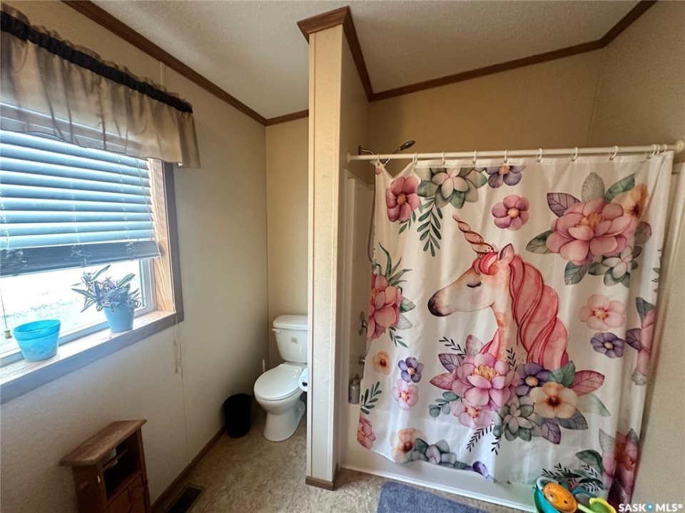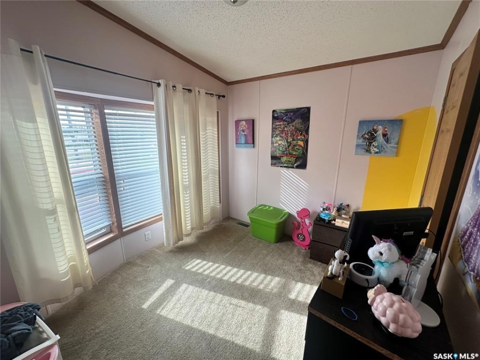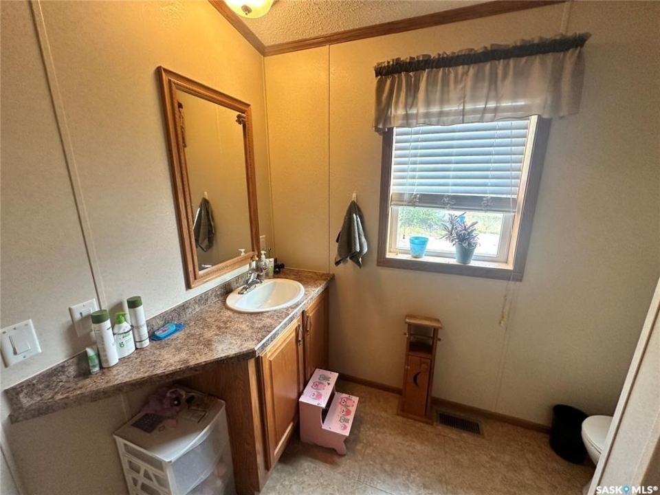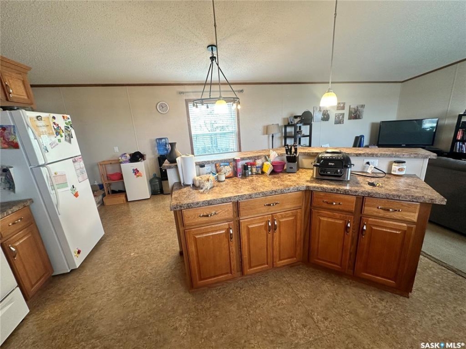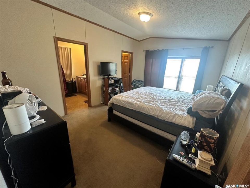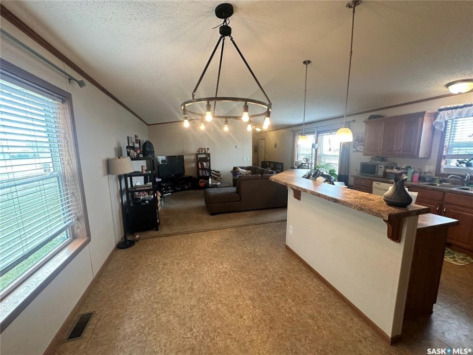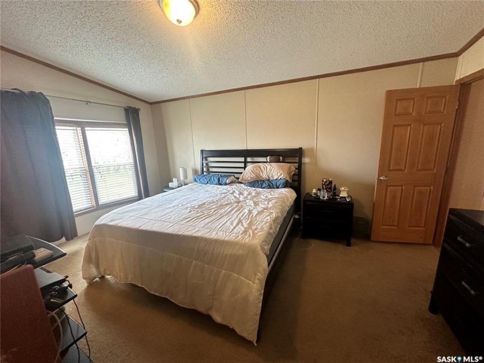 Welcome to your move-in ready retreat! Built in 2011, this beautifully maintained double-wide home offers effortless open-concept living, modern touches and generous outdoor space with a perfect blend of convenience and comfort. Step into a bright, open living area where the kitchen, dining and living room flow seamlessly together which is ideal for entertaining or family time. The gourmet-style kitchen features a large island with built-in seating, providing both workspace and casual dining. The vaulted ceilings enhance the sense of space and add a light, airy ambience throughout the main living zone. There are three spacious bedrooms. The primary suite is a true retreat: it includes a walk-in closet and an ensuite four-piece bathroom complete with a jetted tub, perfect for relaxing at day's end. The second full bathroom serves the household and guests with convenience and style. This property is nestled on an oversized lot, which gives you all the room you've been looking for an expansive yard space, plenty of parking and outdoor opportunity. The shed provides functional storage for garden tools, recreational gear or workshop space. Enjoy the outdoors on the deck — whether you're sipping morning coffee or hosting summer barbecues, it's the perfect spot to unwind. This property has ample driveway and parking area, there's no shortage of space for vehicles, toys, or guests!