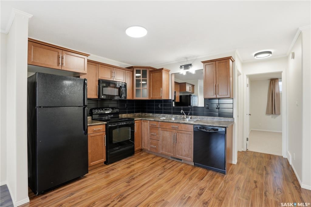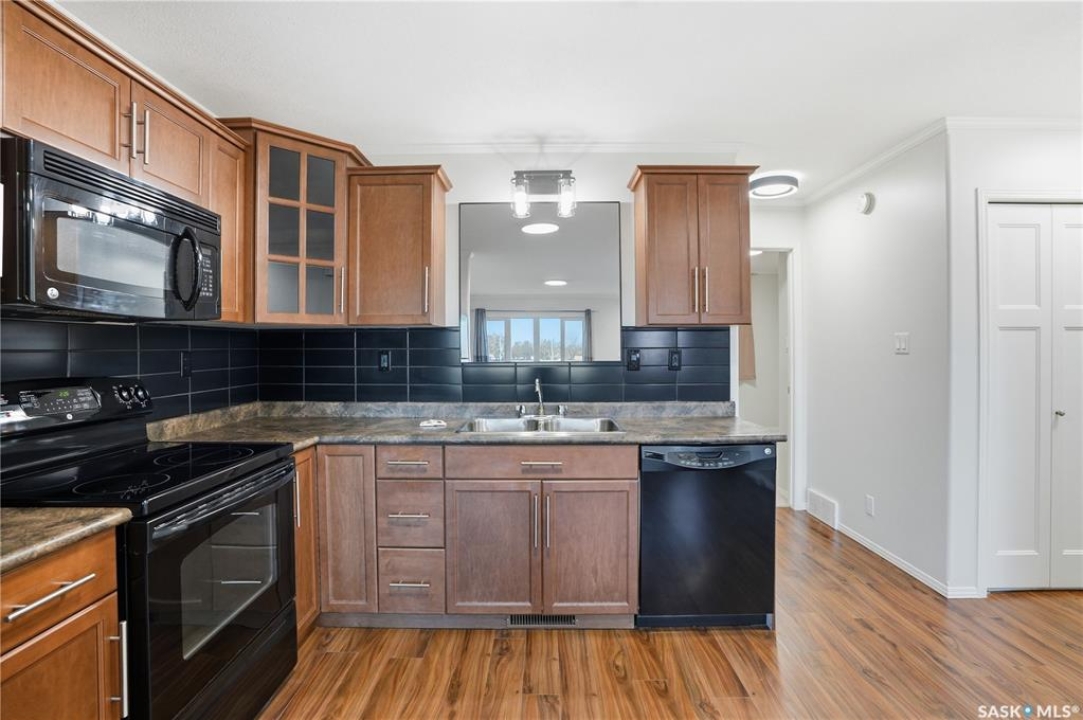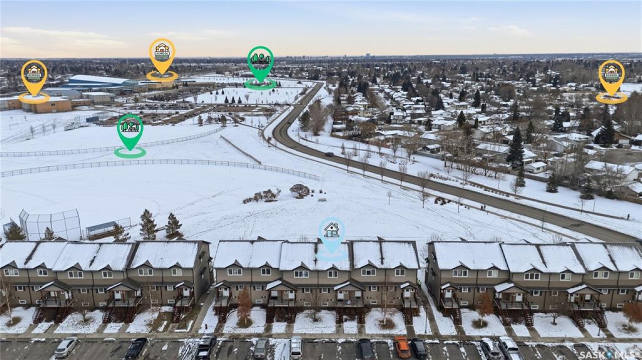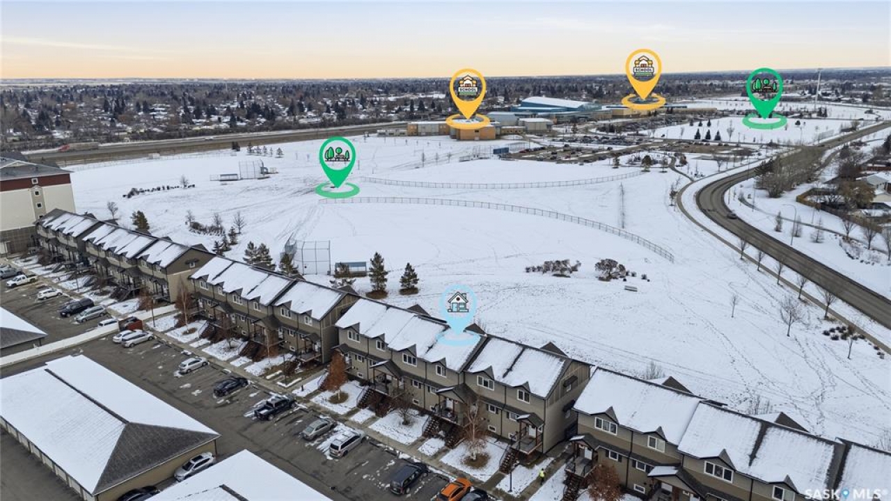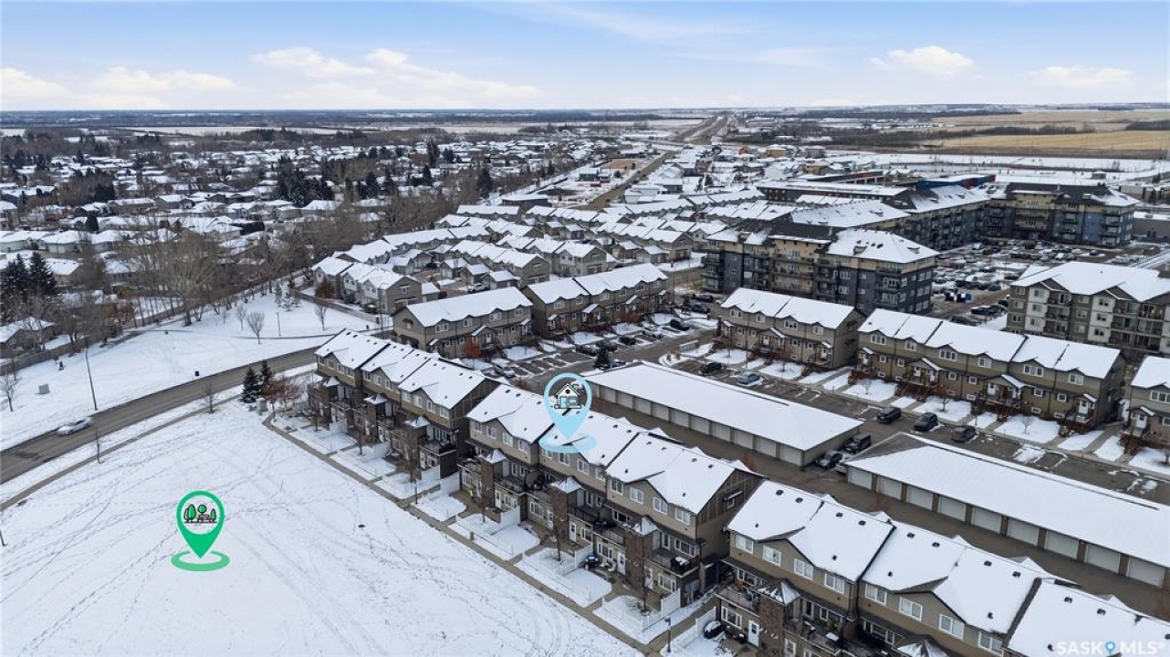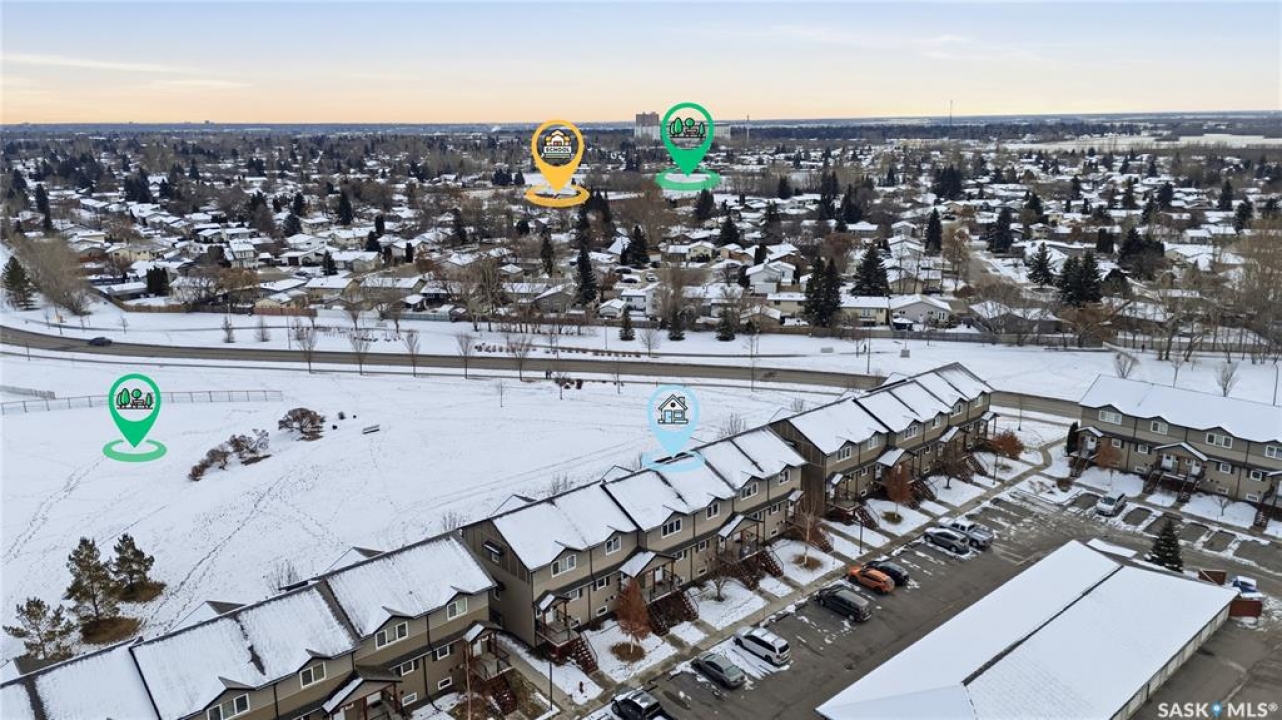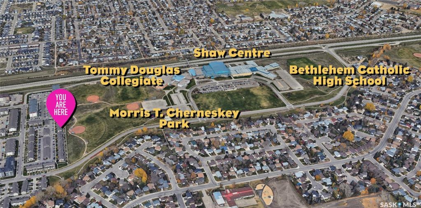 Welcome to 507-110 Shillington Crescent – a bright and inviting walk-up townhouse in the heart of Blairmore. Situated directly across from a green space, walking trails, baseball diamonds and steps from Tommy Douglas Collegiate and Bethlehem Catholic High School, this location offers a perfect blend of convenience and community. Inside, you'll find a well-designed 2-bedroom, 1-bathroom layout featuring fresh paint, updated lighting, and a stylish matte tile backsplash in the kitchen. The open concept living space is filled with natural light, and both bedrooms offer comfortable proportions and good closet space. An electrified parking stall is included, and the unit has its own furnace and water heater—giving you control over your utilities and comfort. With shopping, parks, schools, and transit all just steps away, this townhouse is move-in ready and an ideal fit for first-time buyers, students, or anyone looking for low-maintenance living in a great neighborhood.