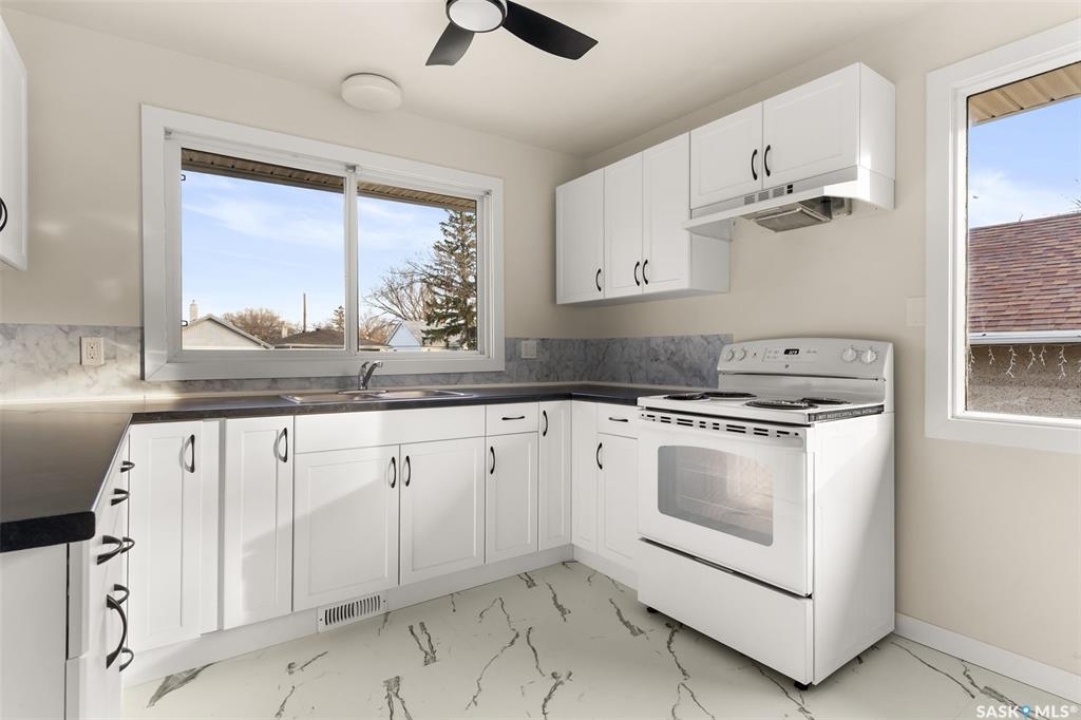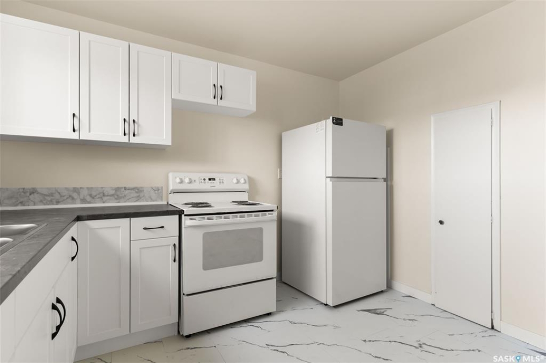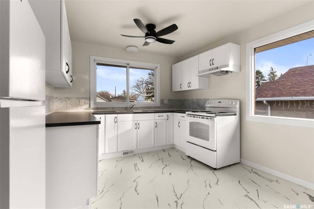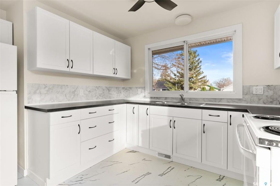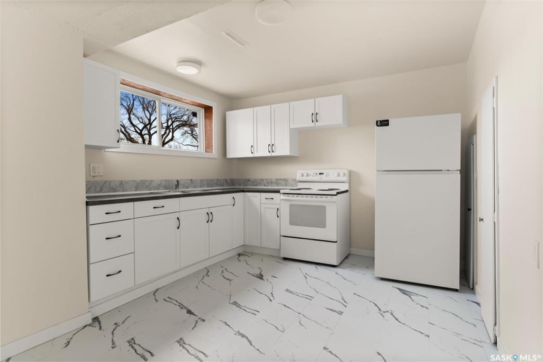 Welcome to 960 Elphinstone Street - an excellent opportunity for investors or first-time homebuyers looking to build equity in a well-designed bi-level layout. Offering 1,162 sq ft on the main level plus a full basement, this home features 5 bedrooms, 2 bathrooms, 2 kitchens, 2 living rooms, and 2 furnaces, making it ideal for revenue potential or live-up/rent-down scenarios. The property includes separate entries for each level and shared laundry. All appliances are included, featuring brand-new washer, dryer, fridge, and stove on the main floor, and another brand-new fridge and stove in the basement suite. Both kitchens have been tastefully updated with trendy white cabinetry, new countertops, and there is new flooring throughout portions of the home. The main floor showcases original hardwood flooring in the living room and bedrooms, and a cozy fireplace anchors the living space. Each level includes a 4-piece bathroom for added convenience. Outside, you'll find a double detached garage with front and back driveway access, offering ample parking options for multiple tenants. The fully fenced backyard provides space to enjoy and personalize. Additional highlights include some newer PVC windows and quick possession available, making this a turnkey revenue property opportunity. Located on a street that benefits from regular snow clearing - peace of mind for winter months. Affordability, versatility, and income potential - take advantage of this opportunity at 960 Elphinstone Street!