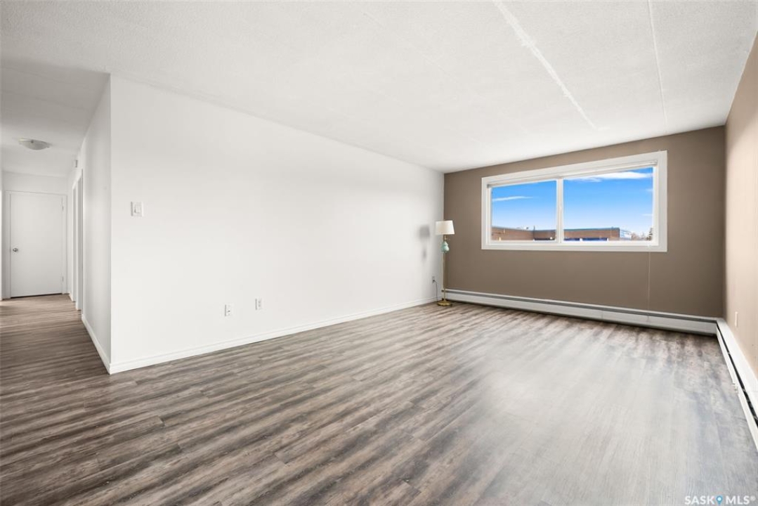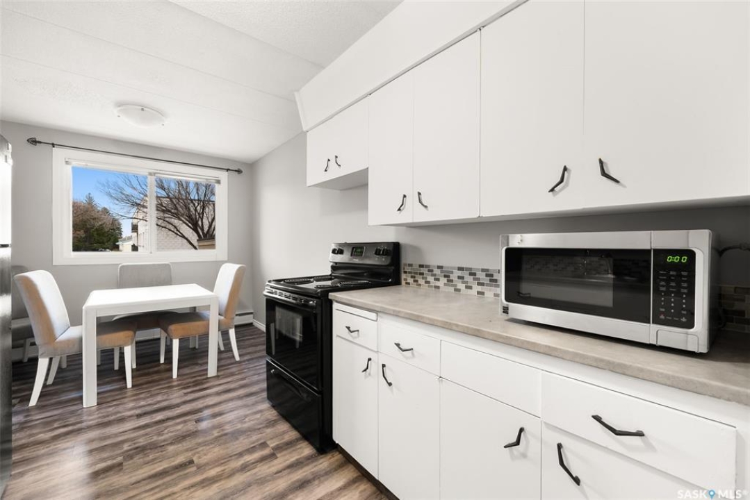 Welcome to Willowdale Heights, a well-maintained condo complex conveniently located just off North Albert, close to shopping, restaurants, and bus routes. This spacious 2-bedroom, 1-bathroom unit offers 913 sq. ft. of comfortable living space with new flooring and fresh paint throughout. The bright, open-concept living space features large windows that fill the space with natural light, a galley style kitchen with dining area and ample cabinetry. Both bedrooms are generously sized with excellent closet space. You'll also appreciate the convenience of a dedicated storage room and one electrified parking stall located just next to the door. Condo fees include heat, water, sewer, building insurance, common area maintenance, snow removal, lawn care, garbage, and reserve fund contributions, making for truly affordable, low-maintenance living. Perfect for first-time buyers, downsizers, or investors — this move-in-ready home offers great value in a fantastic location.