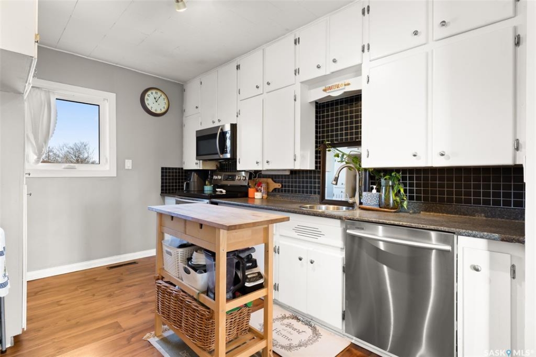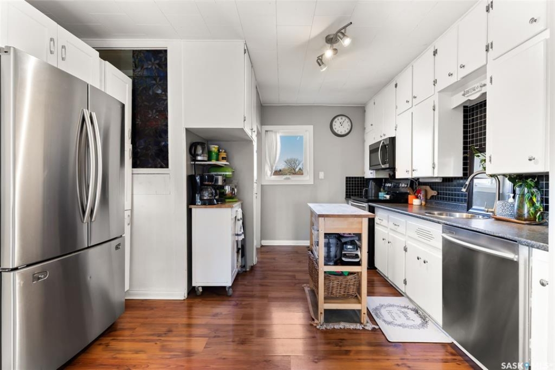 Welcome to 230 5th Street in the thriving community of Milestone - just a quick 30-minute commute to Regina and approximately 40 minutes to Weyburn. Enjoy small-town living with all the essential amenities, including K-12 schooling, grocery store, gas stations, restaurants, recreation facilities, and more. Originally built in 1955 with a second-floor addition in 1986, this spacious family home offers a versatile layout and great functionality. The second level features three bedrooms and a four-piece bathroom. Most windows throughout the home have been upgraded to PVC. The main floor provides excellent flow with an open-concept kitchen, dining room, and living room. The inviting living room offers French doors leading to the deck down to a patio where you can enjoy the fully fenced backyard. The kitchen includes stainless steel appliances, an over-the-range microwave, built-in dishwasher, and plenty of cabinet space. A large primary bedroom with walk-in closet is conveniently located on the main level, with a four-piece bathroom adjacent. A cozy den/nook off the main living space provides the perfect spot for a small office or reading corner. The basement is fully developed with a generous rec room, an additional bedroom, a three-piece bathroom, full laundry/storage room. A great flex space for hobbies, playroom, or home gym! Plenty of natural light throughout enhances the warm, welcoming feel of the home. Outside, the 50' x 140' (7,000 sq ft) lot features a fully fenced backyard and front driveway. The insulated single detached garage is connected to the home via the front foyer for added convenience. A unique and well-loved property in a wonderful community - perfect for families seeking comfort, space, and the charm of small-town Saskatchewan living. Come experience life in Milestone!
