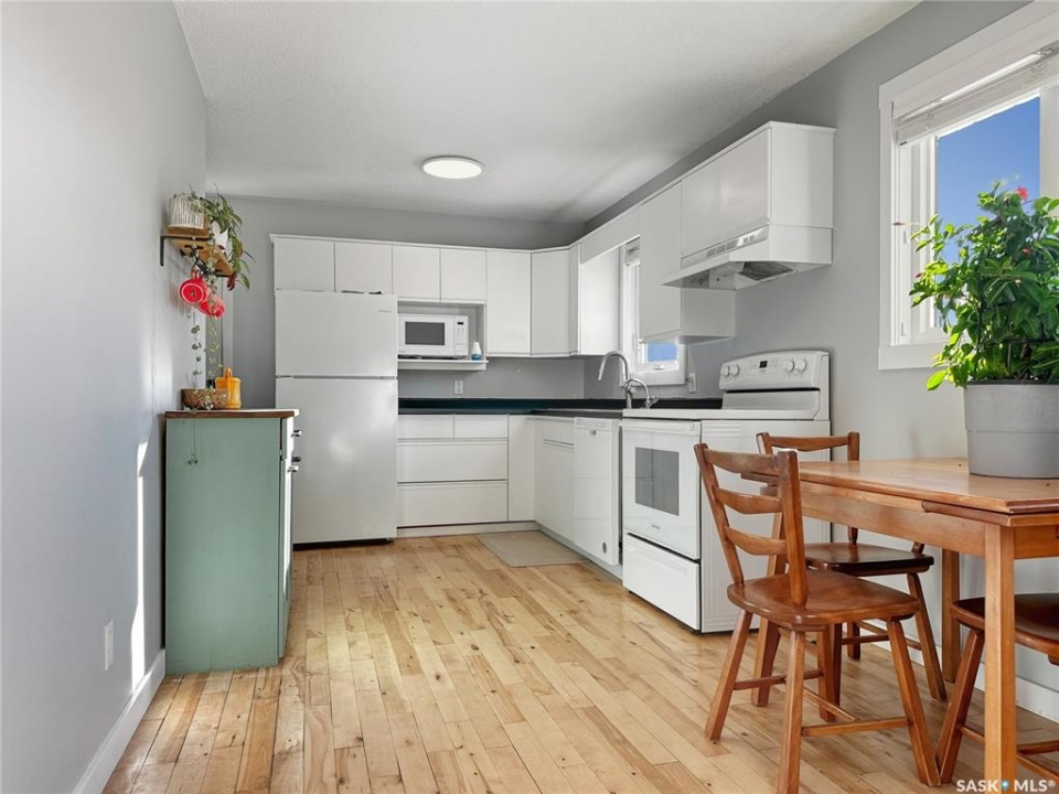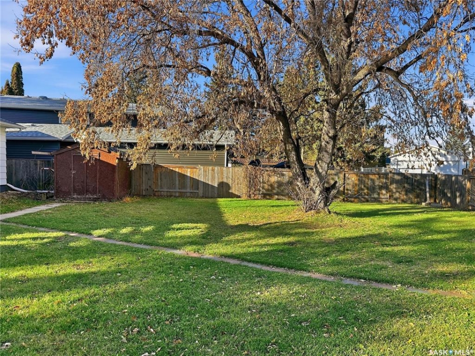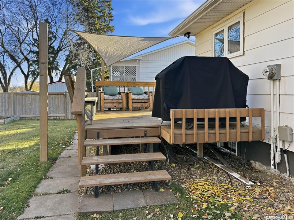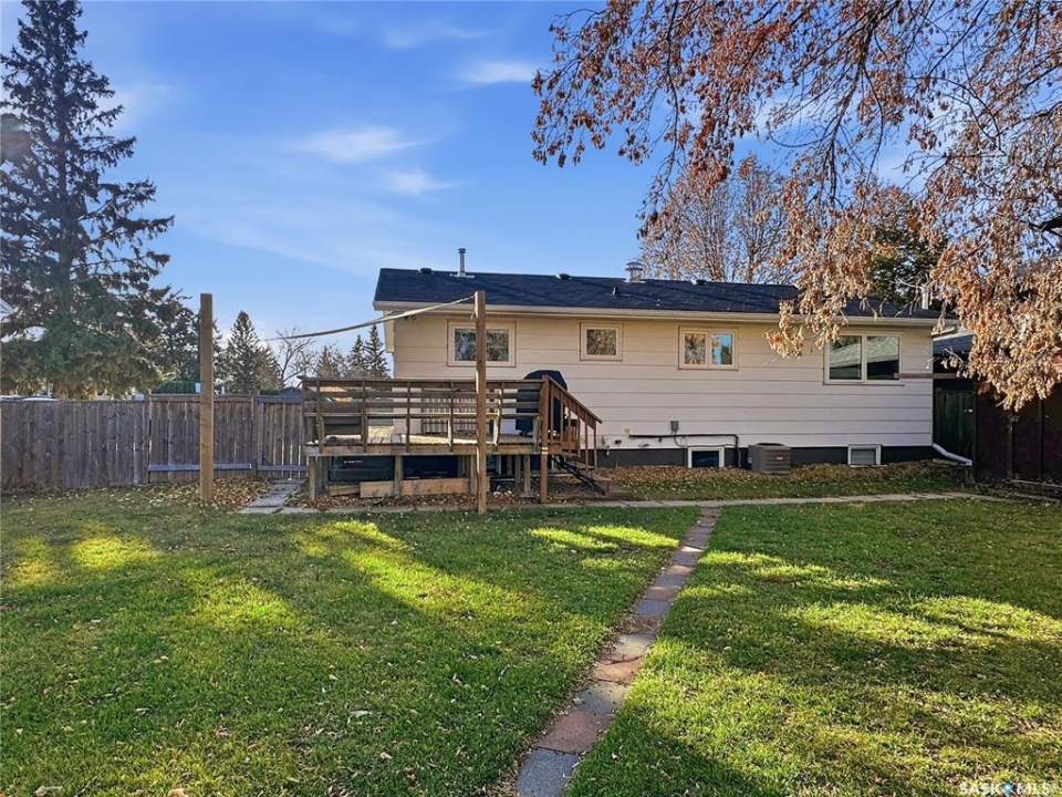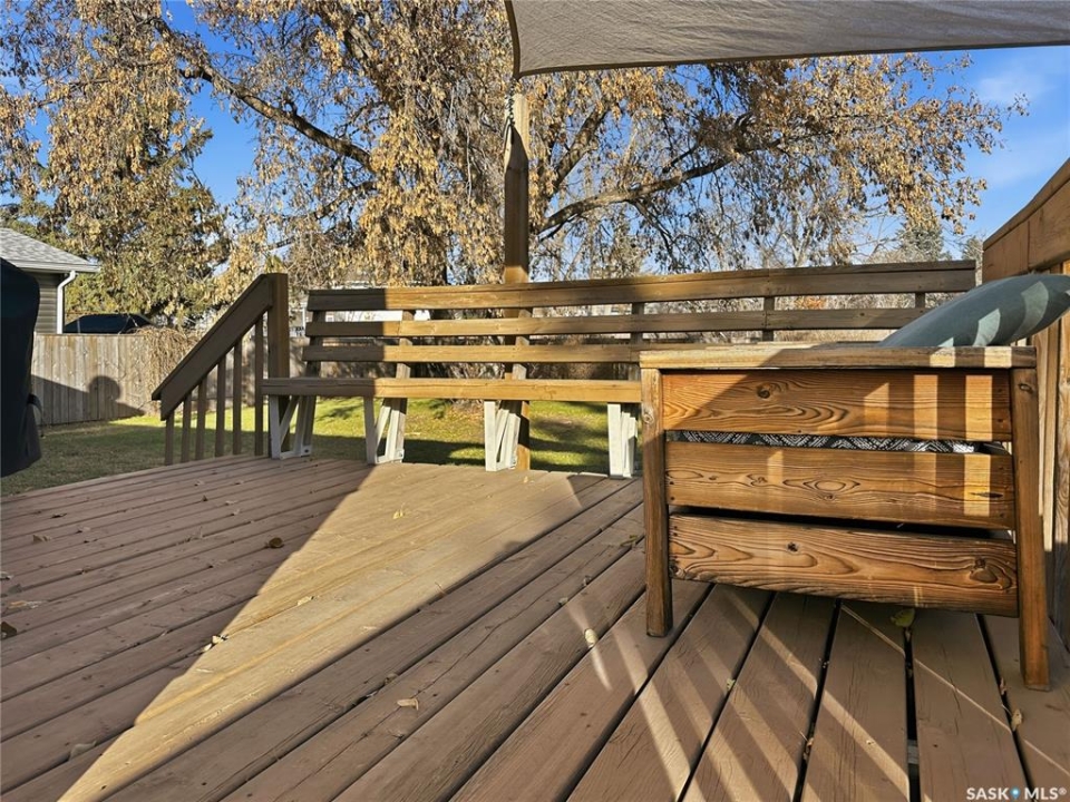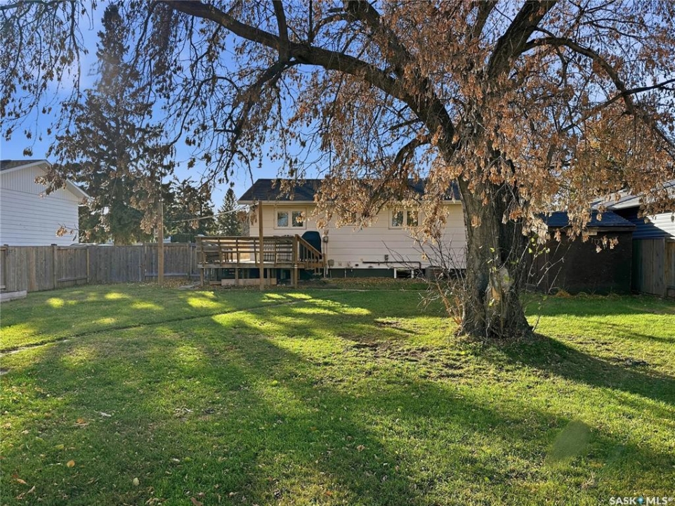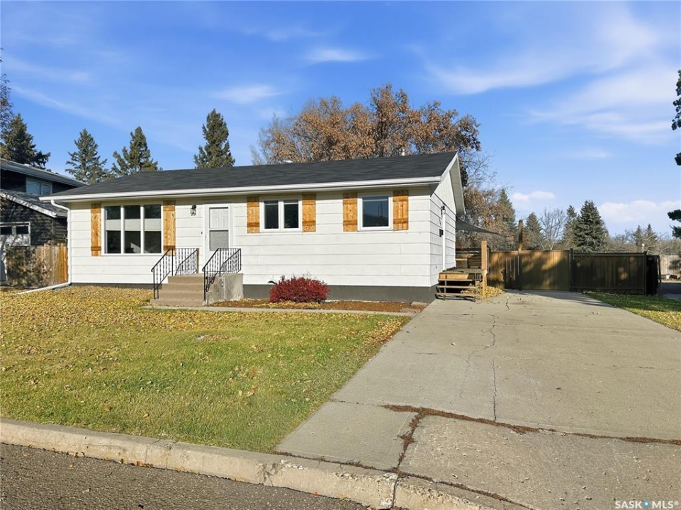 Charming West Side Home Backing Onto the Park!! Located in an amazing and quiet West Side neighborhood of North Battleford, this well-cared-for home offers the perfect combination of comfort, updates, and location. Backing onto the park of Holy Family, you'll love the peaceful setting with no neighbors behind—just open green space and plenty of room to enjoy. Inside, you'll find a bright and welcoming main floor featuring hardwood floors throughout and an open-concept design where the kitchen, dining, and living room flow seamlessly together. The south-facing front windows flood the space with an abundance of natural light, creating a warm and inviting atmosphere. There are a total of four bedrooms and two bathrooms, with the basement bathroom beautifully renovated to include a walk-in tiled shower. Numerous updates have already been completed, including windows, shingles, furnace, water softener, and hot water heater, giving you peace of mind for years to come. Step outside to enjoy the wraparound deck that extends from the side door to the backyard, offering a great space for relaxing or entertaining while overlooking the park. This home is located in the heart of the West Side, close to schools and shopping centres, making it an ideal choice for families or anyone looking for a quiet, convenient location. All appliances will remain. This move-in ready home is a must-see! Call today to book your private tour!