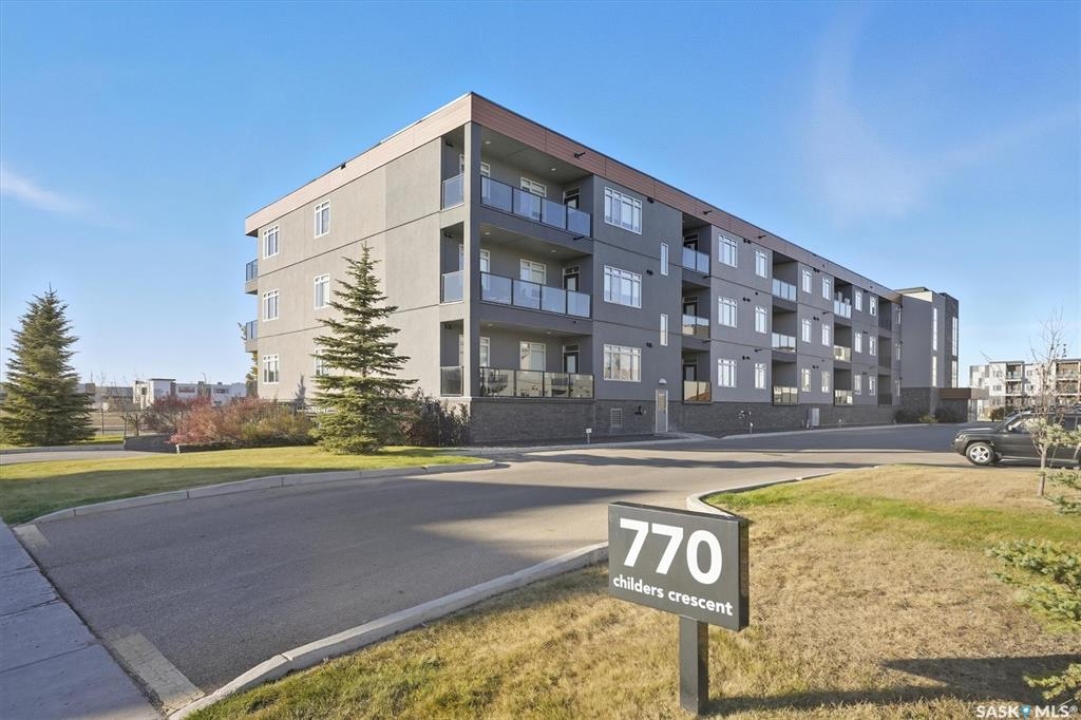 Welcome to 770 Childers Crescent: modern, convenient living in the heart of Kensington! This stylish apartment-style condo offers comfort, function, and ease. The bright, open living area features large south-facing windows that flood the space with natural light. The kitchen steals the show with sleek quartz countertops, stainless steel appliances, ample cabinetry, and a spacious island with an eat-up bar, perfect for everyday living and entertaining. You'll find two bedrooms, including a primary suite with a generous walk-in closet and a four-piece ensuite, plus a second full bathroom. Step out onto the large balcony to enjoy your outdoor space and soak in the sun. Practical features include in-suite laundry, central air conditioning, and efficient forced-air heating. The secure, heated underground parking means no more scraping windows in winter, with convenient elevator access directly to your floor. Located within walking distance to all of Kensington's amenities; groceries, restaurants, banks, and parks, and with quick access to major routes, this home checks every box. Stylish, functional, and perfectly located, book your private showing today!