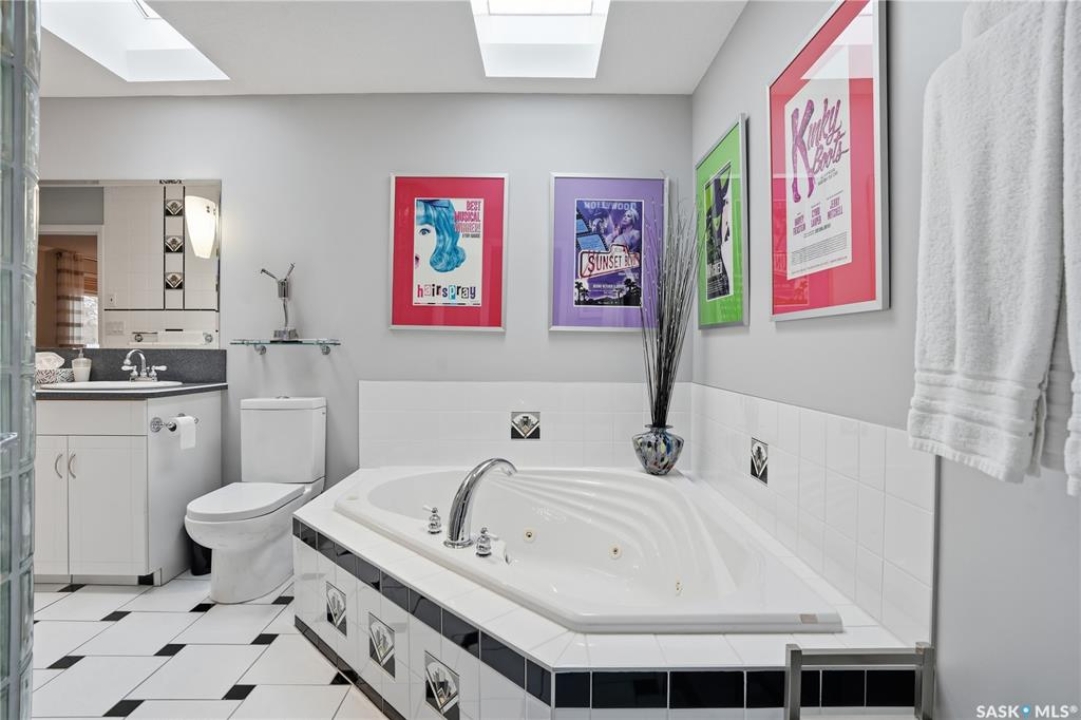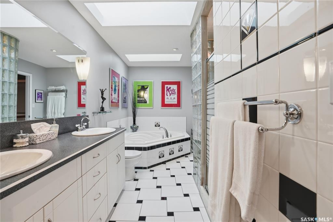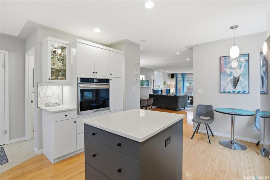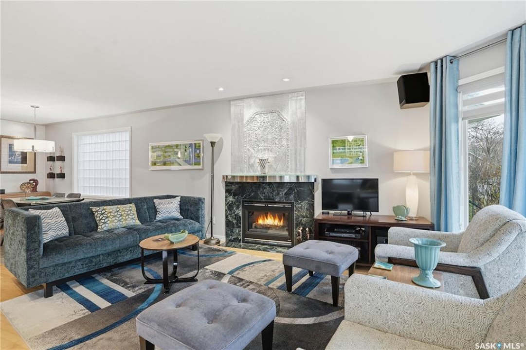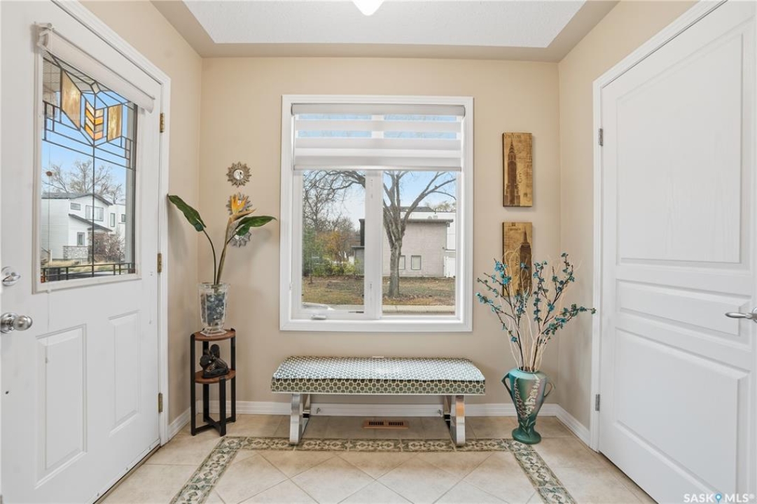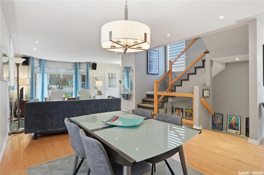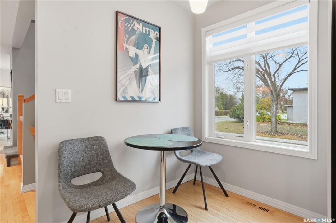 Welcome to 2576 Cameron Street. This charming 2 story is located in the desirable Crescents Neighbourhood. Immediately you will notice the attractive curb appeal with a large front and side yard that has been beautifully landscaped. Custom Ripplinger build distinguished by meticulous attention to detail, tastefully decorated and offering 1588 square feet of living space. As you enter you will be greeted by the large foyer and open concept living space. Large windows allow for an abundance of natural light. Living room features maple hardwood flooring that continues throughout the main level, lovely drapery which is included, and a gas fireplace with marble surround and custom plaster feature wall. Living room speakers can also stay if the buyer so chooses. The spacious dining room boasts a ceramic tile floor inlay and back lighting accenting the glass block wall. The kitchen is a chef's dream with plenty of counter space, two tone custom cabinets, herringbone pattern subway tile backsplash, and stainless steel appliances which are included. Off the kitchen you will find a 2 piece bathroom and entry to the backyard with a large tiered deck and 2 car detached garage with lane access. Primary bedroom can be found upstairs with direct access to walk in closet and the large 5 piece bathroom featuring a jacuzzi tub, a glass block shower and in floor heating. 2 more bedrooms and laundry complete the second level. The basement is the perfect entertaining space with a media room which includes the projector and screen along with surround sound system. Large storage/ utility space with additional fridge and freezer that are both included. This property is conveniently located close to Downtown, The Royal Saskatchewan Museum, Wascana Park and mere steps from green space. Additional features include: shingles 2022, furnace 2016, central air conditioning, roughed in plumbing in basement, and roughed in natural gas hook up.