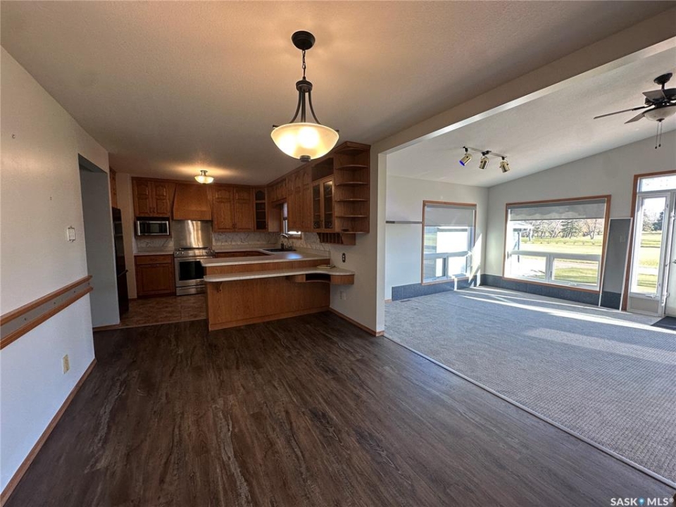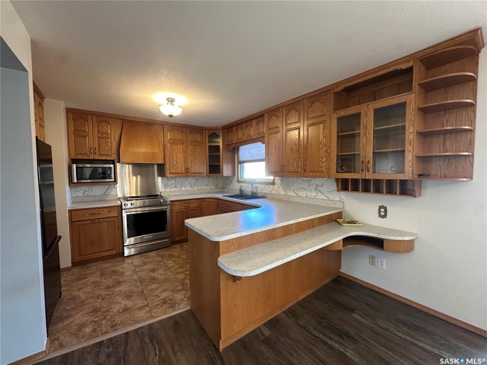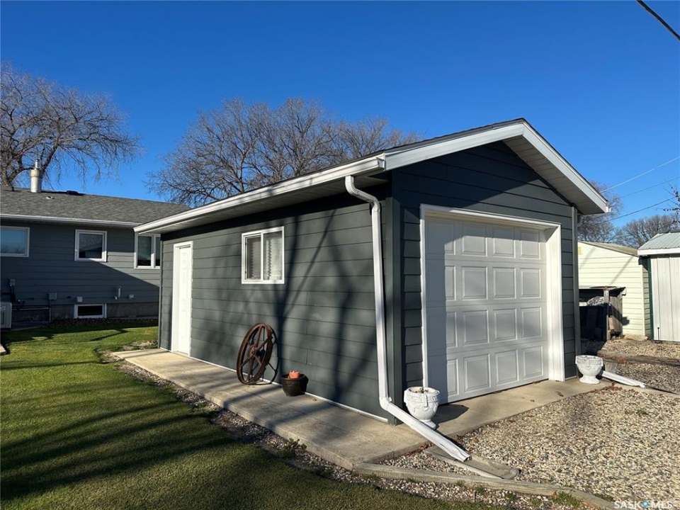 Let's consider Canora as your new community - a quiet, peaceful, full-service town close to many lakes offering boating, fishing, hunting, and winter recreation activities at your fingertips. Now add this: a superior home on a quiet street, backing Hole #3 of the Canora Golf & Country Club with sightlines of the driving and practice ranges, this property is perfect for raising a family in a safe community or enjoying an early retirement with a relaxed lifestyle. Plus, it's just a quick commute to Yorkton. Upon entering, you're welcomed into a large porch providing access to the backyard, the attached heated and insulated garage, and the rest of the home. At the front is the family room, featuring a charming bay window overlooking the quiet crescent. The kitchen and dining room sit just off the family room and offer ample cabinet storage, a breakfast bar, and access to the spacious living room. The living room is a highlight, with a natural gas fireplace for cozy evenings and large windows that flood the space with natural light. Down the hall, you'll find a 4-piece bathroom and three spacious bedrooms, including a primary suite with its own ensuite. The basement offers even more living space with a large recreation room, an additional bedroom with built-in cabinetry, a 3-piece bathroom, and the laundry/utility area. A major addition completed in 1993 added extra storage through a crawl space under the extension. Outside, the low-maintenance backyard is an outdoor haven—featuring a large deck off the main living room, a patio with pergola, BBQ area, grass space, and even a detached garage for extra storage or toys. It's the perfect place to relax, entertain, or simply enjoy the natural views of the golf course. Notable 2023 updates include a new central air, furnace, and generator, giving you peace of mind and efficiency for years to come. A great fit for families, retirees, or anyone looking for peaceful living with modern comforts - come check it out!