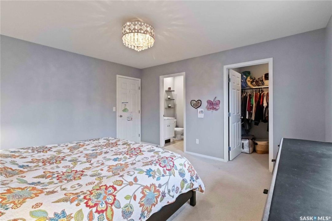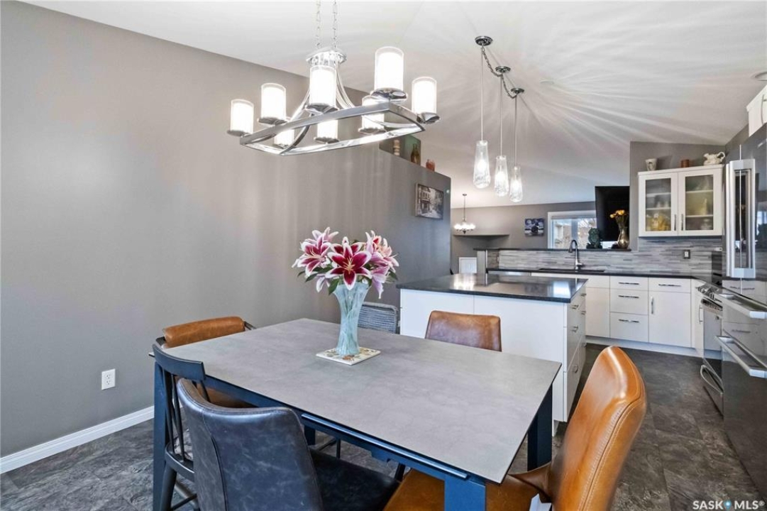 Welcome to 506 Kucey Crescent! This beautifully renovated 1256 sq ft bi-level is just half a block from the park. The main floor boasts a modern kitchen with a large island, quartz countertops, a gas stove, Bosch dishwasher, new Bosch fridge, and plenty of cabinet space. The vaulted ceiling and open floor plan create an inviting and spacious vibe. The spacious living room features updated flooring. There are three bedrooms on the main floor, along with an updated 4-piece bathroom. The primary bedroom includes a walk-in closet and an updated ensuite bath. The lower level offers a cozy family room with a gas fireplace, a pool table (included - with all accessories), two sizable bedrooms, a 3-piece bath, and a large laundry/mechanical room. Outside, enjoy the maintenance-free backyard with a large storage shed, deck with storage underneath and a gazebo. The heated, attached garage has storage, work bench and a new epoxy coated floor. This well-maintained home is in a fantastic location that's hard to beat!