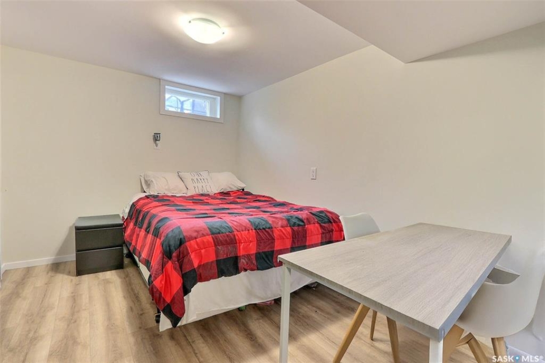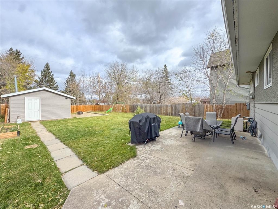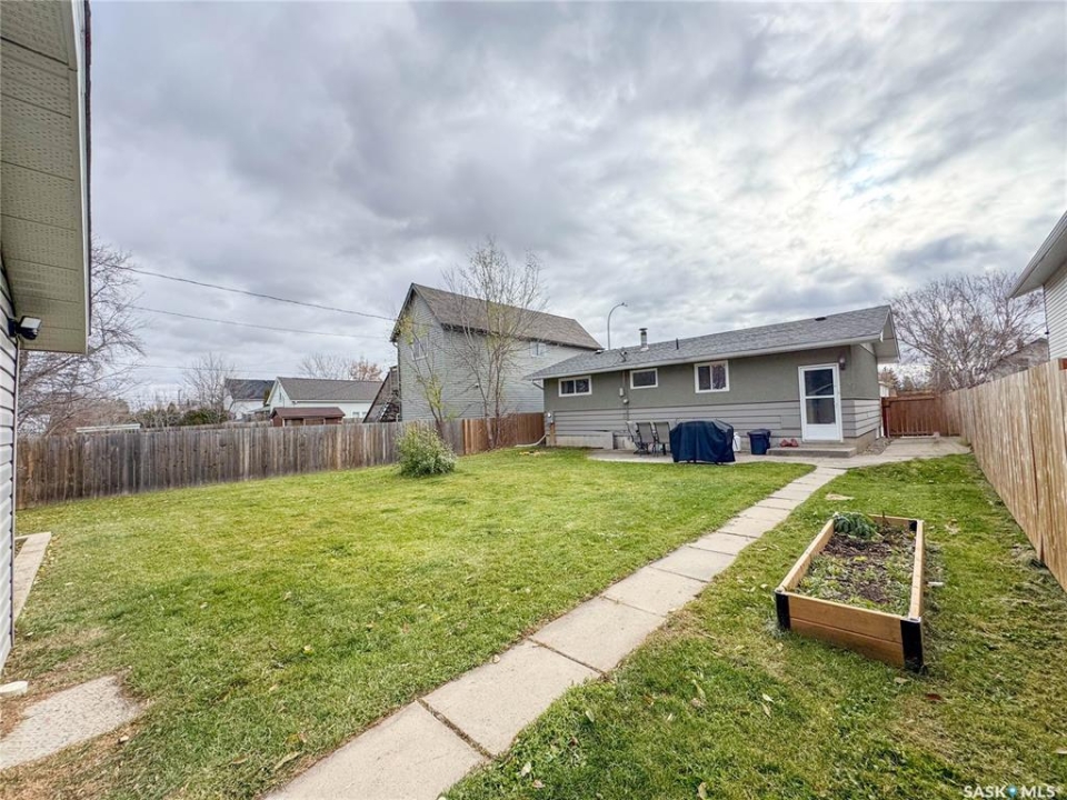 This charming 864 sq/ft bungalow is move-in ready and full of updates! The bright living room features gleaming hardwood floors and a large south-facing window that fills the space with natural light. The cozy, remodelled eat-in kitchen offers white cabinets, butcher block countertops, black hardware, and matching appliances for a clean, modern look. The main floor includes three comfortable bedrooms and a full bathroom. Downstairs, the fully finished basement boasts durable vinyl plank flooring, a spacious rec room, a fourth bedroom, a den, and a utility room—perfect for extra living space or a home office. Outside, enjoy the large 49 x 130 lot with a new fence, patio, and fire pit area. The 14 x 24 detached garage is heated, and the property offers both a front driveway and alley access. Turn-key and ready to enjoy, with upgraded windows, interior doors, flooring, and newer shingles—this home truly has it all!