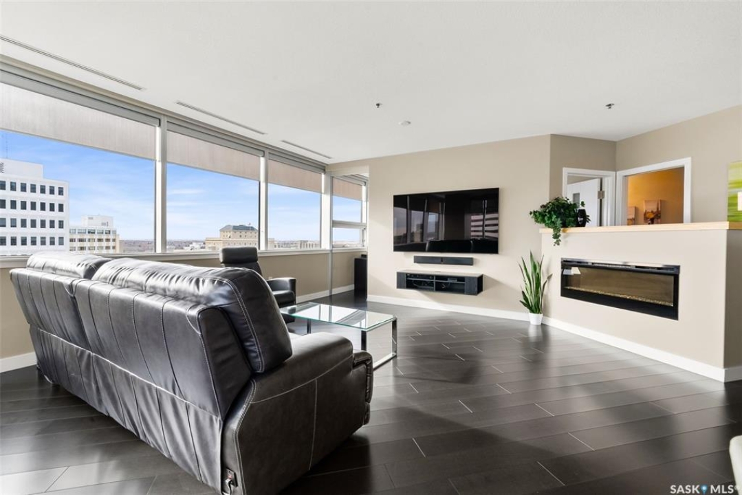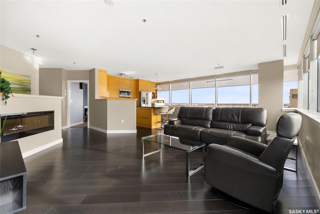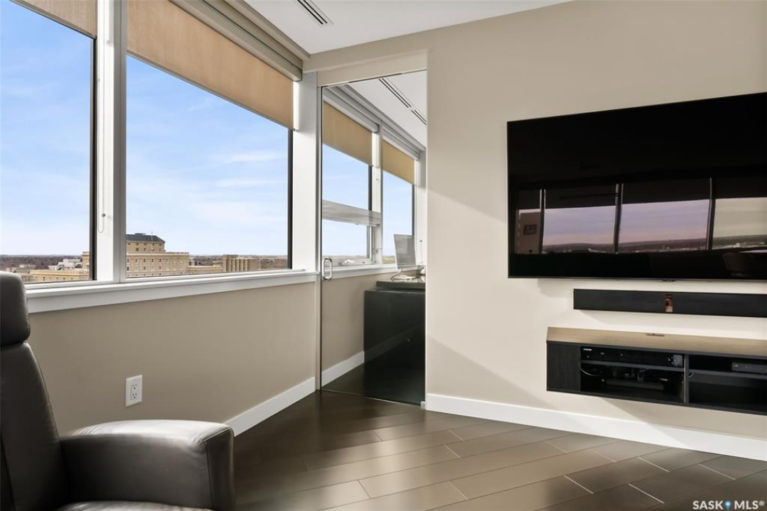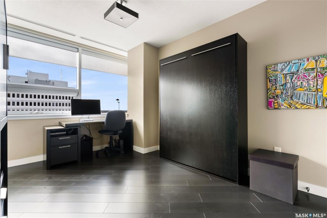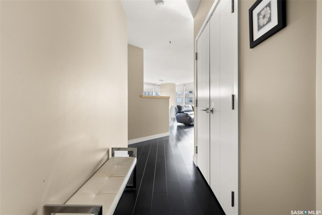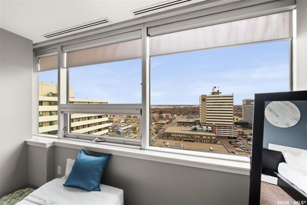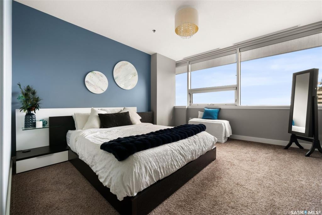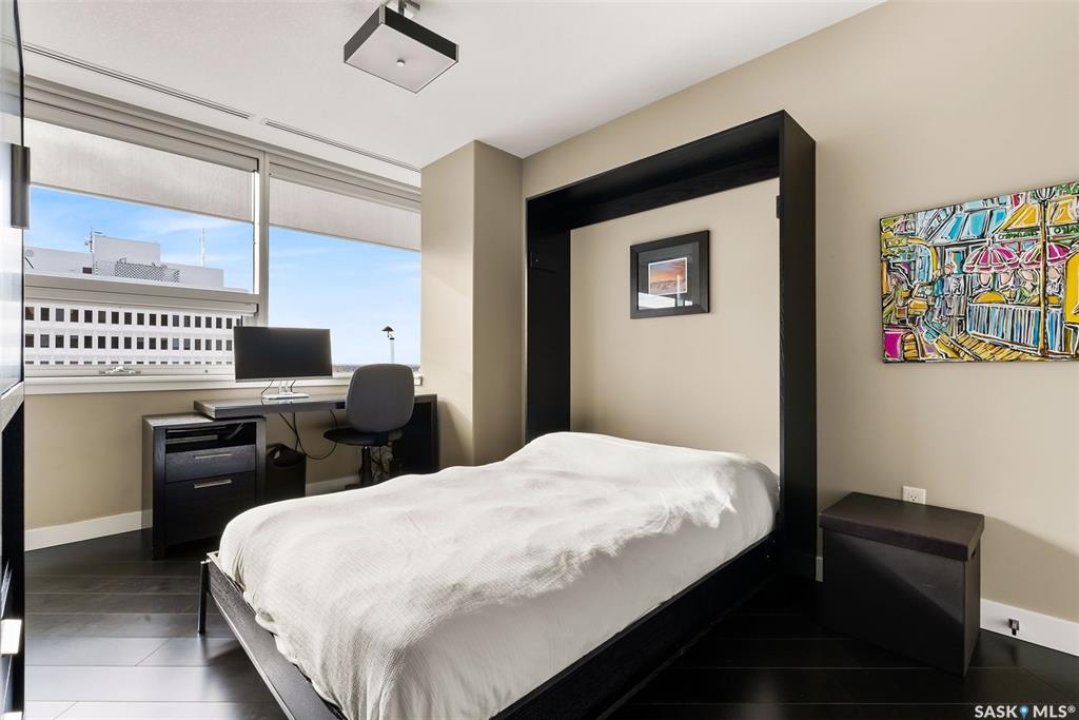 Welcome home to 1207-1914 Hamilton Street, a knock your socks off swankalicious condo in the on trend & fresh The Manor on Hamilton residence in the TD building. This 12th floor corner condo with expansive wall to wall windows showcasing east to south views. Meticulously modernized it embodies contemporary sophistication and the essence of downtown living, complete with concierge service, secured entry, and a fitness/amenities room with direct access to an outdoor terrace featuring a barbecue station and gas firepit lounge areas. Professionally managed and thoughtfully maintained, the building offers peace of mind with recent updates including windows, elevators, roof, & deck revitalization + an upcoming capital plan for refreshed corridors, expanded deck space, & add'l enhancements. Sophistication surrounds you in the open-concept layout highlighting a living area with 36" electric fireplace, a dining area easily seating eight, a kitchen that's hosted countless dinners & glasses of wine with friends featuring soft-close bamboo cabinetry, granite countertops, a stainless-steel appliance package, a centre island seating. The secondary bedroom offers versatile function as an office or guest room, complete with built-in Murphy bed & WIC. The full bathroom showcases a modern vanity, full tub insert, & graphite tile flooring. Spend time in your primary bedroom providing an exquisite WIC w/custom millwork, soft close drawers, footwear display rack & ample room for hers & his wardrobe items, as desired! Built in vanity area w/design flare (ask for details) on way to the custom designed ensuite offering a walk-in glass & tiled, dual head shower, dual sinks & stone top vanity, heated marble flooring & backlit floating glass shelves. Enjoy in suite laundry & storage room. More perks: Deep-rich coloured engineered hardwood & Central Vac; Solid core doors; Bedroom windows w/opaque glass inserts. UG parking & add'l storage can be rented monthly. It's time for big city energy!