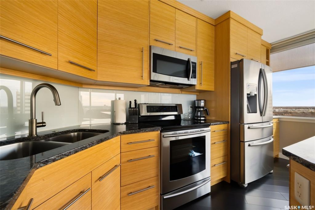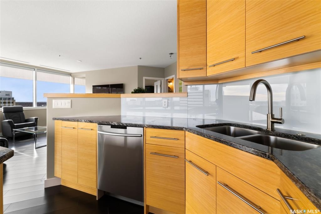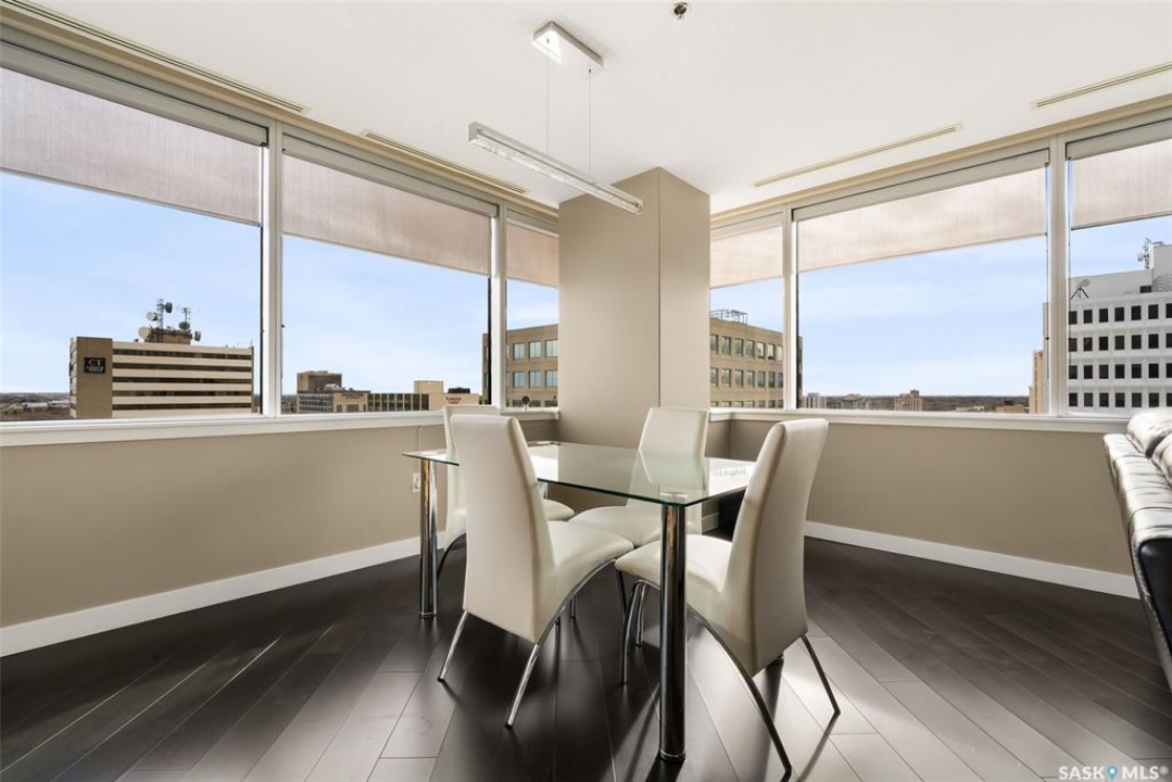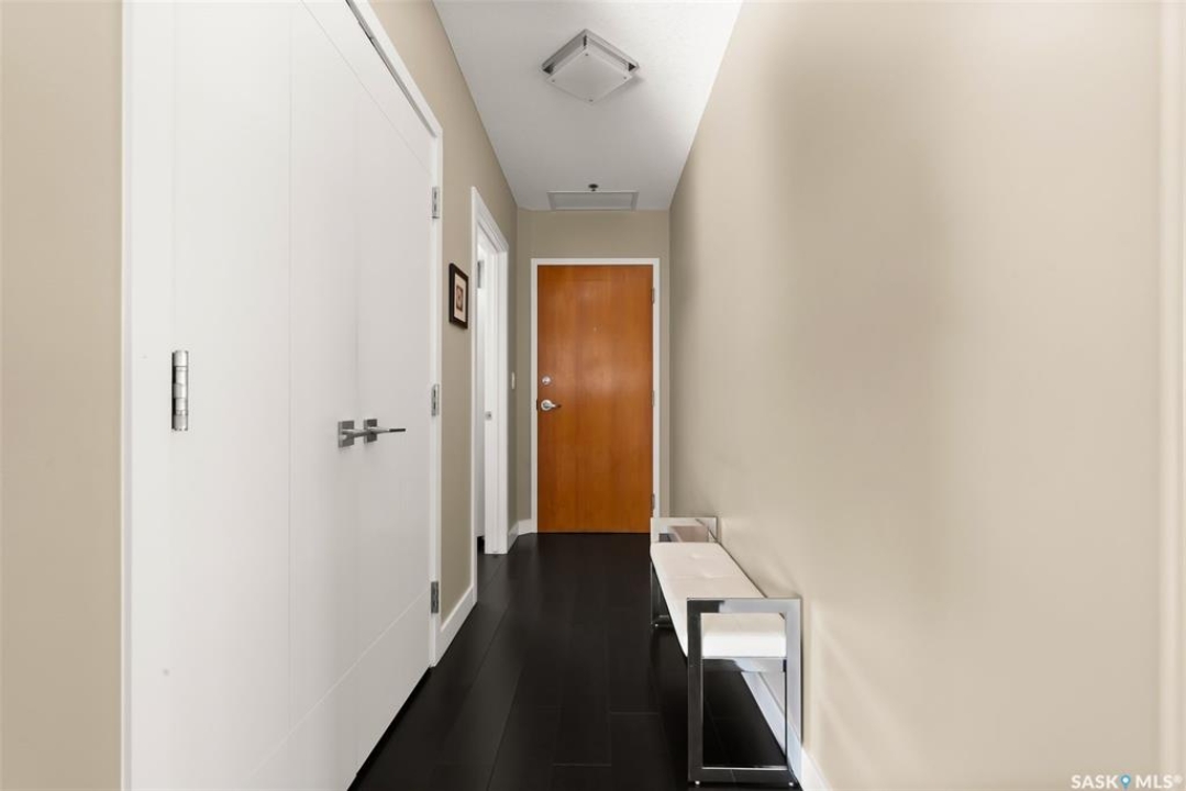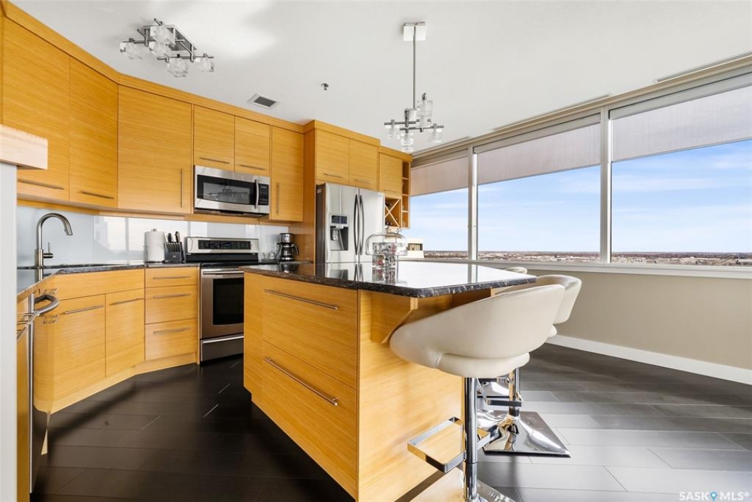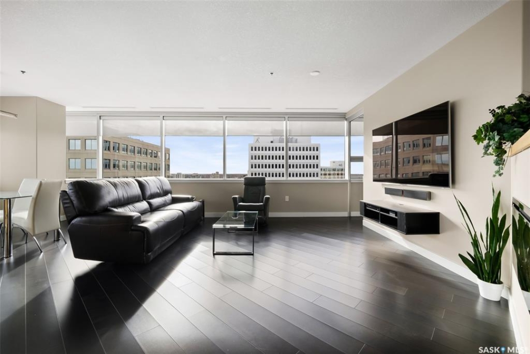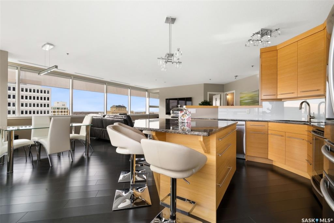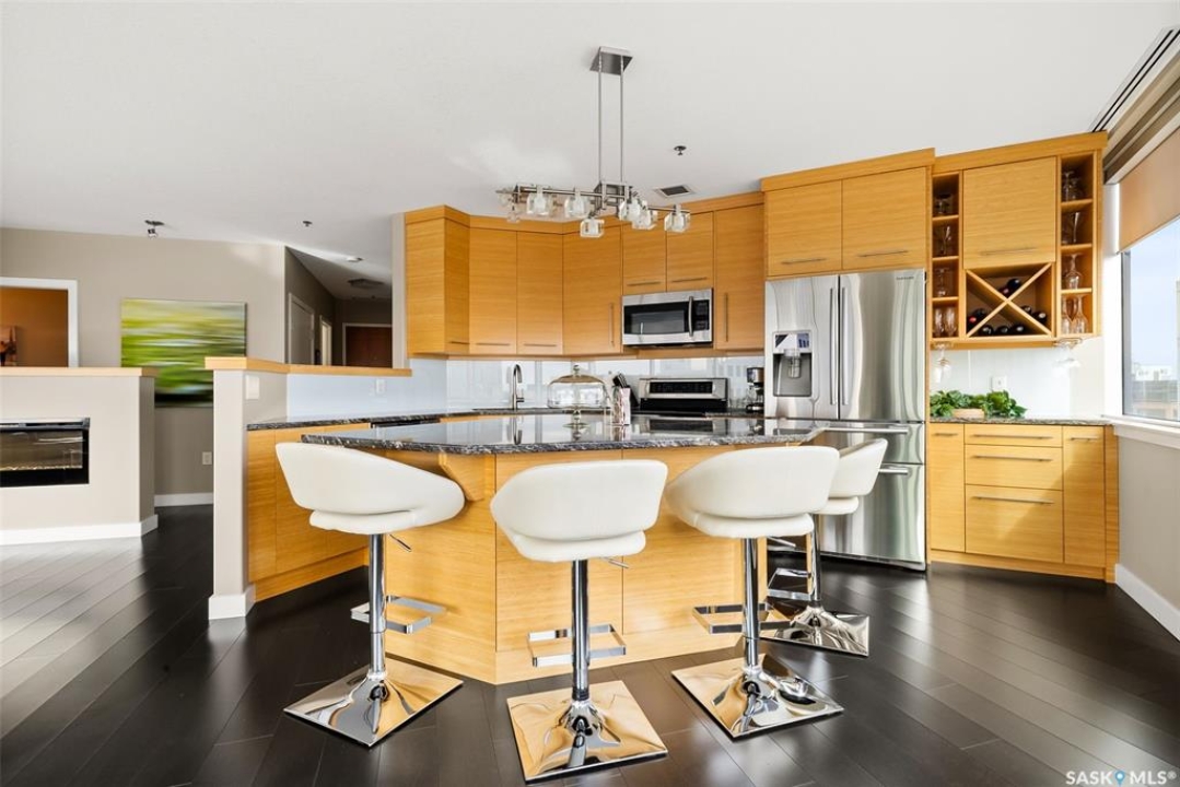 Welcome home to 1207-1914 Hamilton Street, a knock your socks off swankalicious condo in the on trend & fresh The Manor on Hamilton residence in the TD building. This 12th floor corner condo with expansive wall to wall windows showcasing east to south views. Meticulously modernized it embodies contemporary sophistication and the essence of downtown living, complete with concierge service, secured entry, and a fitness/amenities room with direct access to an outdoor terrace featuring a barbecue station and gas firepit lounge areas. Professionally managed and thoughtfully maintained, the building offers peace of mind with recent updates including windows, elevators, roof, & deck revitalization + an upcoming capital plan for refreshed corridors, expanded deck space, & add'l enhancements. Sophistication surrounds you in the open-concept layout highlighting a living area with 36" electric fireplace, a dining area easily seating eight, a kitchen that's hosted countless dinners & glasses of wine with friends featuring soft-close bamboo cabinetry, granite countertops, a stainless-steel appliance package, a centre island seating. The secondary bedroom offers versatile function as an office or guest room, complete with built-in Murphy bed & WIC. The full bathroom showcases a modern vanity, full tub insert, & graphite tile flooring. Spend time in your primary bedroom providing an exquisite WIC w/custom millwork, soft close drawers, footwear display rack & ample room for hers & his wardrobe items, as desired! Built in vanity area w/design flare (ask for details) on way to the custom designed ensuite offering a walk-in glass & tiled, dual head shower, dual sinks & stone top vanity, heated marble flooring & backlit floating glass shelves. Enjoy in suite laundry & storage room. More perks: Deep-rich coloured engineered hardwood & Central Vac; Solid core doors; Bedroom windows w/opaque glass inserts. UG parking & add'l storage can be rented monthly. It's time for big city energy!