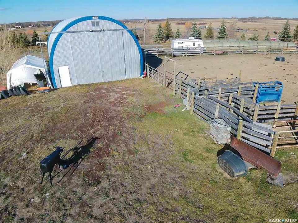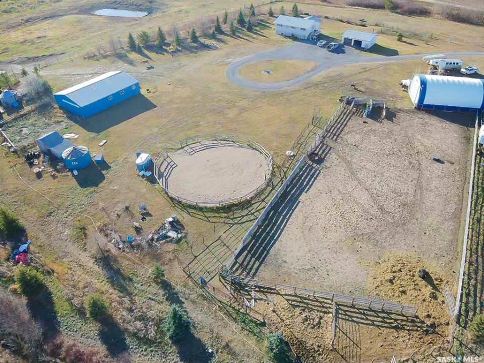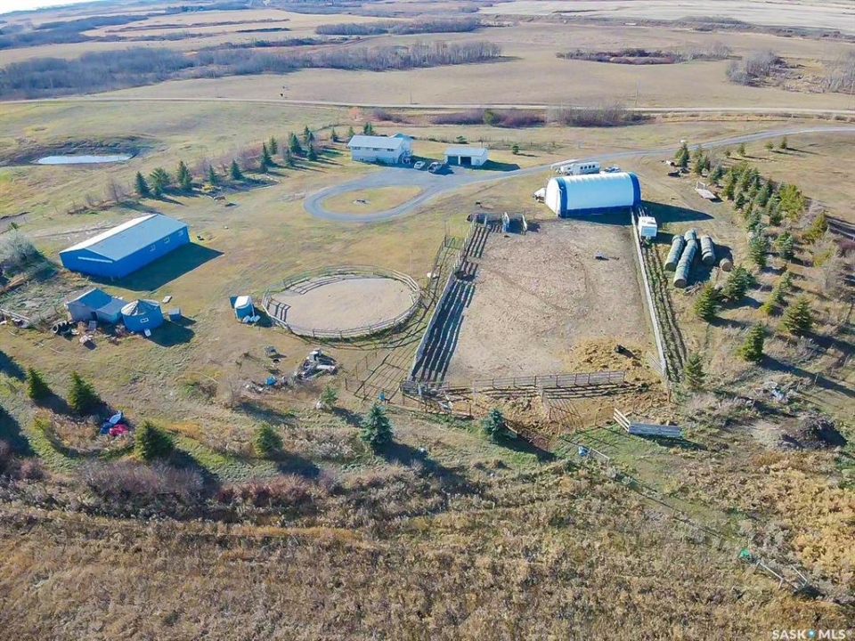Welcome to your prairie retreat — a 20-acre acreage with tons of potential just 30 minutes east of Regina, perfectly set up for horse lovers, hobby farmers, or anyone seeking a peaceful country living with modern comfort. Located just 1.5 miles East of the town of Qu'Appelle, this property offers wide-open views, versatility, and the space to live your dream rural lifestyle. The 1,212 sq ft bungalow features 3 bedrooms up and 1 down, with spacious living room and a bright kitchen showcasing quartz countertops, vinyl plank floors, and a spectacular view of the land. The home sits on a solid ICF foundation with a 9' high basement and is equipped with a reliable geothermal heating and cooling system—offering efficient comfort year-round. The home was moved onto the foundation in 2009. Outside, the acreage is turnkey for equestrian use or small-scale livestock. You'll find a massive 80' x 160' outdoor riding arena, a 70' round pen, 4 fenced pastures, a powered 36'x 50' pole barn with an insulated and heated tack room that measures 20'x12', and a 30' x 50' Coverall Quonset with a 16' overhead door and 22' ceilings. There is also a 24' x 30' double detached garage for extra parking and workspace. The property also has a chicken coop and multiple small storage sheds. The strong-flowing well, combined with reverse osmosis filtration, provides excellent drinking water. Kids play structure is included; trampoline optional. Negotiable items include portable corral panels, roping chute, and dummy. With the perfect balance of rural tranquility and convenience, this acreage is ready for its next owner to build memories and live their country dream. Don't miss the chance to make it yours. If you're looking for more land there are 142.29 Acres available south of the property see MLS SK022451.