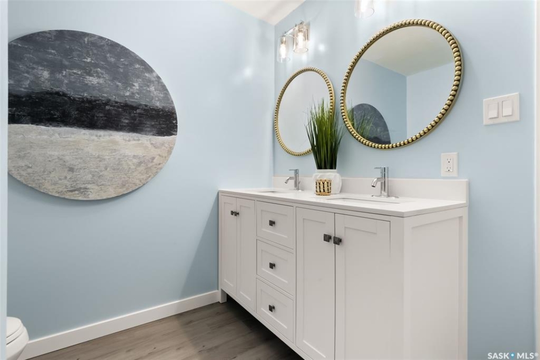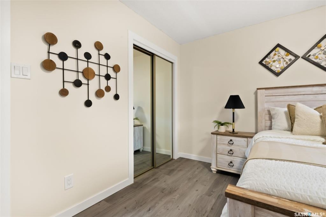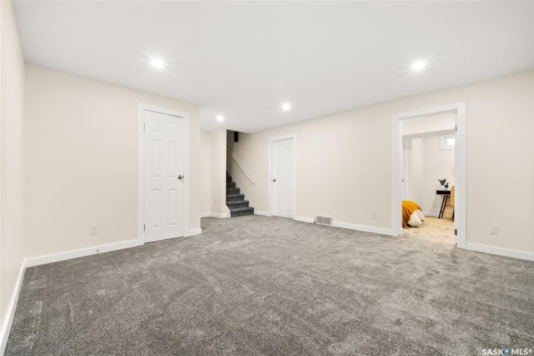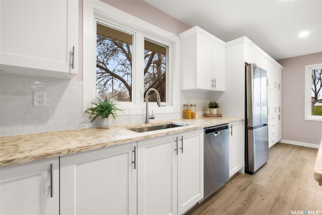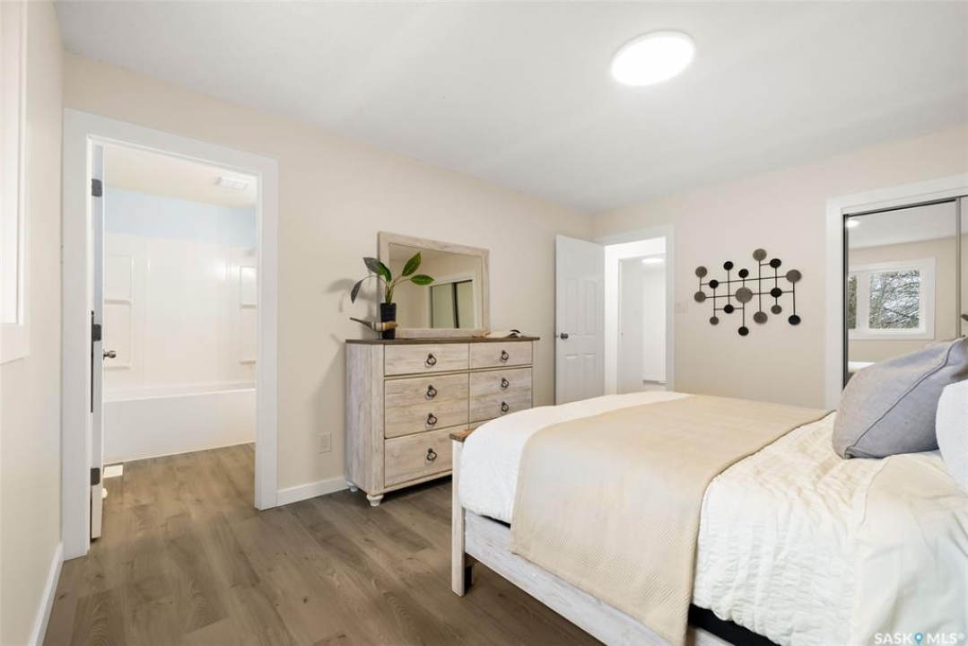 Location, location! Don't miss this completely upgraded two-storey split in the heart of Gardiner Park, perfectly situated on a quiet crescent backing green space and just steps to Wilfred Walker School. This is an ideal family home featuring over $100,000 in recent upgrades. A spacious sunken foyer welcomes you into a bright, open main floor redesigned in 2025 with a brand-new kitchen and an airy, modern layout. Windows on three sides fill the home with natural light and offer lovely park views. All windows have been upgraded to PVC triple-pane (except in the basement) for enhanced energy efficiency and comfort. New vinyl plank flooring flows throughout the main and second levels, complemented by new carpet in the basement. All interior doors, trim, and baseboards have been replaced, and the entire home was freshly repainted in 2025. Enjoy new LED pot lights, updated fixtures, and a kitchen that impresses with quartz countertops, modern stainless-steel appliances, and a dishwasher just one year old. Upstairs, you'll find three generous bedrooms — each featuring twilight lighting with three colour settings to create the perfect ambiance day or night. The primary suite includes a brand-new 5-piece ensuite, while the main 4-piece bath was also completely redone in 2025. A few steps down from the kitchen, you'll find a renovated 3-piece bath/laundry combo and a cozy family room with a wood-burning fireplace and patio doors leading to the back deck and yard. The lower level includes a spacious rec room and a fourth bedroom with new carpet and fresh paint. Other updates include central air (2020), new shingles, soffit, fascia, and eavestroughs (2025), and freshly cleaned furnace ducts. Located across from a park and just a short walk to Wilfred Walker School, grocery stores, and all east-end amenities, this beautiful home combines comfort, quality, and an unbeatable location — perfect for a growing family.