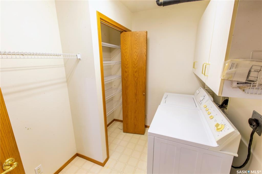 Welcome to the Manhatten! Bright 2 bedroom condo on ground level. Balcony faces the ball diamond. This corner unit allows for extra daylight from the window in the kitchen. Eat-in kitchen with lots of oak cupboards & appliances included. 2 large bedrooms --one with a full en-suite. Patio doors to cement deck. Radiant in-floor heating. Air conditioning. Elevator access to underground heated parking space and storage included. Laundry room in unit.