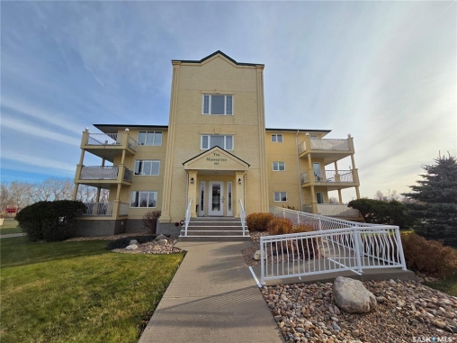 Welcome to the Manhatten! Bright 2 bedroom condo on ground level. Balcony faces the ball diamond. Eat-in kitchen with lots of oak cupboards & appliances included. 2 large bedrooms --one with a full en-suite. Patio doors to cement deck. Radiant in-floor heating. Air conditioning. Elevator access to underground heated parking space and storage included. Laundry room in unit.