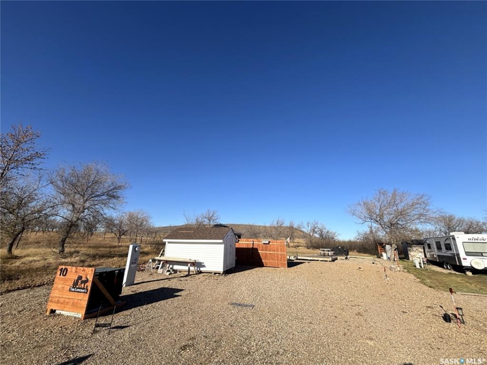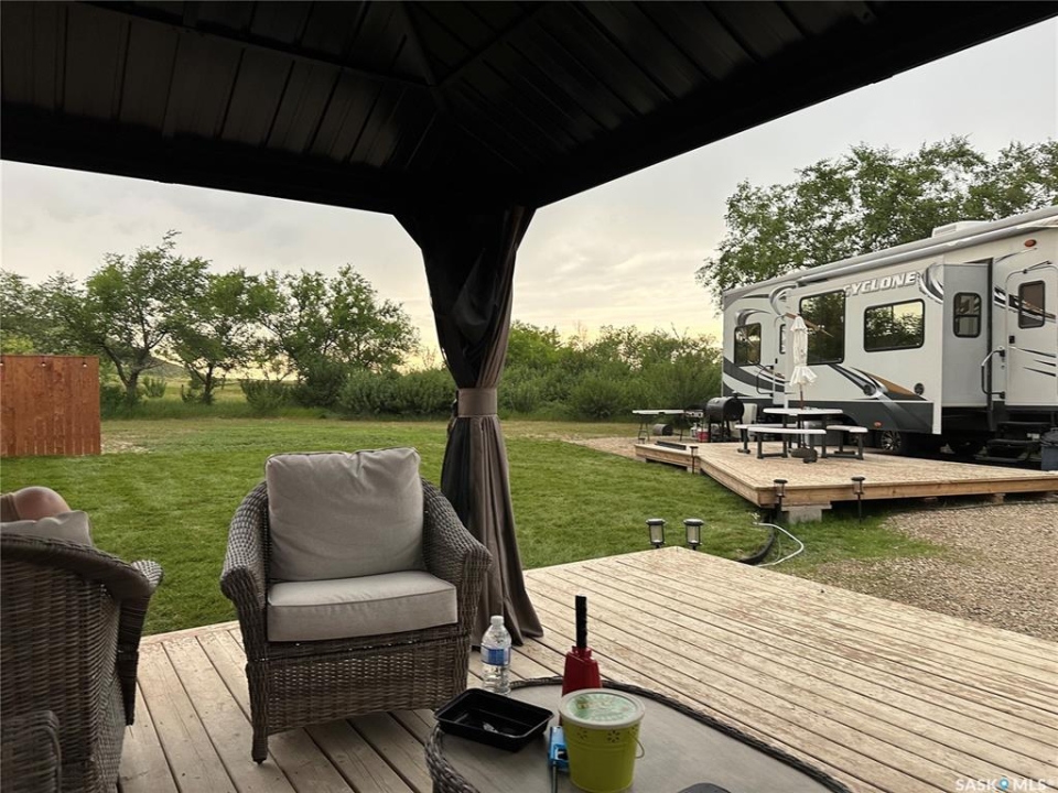 Welcome to your perfect getaway! This large RV titled lot in a progressively growing community an hour away from Saskatoon is the ideal retreat. The property comes ready for your RV to just pull in and play! This well manicured lawn is maintained with the underground sprinklers and can be enjoyed from the two decks or gazebo area enclosed with a partial fence with some beautiful views of the water and green space. Sandy Shores Resort is on Lake Diefenbaker, which has amazing fishing, is a top 10 sailing destination in Canada and has ample water for water sports. The large lot is a nice distance to the walking trails that wrap around the development which is great for morning walks, which lead to the two beaches. The Resort has a park, Sport Court, Marina, nearby boat launch and commercial property soon to be developed! Besides Sandy Shores being next to the Danielson Provincial Park, the development is ideally situated an hour South of Saskatoon on a newly paved highway! There are so many extras with this property you will just have to call and find out!