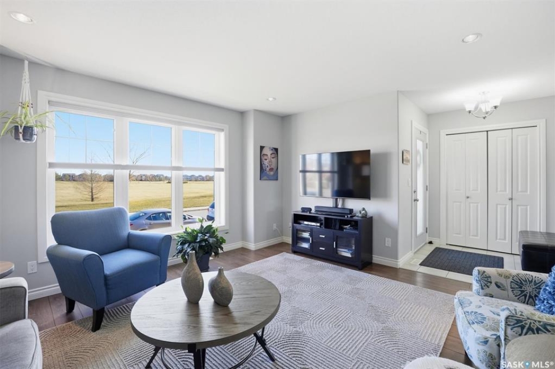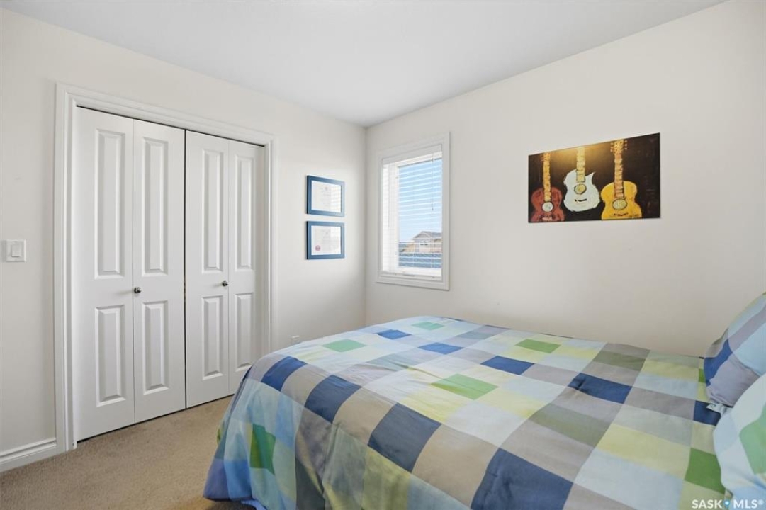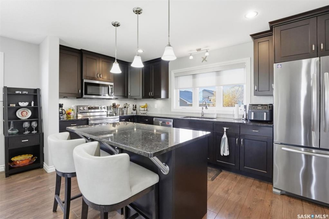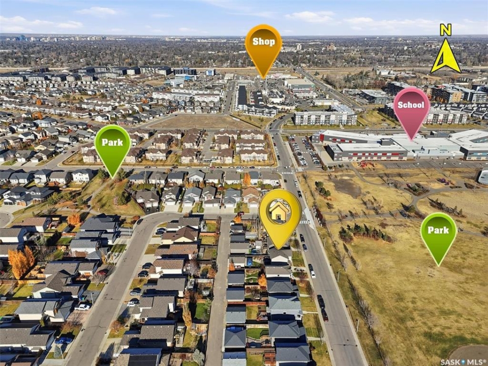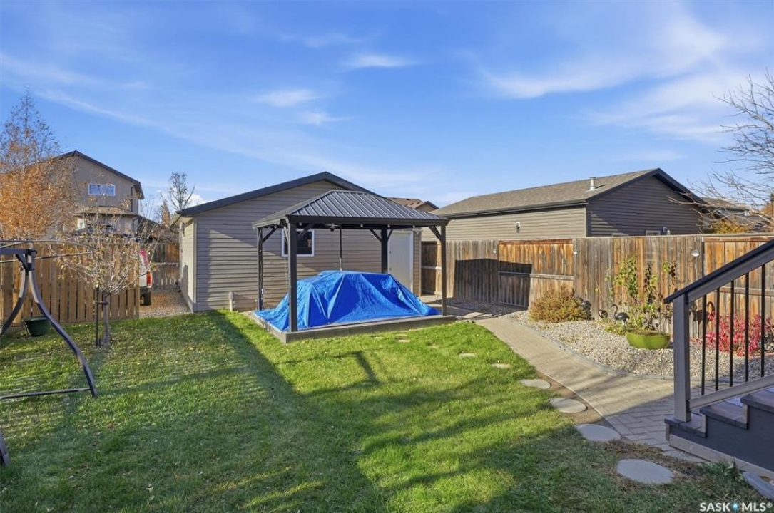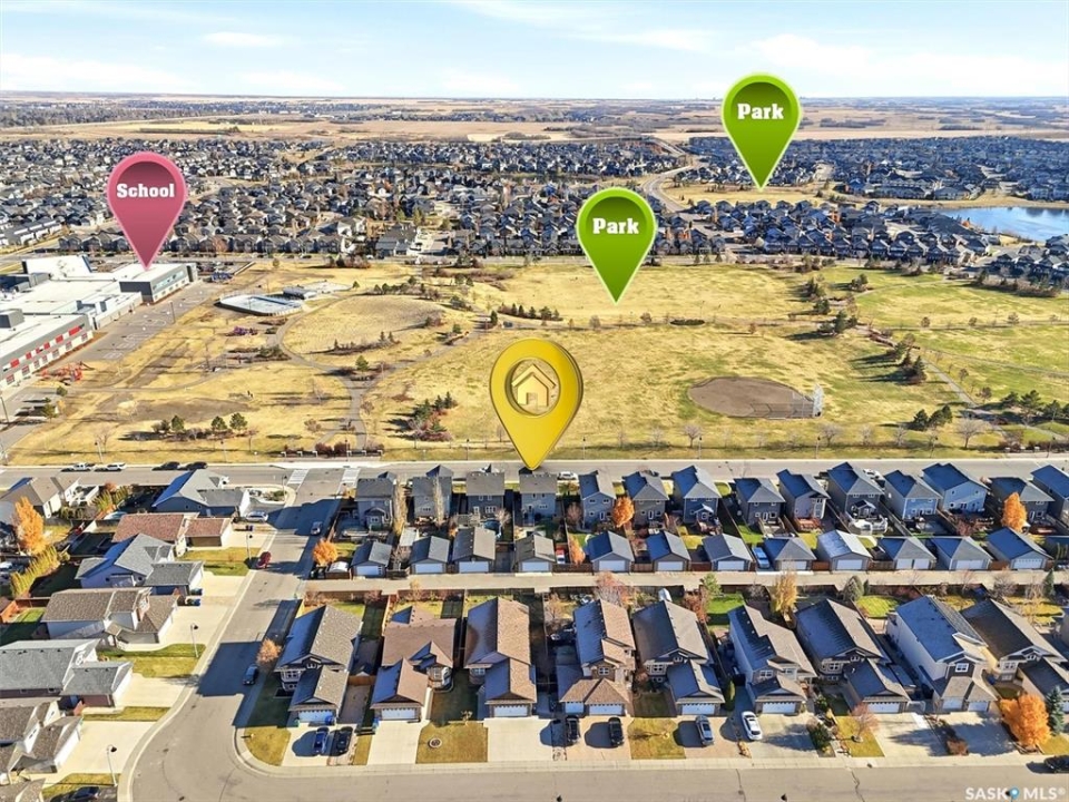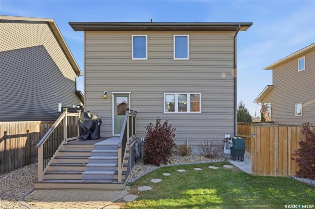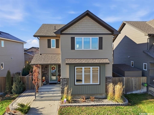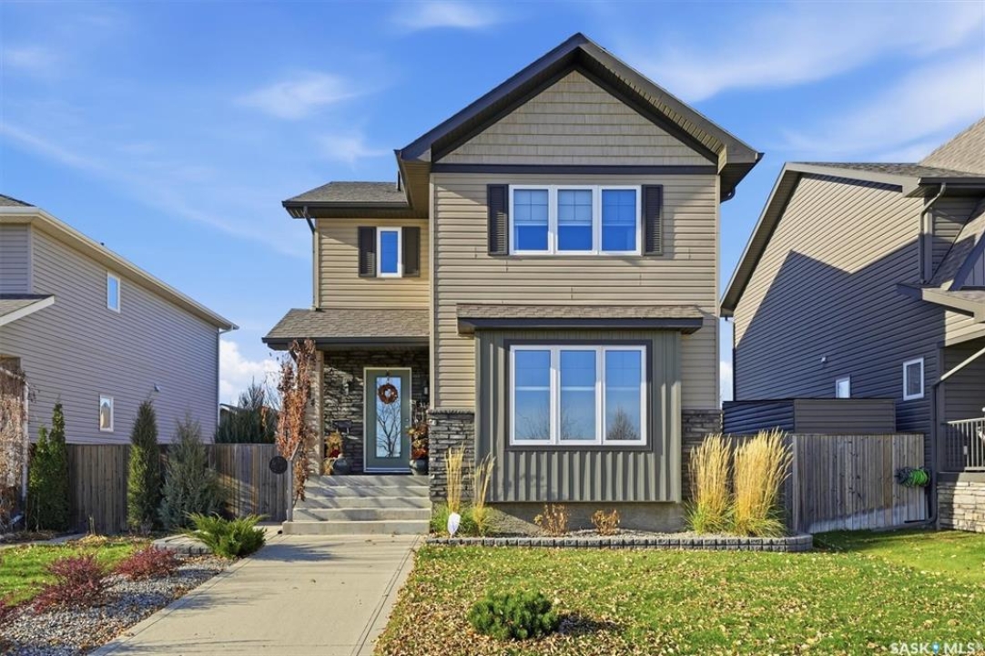Open House this Saturday 1-3 PM. Amazing 1483 sqft two-storey home showcasing one of the smartest layouts and built by a highly reputable Saskatoon builder. Perfectly situated across from Stonebridge Park with breathtaking views of manicured green space will be sure to impress. Families will love the location—watch your children walk to nearby Public or Catholic elementary schools from the comfort of your living room. The main floor features private front and rear entries. The bright living room offers a large picture window with park views and flexible furniture placement. The open-concept dining and kitchen areas are thoughtfully designed with just the right amount of separation, creating a layout that's both functional and inviting. The kitchen boasts granite countertops, abundant prep space, a picture window overlooking the backyard, an island with pullout drawers, and a spacious pantry for convenience. A designated mudroom, set apart from the main living areas, and a tucked-away half bath demonstrate thoughtful planning throughout. Upstairs includes three bedrooms, two bathrooms, and a true second-floor laundry room—a must-have feature (washer/dryer). The primary suite faces the park, offering elevated green space views, double closets, and a 3-piece ensuite with a 5' walk-in shower, and additional 4-piece main bathroom The unfinished basement is ready for future development, with space for a family room, bedroom, bathroom, and plenty of storage. Meticulously maintained inside and out, the homeowners have transformed the yard into a private retreat. The 36-foot-wide lot includes a 3rd utility parking space beside the 22' x 24' detached garage, a screened pergola, paving stone walkways, underground sprinklers, and drip lines for perennials and shrubs, some privacy fencing for outdoor storage requirements. Additional highlights include A/C, stainless steel kitchen appliances, including a newer stove and microwave, gas line for bbq, and window treatments.