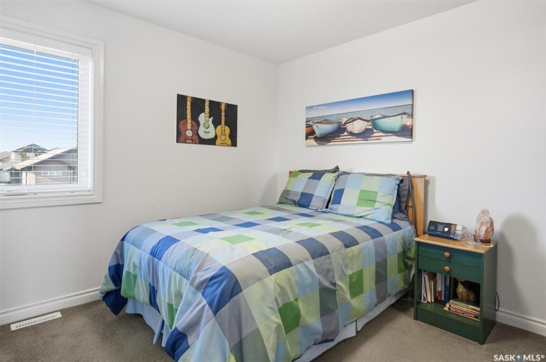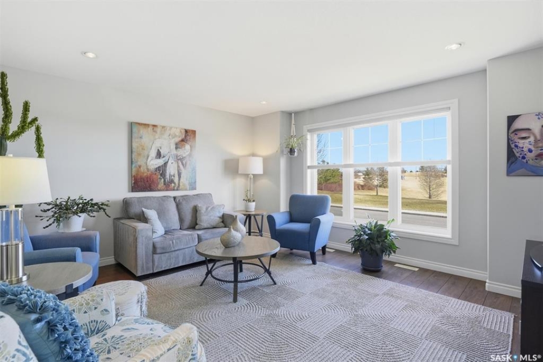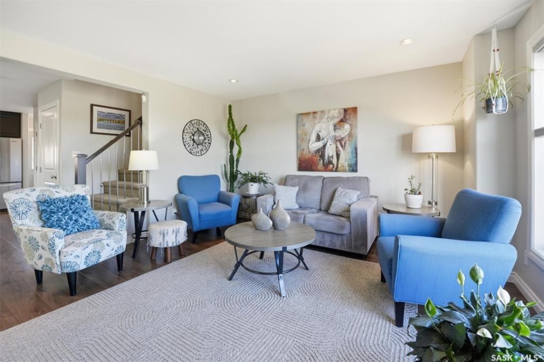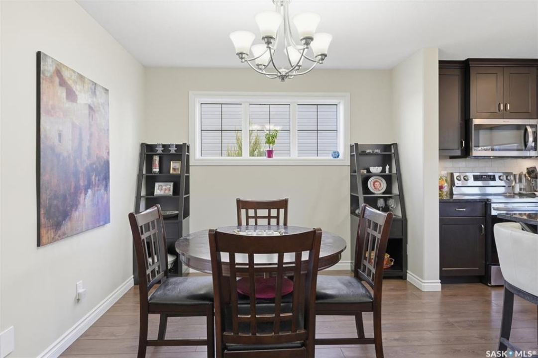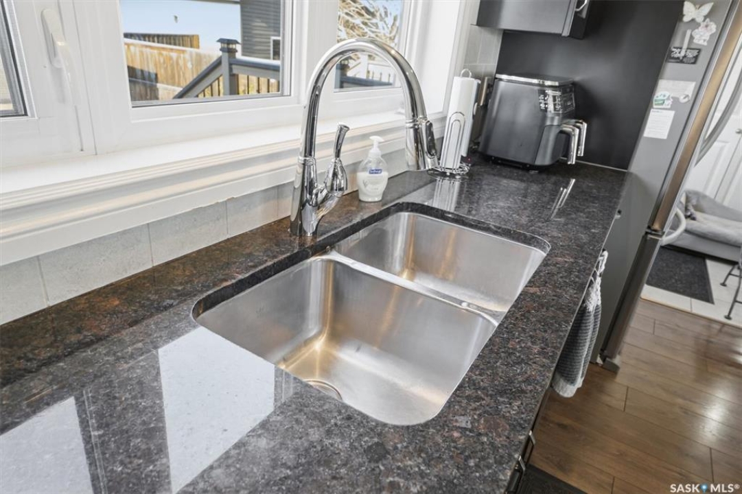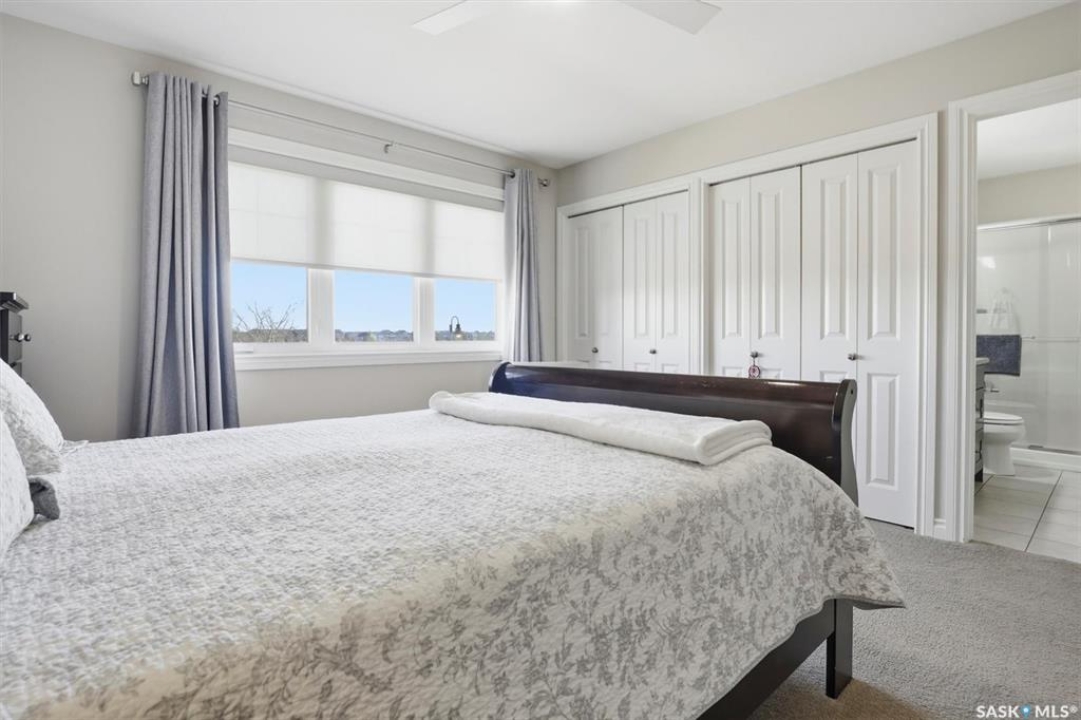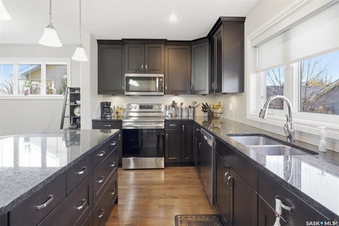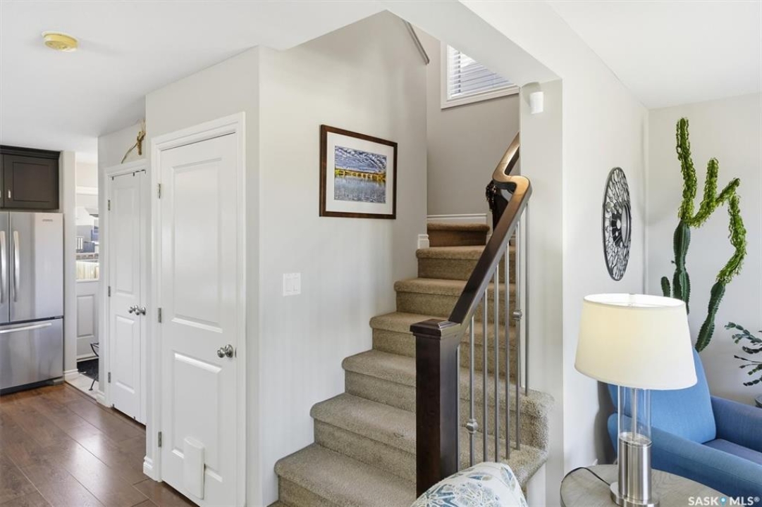 Open House this Saturday 1-3 PM. Amazing 1483 sqft two-storey home showcasing one of the smartest layouts and built by a highly reputable Saskatoon builder. Perfectly situated across from Stonebridge Park with breathtaking views of manicured green space will be sure to impress. Families will love the location—watch your children walk to nearby Public or Catholic elementary schools from the comfort of your living room. The main floor features private front and rear entries. The bright living room offers a large picture window with park views and flexible furniture placement. The open-concept dining and kitchen areas are thoughtfully designed with just the right amount of separation, creating a layout that's both functional and inviting. The kitchen boasts granite countertops, abundant prep space, a picture window overlooking the backyard, an island with pullout drawers, and a spacious pantry for convenience. A designated mudroom, set apart from the main living areas, and a tucked-away half bath demonstrate thoughtful planning throughout. Upstairs includes three bedrooms, two bathrooms, and a true second-floor laundry room—a must-have feature (washer/dryer). The primary suite faces the park, offering elevated green space views, double closets, and a 3-piece ensuite with a 5' walk-in shower, and additional 4-piece main bathroom The unfinished basement is ready for future development, with space for a family room, bedroom, bathroom, and plenty of storage. Meticulously maintained inside and out, the homeowners have transformed the yard into a private retreat. The 36-foot-wide lot includes a 3rd utility parking space beside the 22' x 24' detached garage, a screened pergola, paving stone walkways, underground sprinklers, and drip lines for perennials and shrubs, some privacy fencing for outdoor storage requirements. Additional highlights include A/C, stainless steel kitchen appliances, including a newer stove and microwave, gas line for bbq, and window treatments.