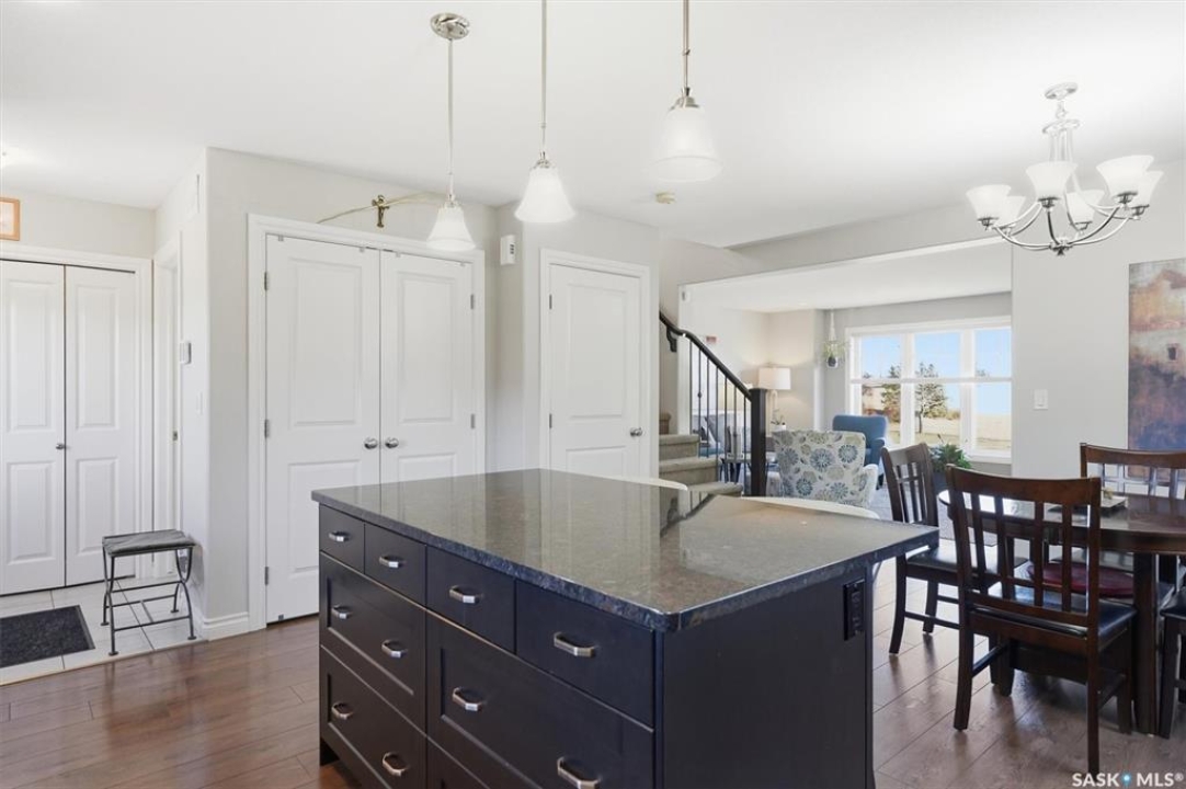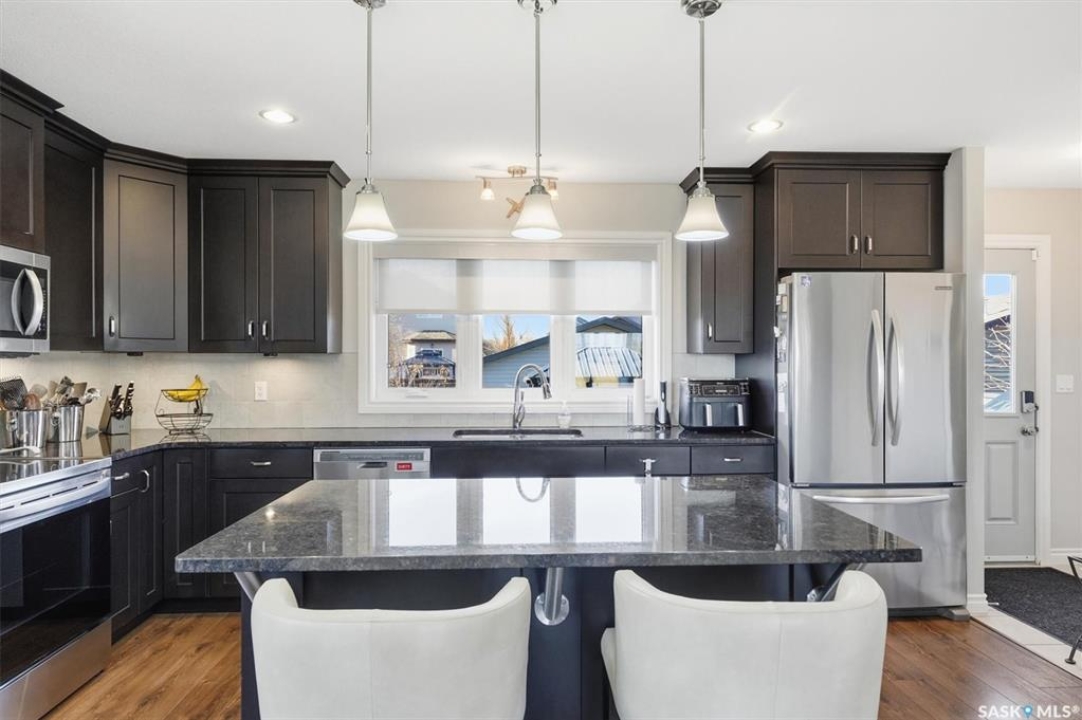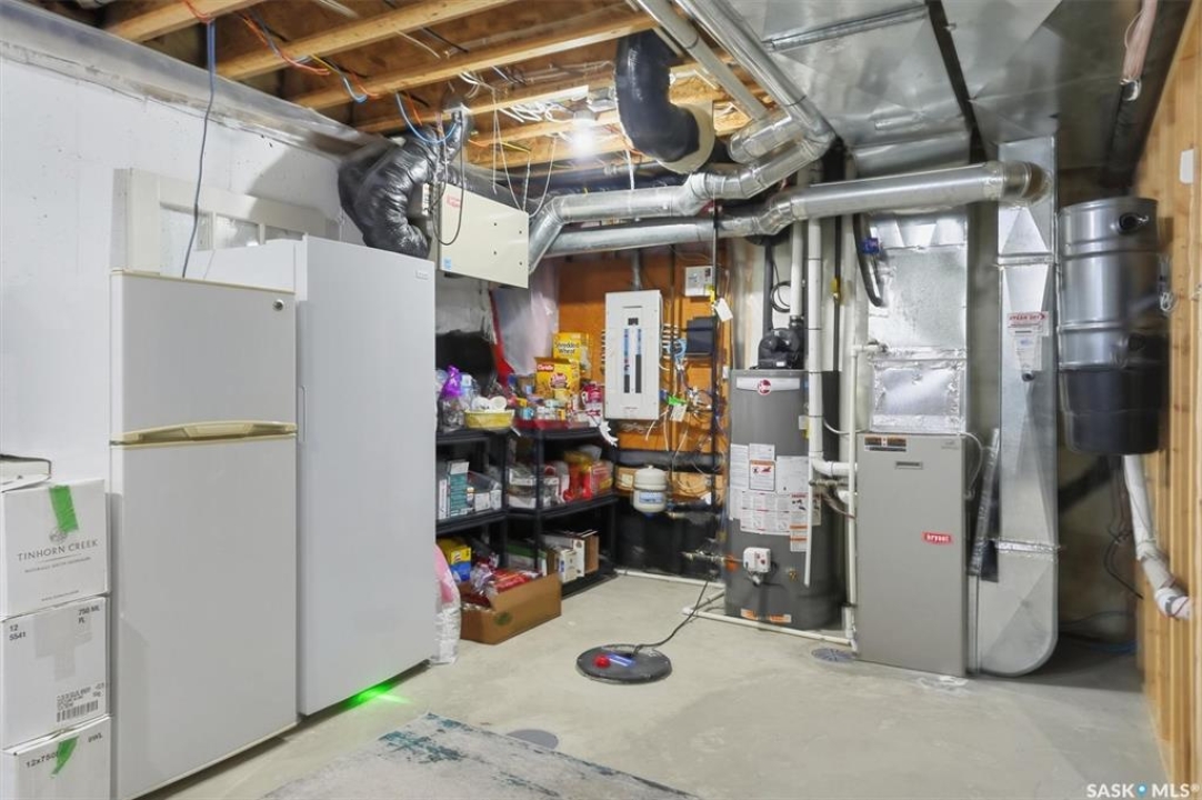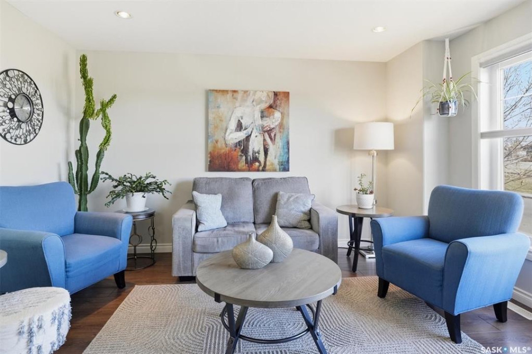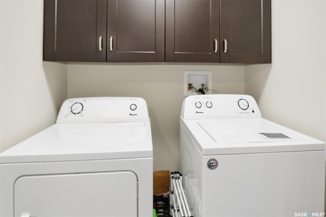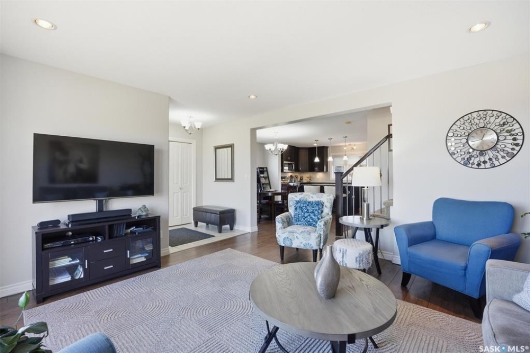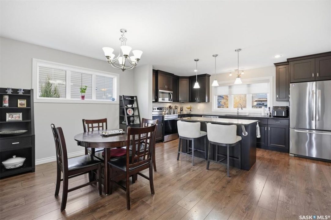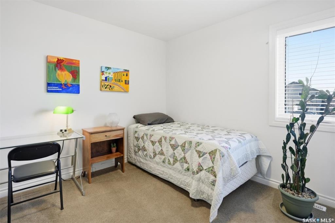 Open House this Saturday 1-3 PM. Amazing 1483 sqft two-storey home showcasing one of the smartest layouts and built by a highly reputable Saskatoon builder. Perfectly situated across from Stonebridge Park with breathtaking views of manicured green space will be sure to impress. Families will love the location—watch your children walk to nearby Public or Catholic elementary schools from the comfort of your living room. The main floor features private front and rear entries. The bright living room offers a large picture window with park views and flexible furniture placement. The open-concept dining and kitchen areas are thoughtfully designed with just the right amount of separation, creating a layout that's both functional and inviting. The kitchen boasts granite countertops, abundant prep space, a picture window overlooking the backyard, an island with pullout drawers, and a spacious pantry for convenience. A designated mudroom, set apart from the main living areas, and a tucked-away half bath demonstrate thoughtful planning throughout. Upstairs includes three bedrooms, two bathrooms, and a true second-floor laundry room—a must-have feature (washer/dryer). The primary suite faces the park, offering elevated green space views, double closets, and a 3-piece ensuite with a 5' walk-in shower, and additional 4-piece main bathroom The unfinished basement is ready for future development, with space for a family room, bedroom, bathroom, and plenty of storage. Meticulously maintained inside and out, the homeowners have transformed the yard into a private retreat. The 36-foot-wide lot includes a 3rd utility parking space beside the 22' x 24' detached garage, a screened pergola, paving stone walkways, underground sprinklers, and drip lines for perennials and shrubs, some privacy fencing for outdoor storage requirements. Additional highlights include A/C, stainless steel kitchen appliances, including a newer stove and microwave, gas line for bbq, and window treatments.