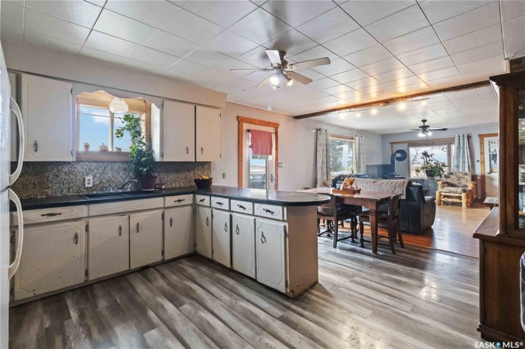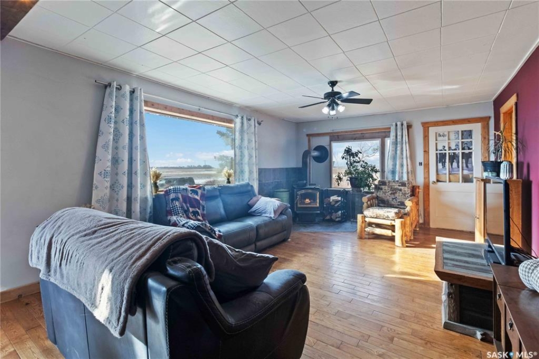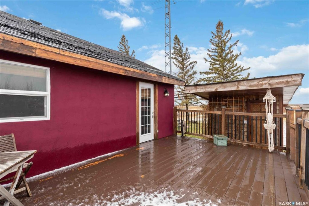 Fall in love with this sweet and welcoming farmhouse, perfectly situated just an hour from the city and only 12 km from local schools (on the bus route!). Enjoy peaceful mornings on the private deck off the main bedroom — the perfect spot for your coffee — complete with a walk-in closet and a spacious ensuite featuring a beautiful travertine stone floor and a classic clawfoot tub. This cozy home offers both character and comfort with a wood-burning stove and an additional electric fireplace in the second living area. Heating is electric and wood, giving you the best of both worlds. Outside, you'll find a large garden area ready for your green thumb, plus a chicken coop and shed for your hobby farm dreams. Conveniently located near the Co-op grocery store in Marcelin and close to Blaine Lake, this acreage offers the ideal blend of rural tranquility and nearby amenities.