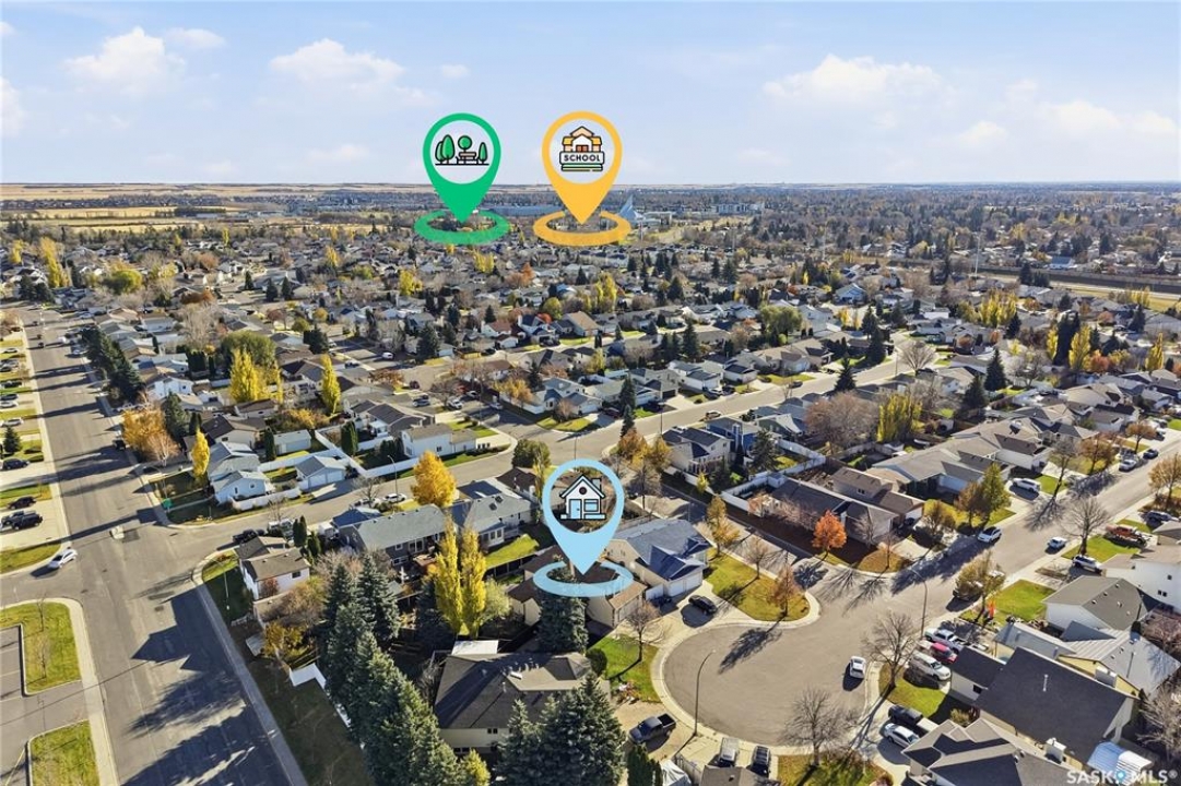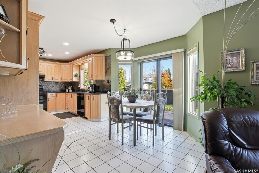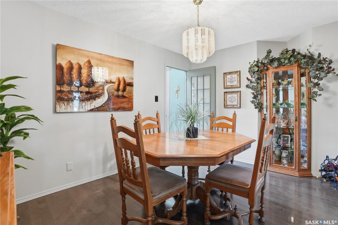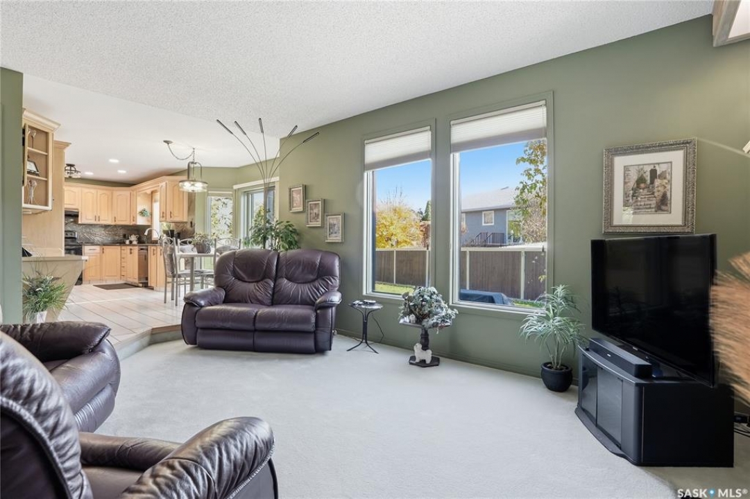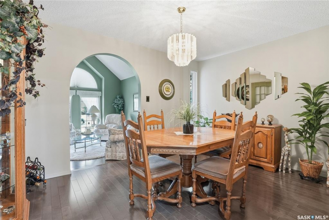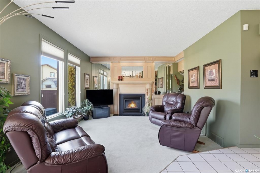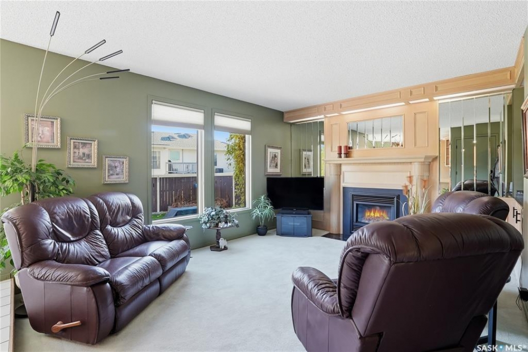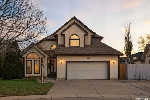 Welcome to 206 Haslam Court, a beautifully maintained two-storey home on a quiet Silverspring cul-de-sac. Strong rooflines, vaulted front windows and mature landscaping create standout curb appeal. With 2,036 square feet above grade plus a large, partially finished lower level, the plan delivers real family function with formal living and dining rooms, a bright family room with a gas fireplace, and a sunny breakfast nook that opens to the stamped concrete patio and private, treed yard. The kitchen offers solid wood cabinetry, updated counters and backsplash, and an efficient L-shaped layout with a peninsula for prep and seating. Upstairs are three comfortable bedrooms. The primary suite features a walk-in closet and a modern ensuite with double sinks and a custom tile shower. The basement is framed, insulated and wired, making it easy to finish a fourth bedroom, a gym or a theatre. Major work has already been done: new shingles in 2019, central air in 2019, gas fireplace in 2017, stamped patio in 2011, underground sprinklers in 2014, bedroom and main-floor hardwood upgrades in 2017 and 2021, and bathroom renovations in 2020 and 2025. The home also benefits from triple-pane windows with selective replacements, including the arched units in 2018. The oversized driveway and attached double garage offer excellent off-street parking on a 7,840 square foot lot. Silverspring is loved for its parks, paths, schools and quick access to the U of S, Preston Crossing and Circle Drive. This is a cared-for, well-located home with smart updates where it counts.