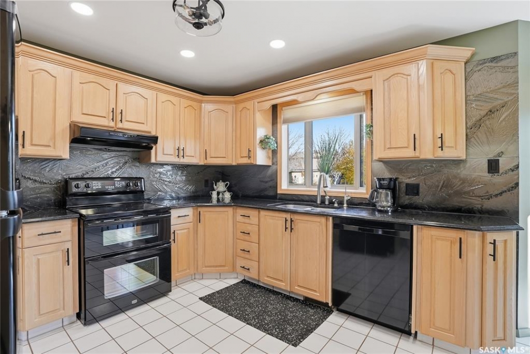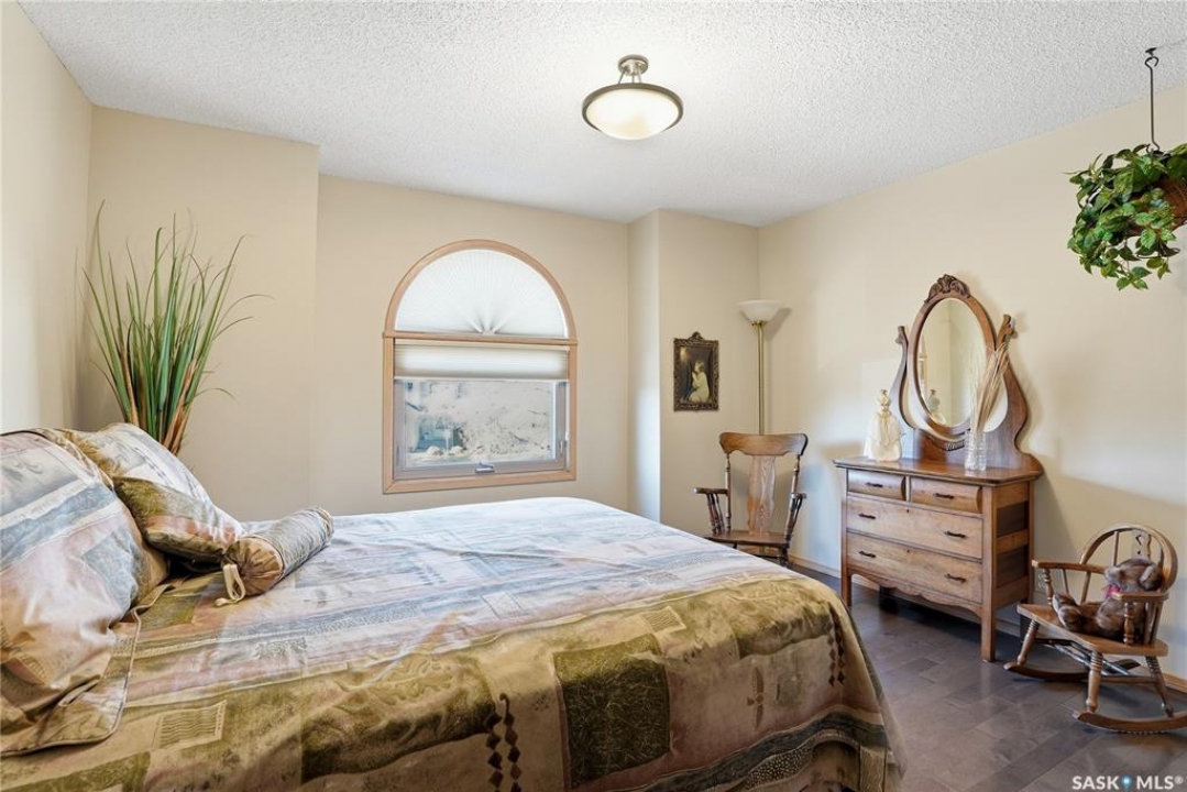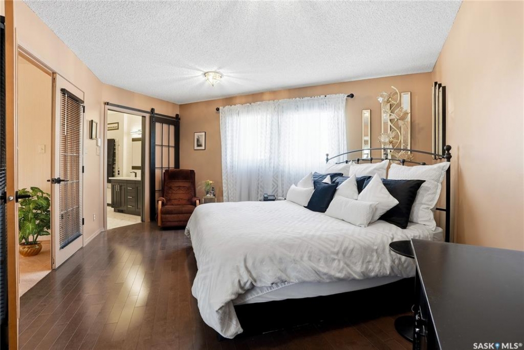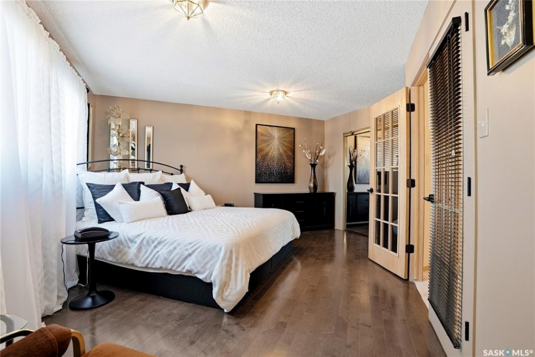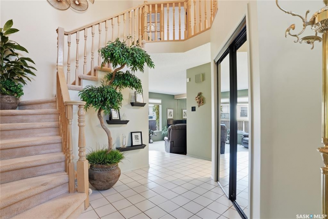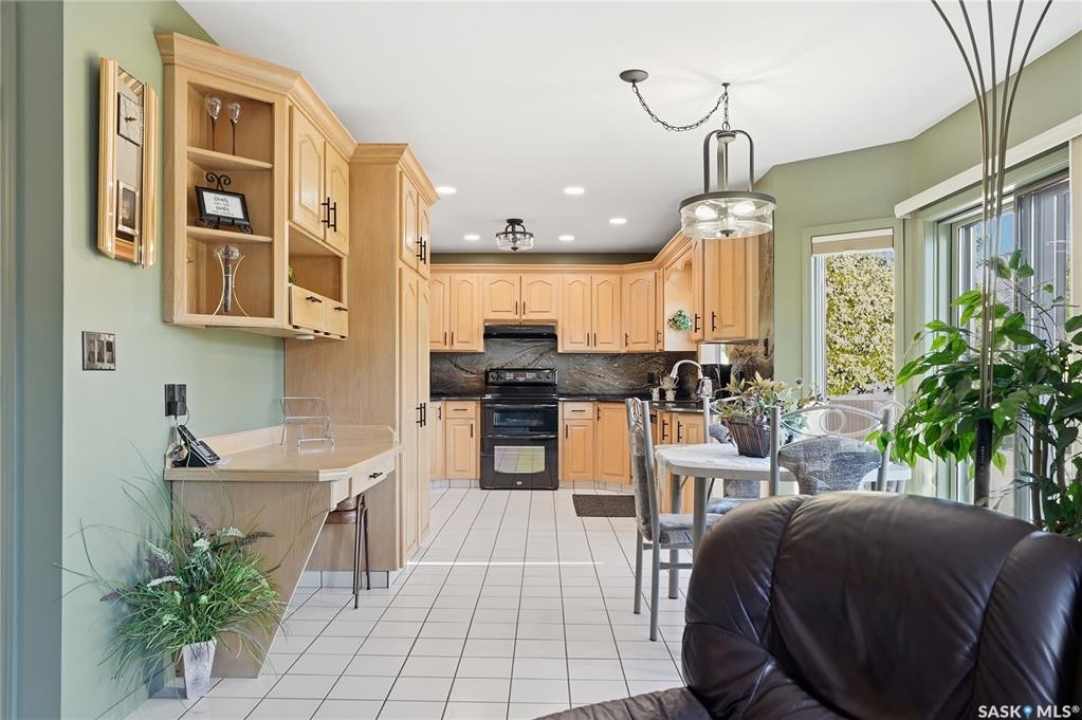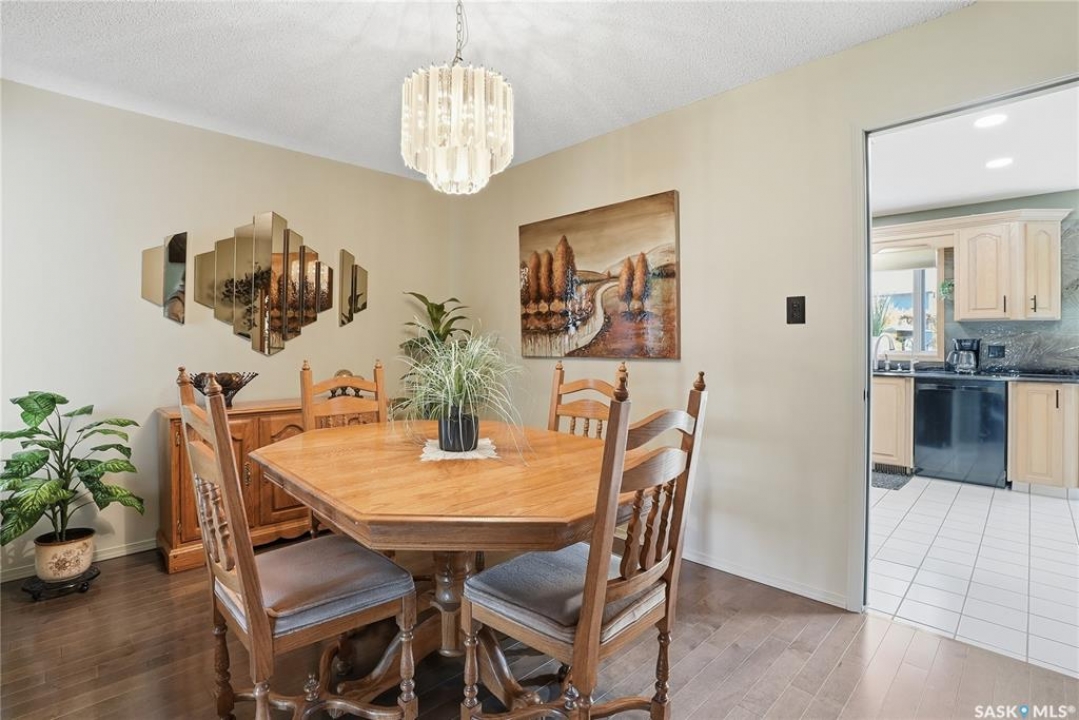 Welcome to 206 Haslam Court, a beautifully maintained two-storey home on a quiet Silverspring cul-de-sac. Strong rooflines, vaulted front windows and mature landscaping create standout curb appeal. With 2,036 square feet above grade plus a large, partially finished lower level, the plan delivers real family function with formal living and dining rooms, a bright family room with a gas fireplace, and a sunny breakfast nook that opens to the stamped concrete patio and private, treed yard. The kitchen offers solid wood cabinetry, updated counters and backsplash, and an efficient L-shaped layout with a peninsula for prep and seating. Upstairs are three comfortable bedrooms. The primary suite features a walk-in closet and a modern ensuite with double sinks and a custom tile shower. The basement is framed, insulated and wired, making it easy to finish a fourth bedroom, a gym or a theatre. Major work has already been done: new shingles in 2019, central air in 2019, gas fireplace in 2017, stamped patio in 2011, underground sprinklers in 2014, bedroom and main-floor hardwood upgrades in 2017 and 2021, and bathroom renovations in 2020 and 2025. The home also benefits from triple-pane windows with selective replacements, including the arched units in 2018. The oversized driveway and attached double garage offer excellent off-street parking on a 7,840 square foot lot. Silverspring is loved for its parks, paths, schools and quick access to the U of S, Preston Crossing and Circle Drive. This is a cared-for, well-located home with smart updates where it counts.