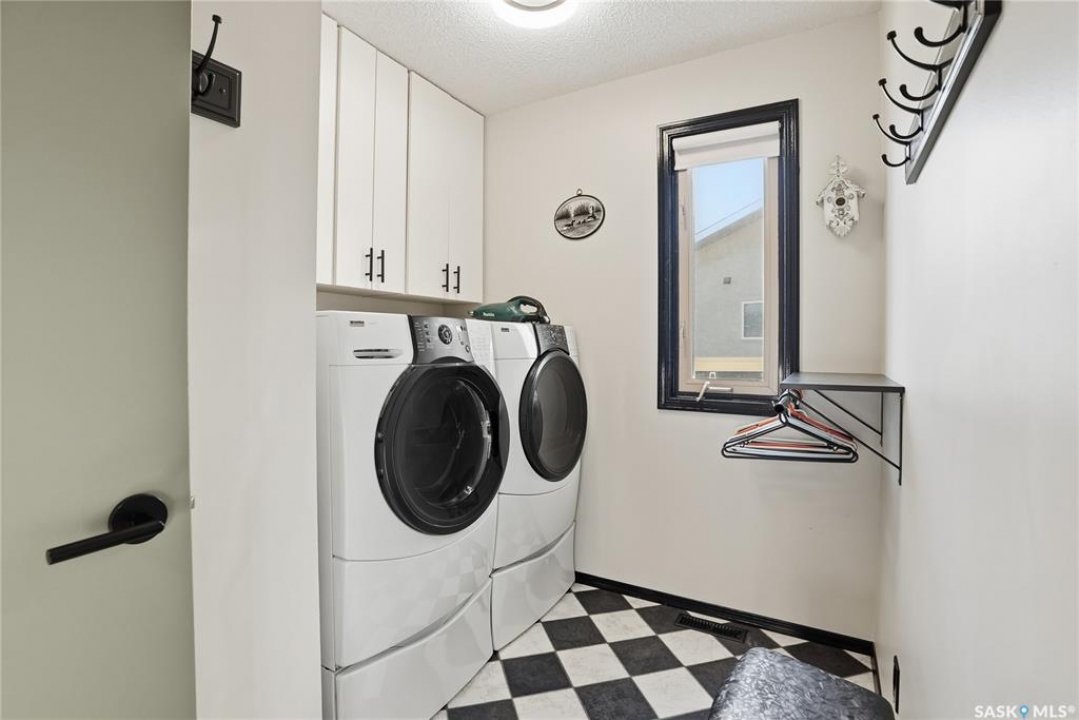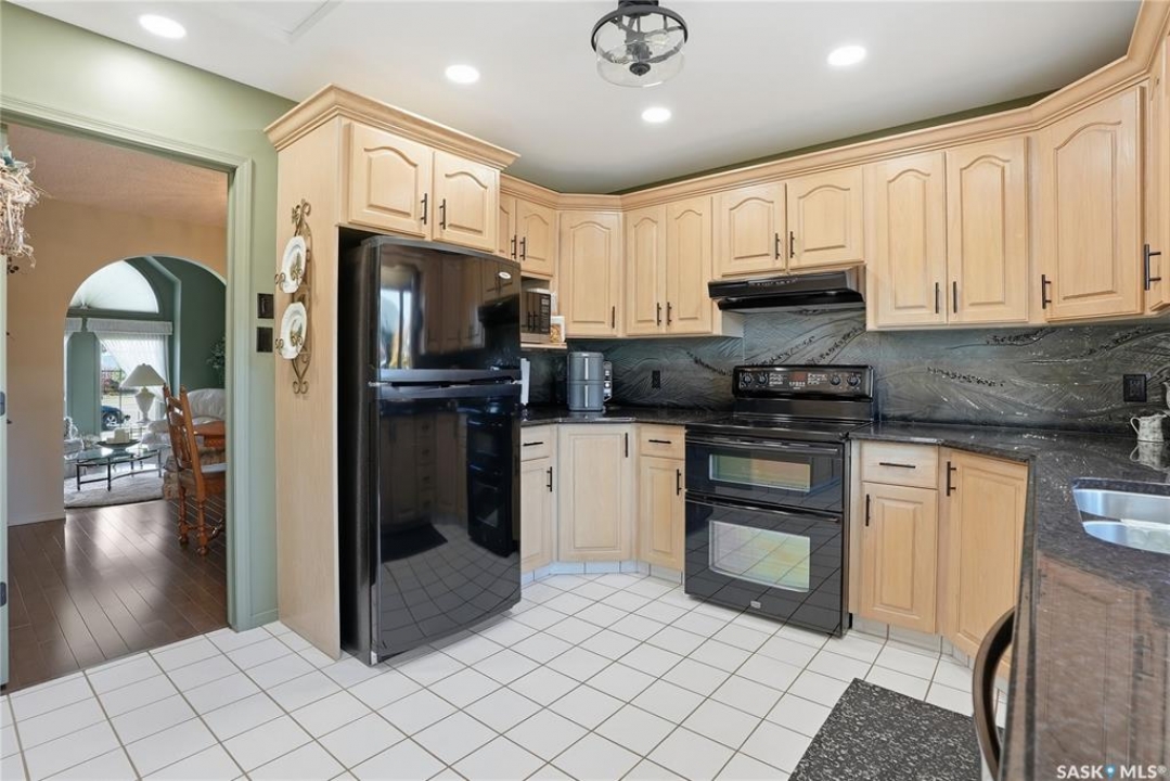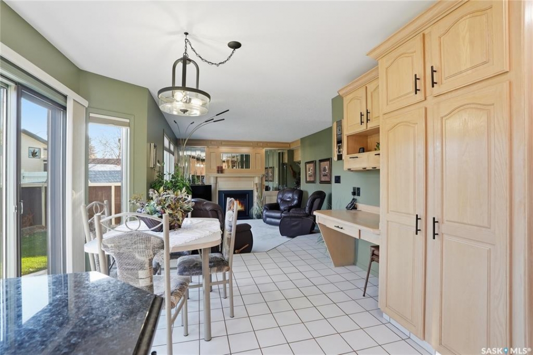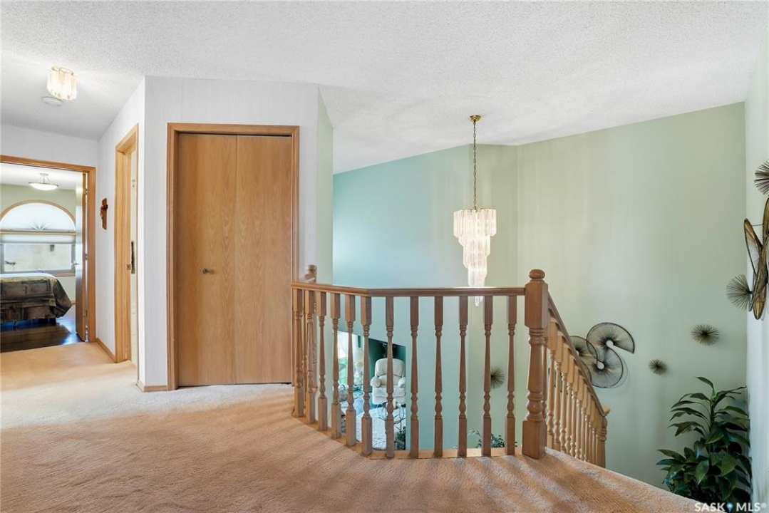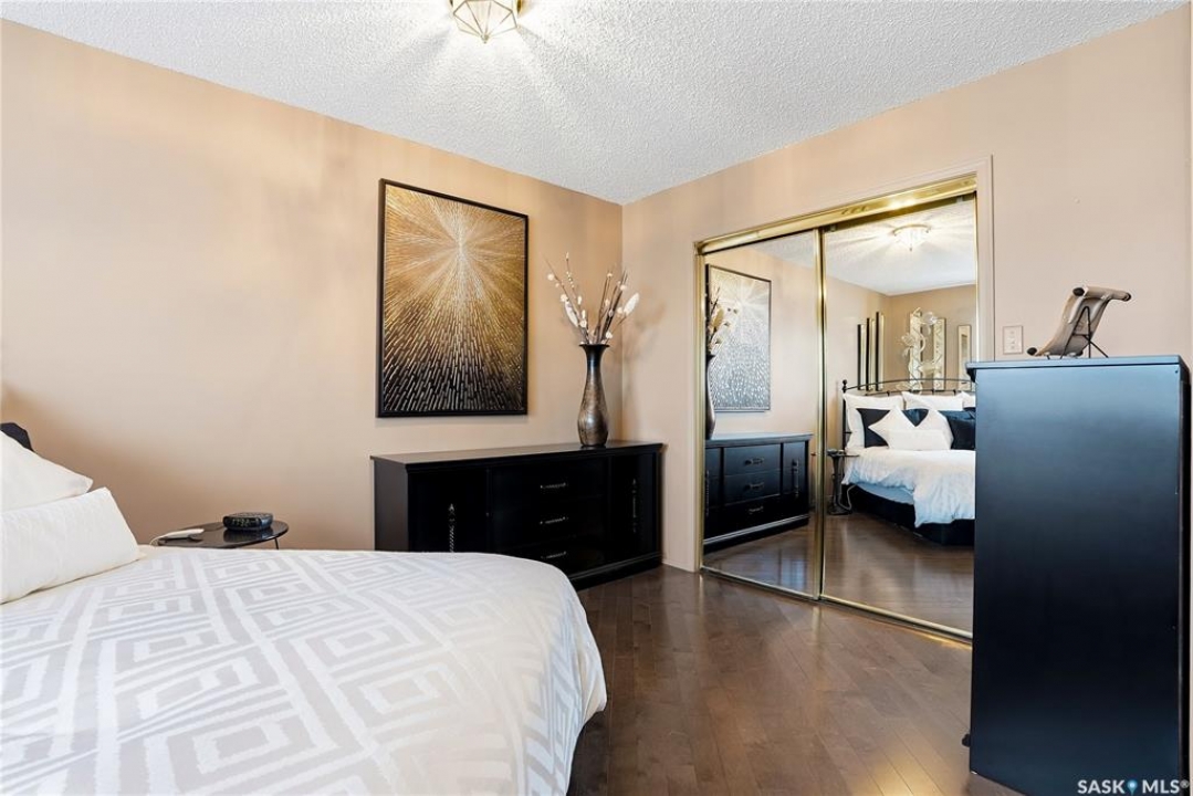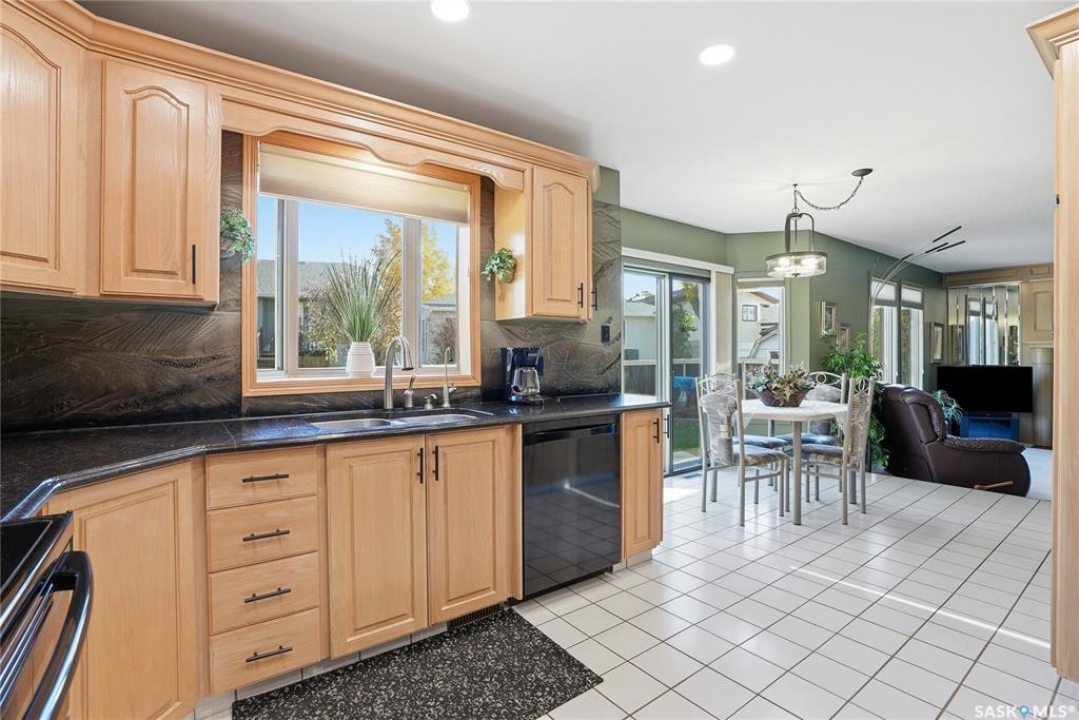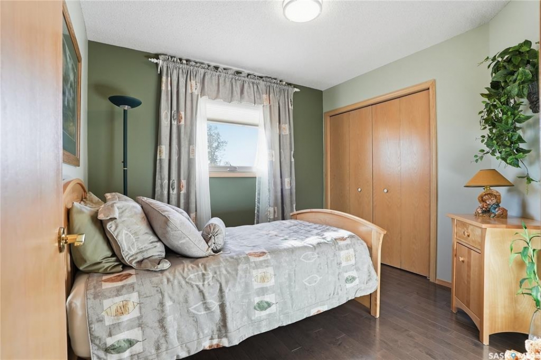 Welcome to 206 Haslam Court, a beautifully maintained two-storey home on a quiet Silverspring cul-de-sac. Strong rooflines, vaulted front windows and mature landscaping create standout curb appeal. With 2,036 square feet above grade plus a large, partially finished lower level, the plan delivers real family function with formal living and dining rooms, a bright family room with a gas fireplace, and a sunny breakfast nook that opens to the stamped concrete patio and private, treed yard. The kitchen offers solid wood cabinetry, updated counters and backsplash, and an efficient L-shaped layout with a peninsula for prep and seating. Upstairs are three comfortable bedrooms. The primary suite features a walk-in closet and a modern ensuite with double sinks and a custom tile shower. The basement is framed, insulated and wired, making it easy to finish a fourth bedroom, a gym or a theatre. Major work has already been done: new shingles in 2019, central air in 2019, gas fireplace in 2017, stamped patio in 2011, underground sprinklers in 2014, bedroom and main-floor hardwood upgrades in 2017 and 2021, and bathroom renovations in 2020 and 2025. The home also benefits from triple-pane windows with selective replacements, including the arched units in 2018. The oversized driveway and attached double garage offer excellent off-street parking on a 7,840 square foot lot. Silverspring is loved for its parks, paths, schools and quick access to the U of S, Preston Crossing and Circle Drive. This is a cared-for, well-located home with smart updates where it counts.