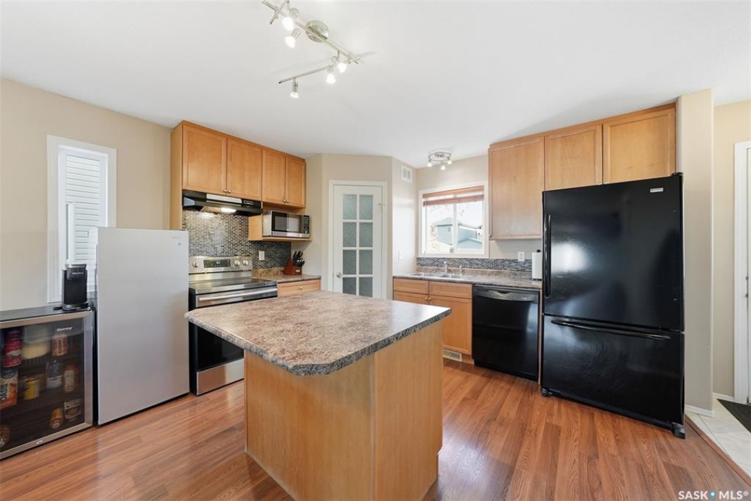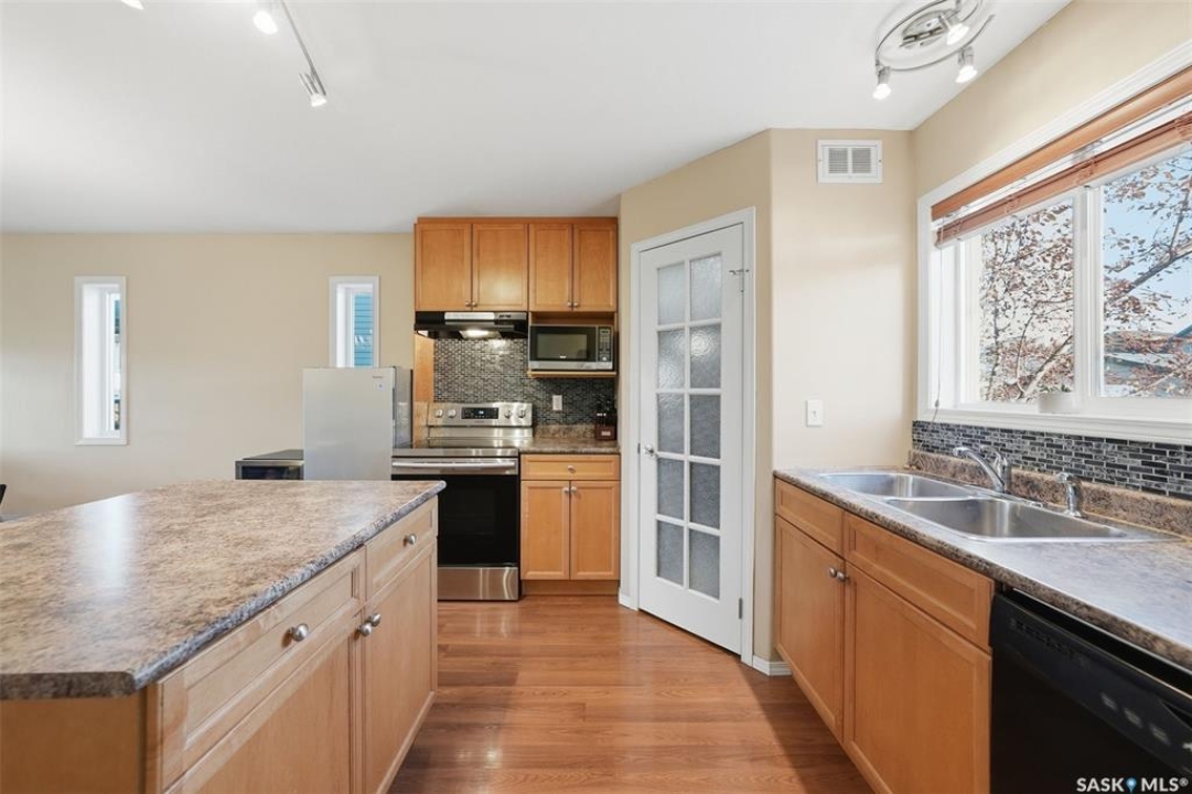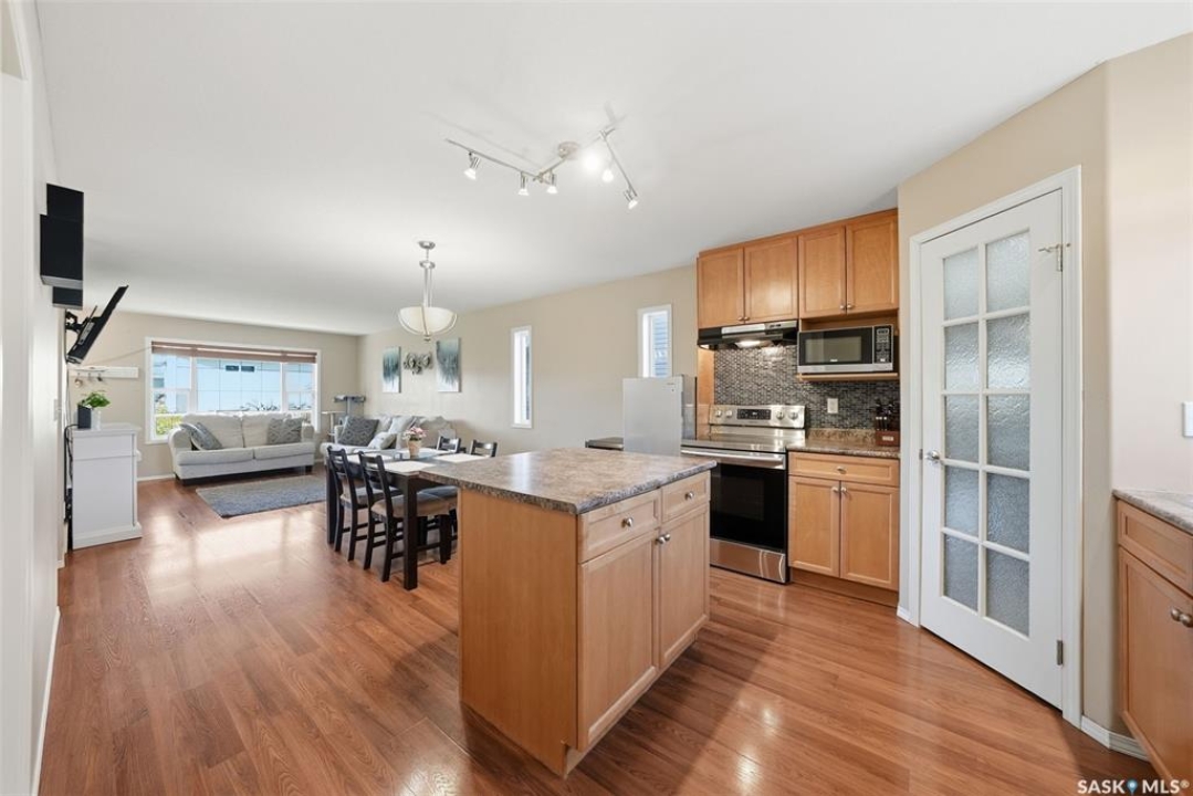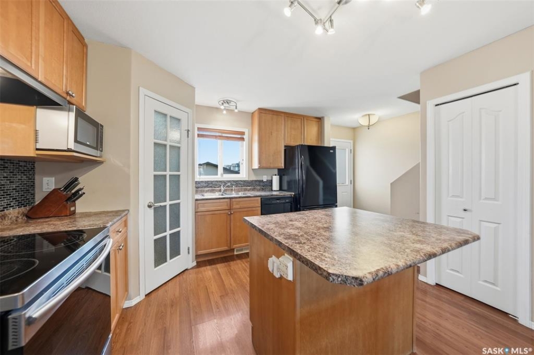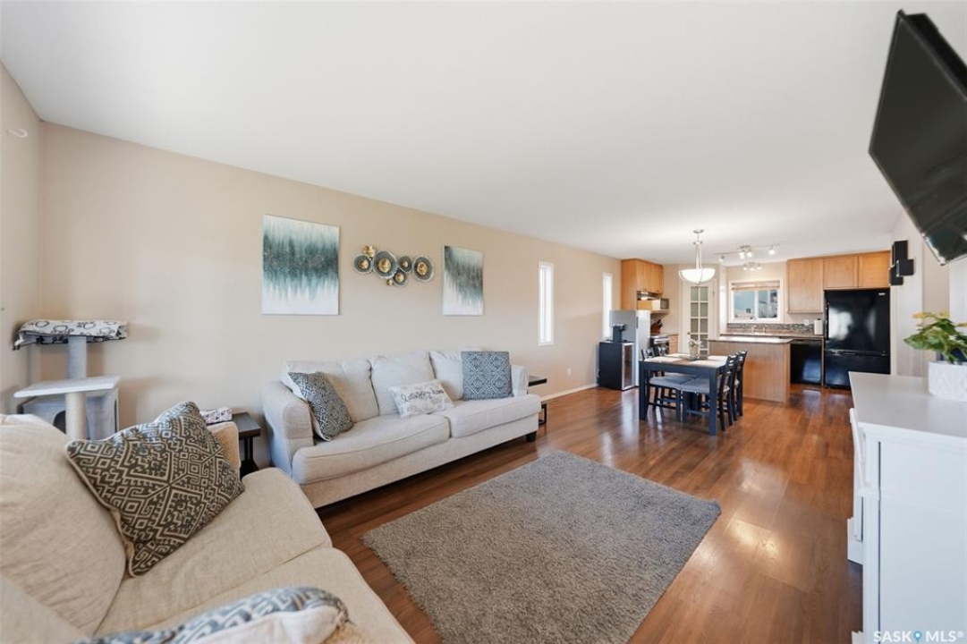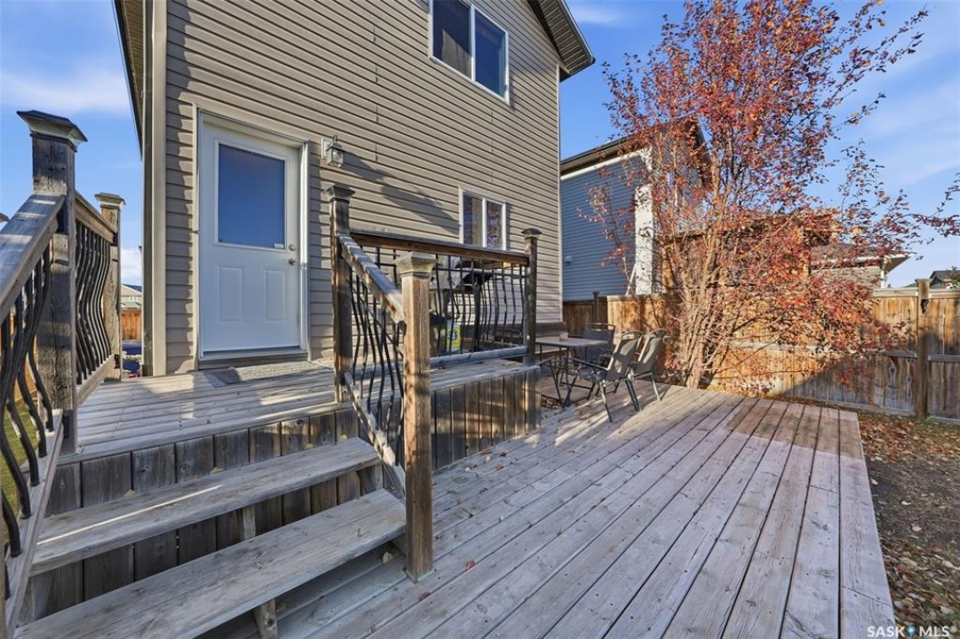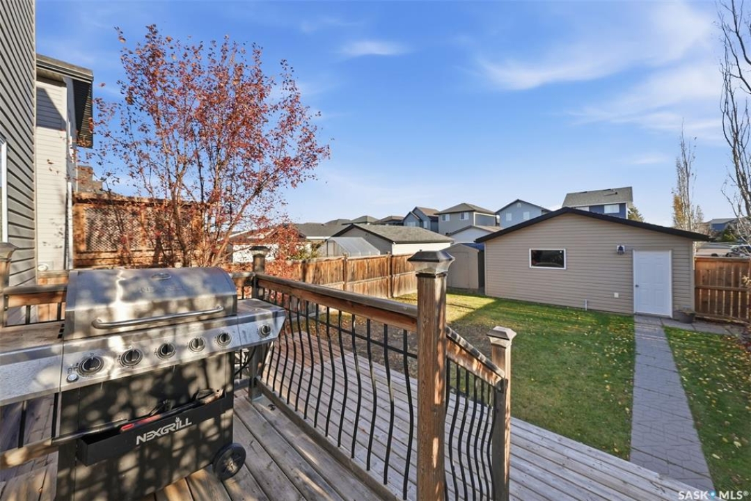 Located in the heart of Willowgrove, this well kept two storey offers a functional layout designed for comfortable family living. The main floor features an open concept kitchen, dining, and living area with great natural light and an easy flow for everyday life. A convenient two piece bathroom completes this level. Upstairs are three spacious bedrooms, including a primary suite with a good size walk-in closet. The basement is fully finished, offering a cozy family room, a fourth bedroom, a four piece bathroom, and laundry, complete with a new washer and dryer. Situated on a corner lot, the property provides excellent street parking, a generous yard, and a double detached garage with additional parking beside it. The backyard features a well-built two tier deck, ideal for outdoor dining and summer gatherings. Just a short walk to schools, parks, and nearby amenities, this home offers a strong blend of comfort, practicality, and location in one of Saskatoon's most desirable neighbourhoods.