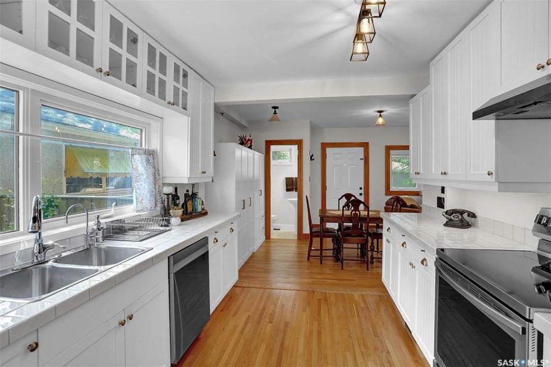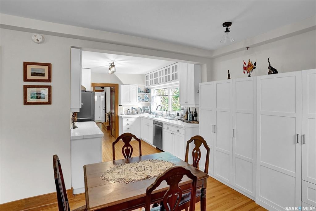 Welcome to 2721 Hill Ave. located in the heart of the desirable neighbourhood of Lakeview. This beautiful 3 bed, 2 bath 2 story home is a short walk to the Hill Ave shops and amenities, as well as Wascana Park, MacKenzie Art Gallery, close to downtown, and all south end amenities. You will appreciate the original character, charm and warmth of the home as well as the modern updates that have been incorporated. Recent upgrades and improvements include new HE furnace, exterior maintenance free stuccoon house and garage, fascia, eaves and leaf guards, exterior metal doors, architectural shingles, PVC windows, new landscaping including grading, sidewalks/concrete work, fence and patio deck. Lovely front foyer welcomes you as you enter the home. Gorgeous living room with brick wood fireplace (seller has never used) and original oak hardwood floors. Updated kitchen offers lots of white cabinetry, spacious countertops and an eating nook. Large windows are an added bonus! Formal dining room is the perfect place to enjoy a family dinner or host a dinner party. Flex room off the dining room/kitchen can serve as a home office space, TV room, reading room, or kids play area. Convenient 2 piece powder room completes the main level. Upstairs is the spacious primary bedroom featuring ample closet space, two additional bedrooms all with hardwood floors, and an updated 4 piece bath. Functional basement is partially developed with a rec room, utility/laundry room with storage space. Beautiful fenced and landscaped yard features a large patio deck. Great spot to enjoy a BBQ or evening fire. Double detached garage with lane access is another added bonus! This property has been very well cared for, and is a true pleasure to show. If you are looking for a character home with some modern updates in a fantastic location, this might be the one!