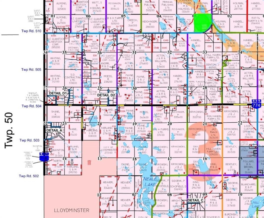 Lloydminster 150 acres Grain Farmland (Limin) Legal Land Description: SE 3-51-27 W3 Surface Parcel: 130573920 RM: Britannia No. 502 Property Description Prime location just minutes from Lloydminster! Situated only 4 miles north and 4.5 miles east of the city, this 150-acre parcel offers an excellent blend of convenience, productivity, and investment potential. Access is superb via Township Road 510, which borders the south and east sides and curves around the southeast corner for easy year-round entry. The property features productive Waseca loam to light loam soils in the Black soil zone, with a weighted average soil final rating of 61.7. According to SAMA, approximately 69 cultivated/arable acres are higher-quality loam (rating ~69), and another 28 cultivated/arable acres are level, lower-lying ground (rating ~57). It is estimated that approximately 42 arable acres currently in hay (and some of the pasture acres) could be converted back to grain production. The balance includes approximately 26 acres of pasture and 21 acres of bush/wetland, adding ecological and aesthetic diversity. An inactive surface lease with Cenovus provides approximately $2,200 annually in supplementary income. SAMA Information 144 total acres 55 cultivated acres 42 arable hay/grass acres 26 pasture acres (some are arable) 21 wetland/bush acres $285,600 total 2025 assessed value (AV) $317,333 average assessment per 160 acres 61.7 soil final rating (weighted average) $650,000 Farmland Price $4,329 per title acre (ISC) 2.28 times the 2025 assessed value (P/AV multiple) Driving Directions: Travel north of Lloydminster on Hwy #17 (approx. 6.6 km), then east on Township Rd 510 for ~6.8 km. Property is located on the north (left) side of the road.