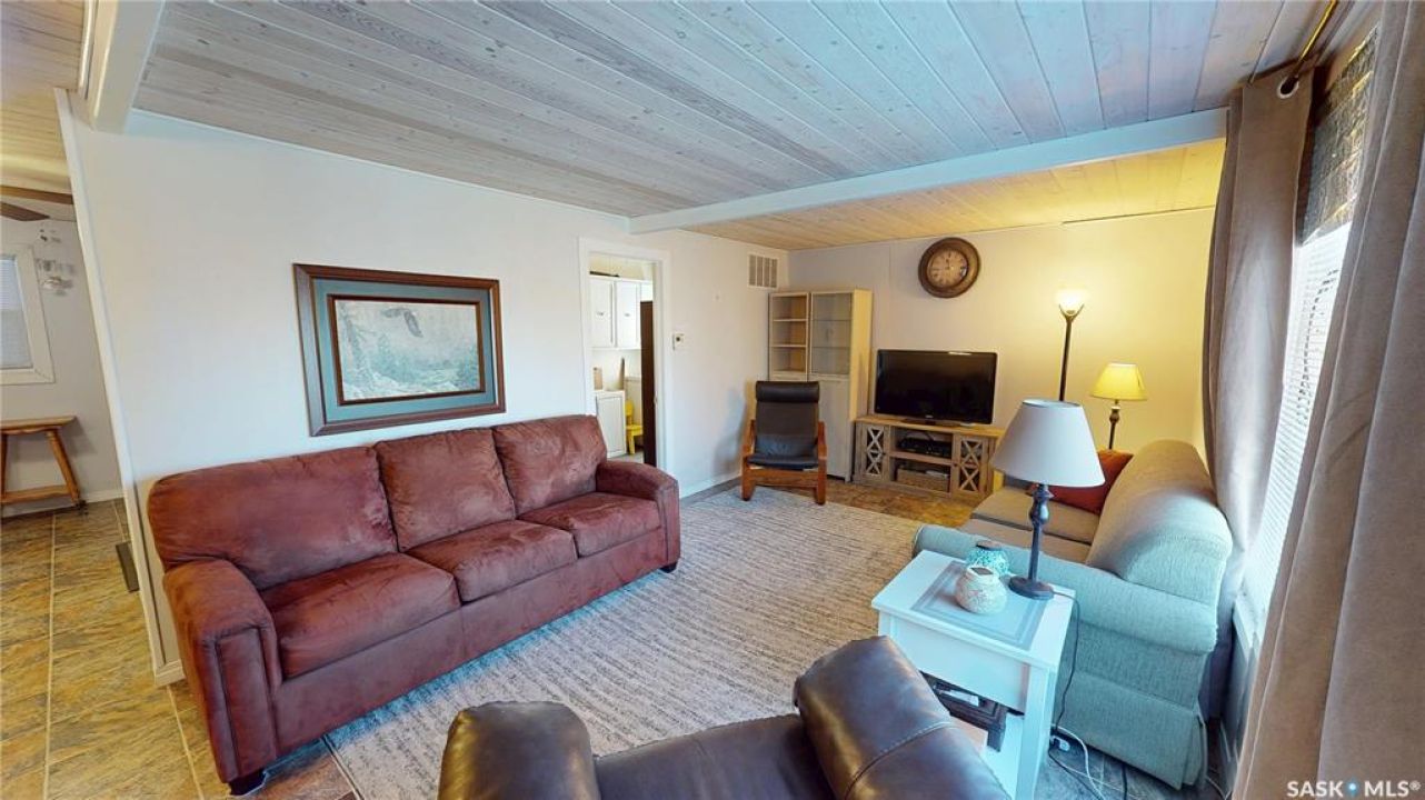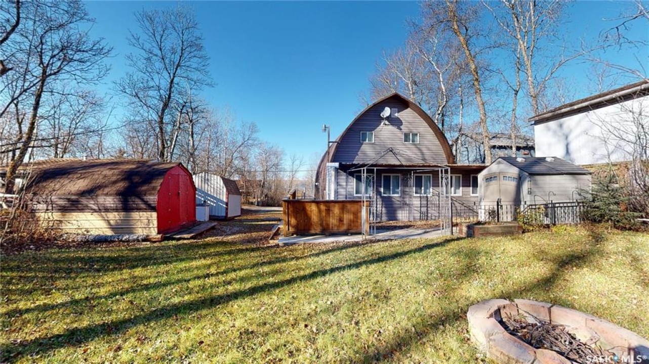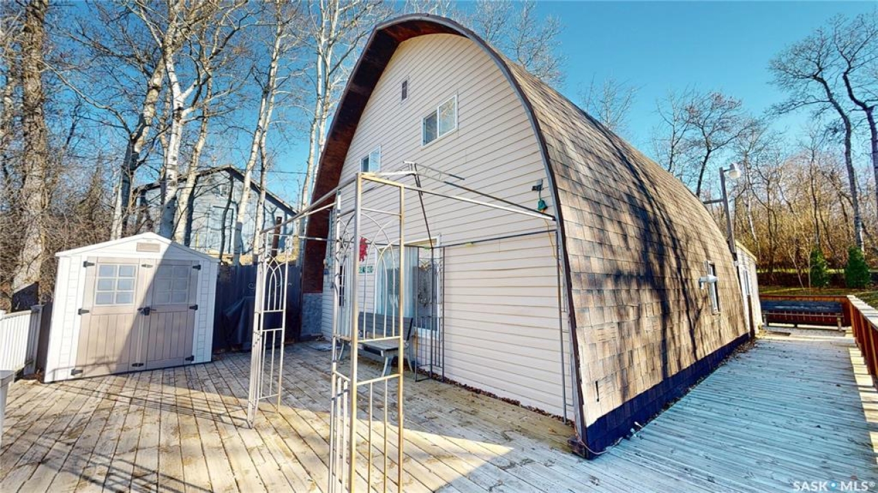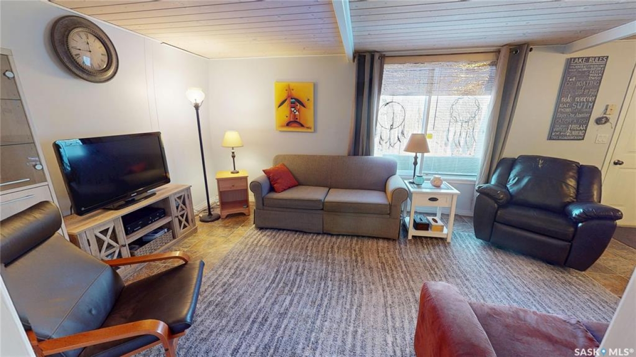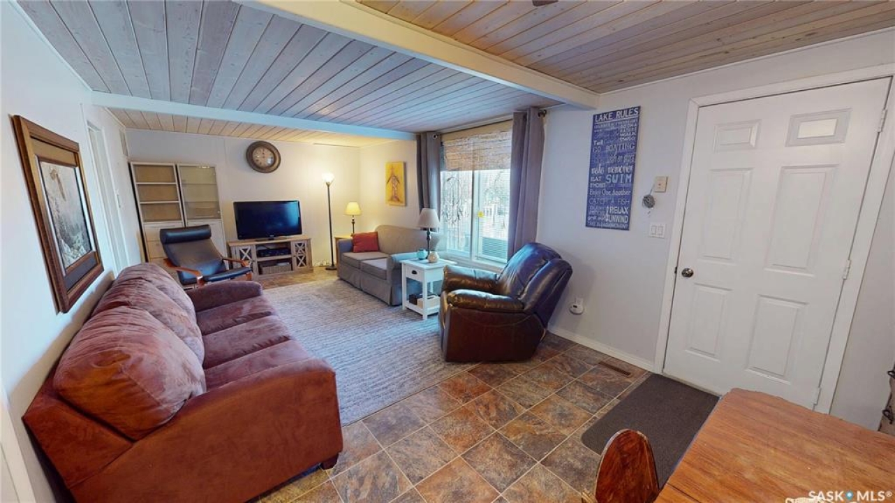 Enjoy Lake Living in this spacious year round property offering over 1100 Sq Ft of comfortable living space across two levels - plus a 220 sq.ft. Sunroom Addition surrounded by a wraparound deck on three sides. Build around 1980, this cabin has been well cared for with updated to Vinyl Siding and Shingles adding to its lasting appeal. Inside, you will find a warm and inviting interior with updated flooring, pine accent walls and ceilings creating a cozy cabin atmosphere. This home offers three good sized bedrooms each with either a walk-in closet or storage area. BONUS of TWO BATHROOMS - one on Main Floor with Tub/shower and a 2nd level large bathroom with build-in shower and large counter. Equipped for year-round use, the property features a gas furnace, central air conditioning and a crawlspace with 6 inch insulated skirting. Appliances are included and most of the furnishings remain (excluding antique pieces) making this an easy move-in opportunity. Outside, you will find four storage sheds, a nicely treed and open back yard with fire pit, plenty of parking and room for a camper/boat all just a very short walking distance to the lake. Whether you are looking for a relaxing family getaway or a full-time lakeside home, this White Bear Lake Resort property offers space, comfort, and charm in a beautiful natural setting. Call realtor for details or check out the immersive 3D Matterport Tour on this listing.