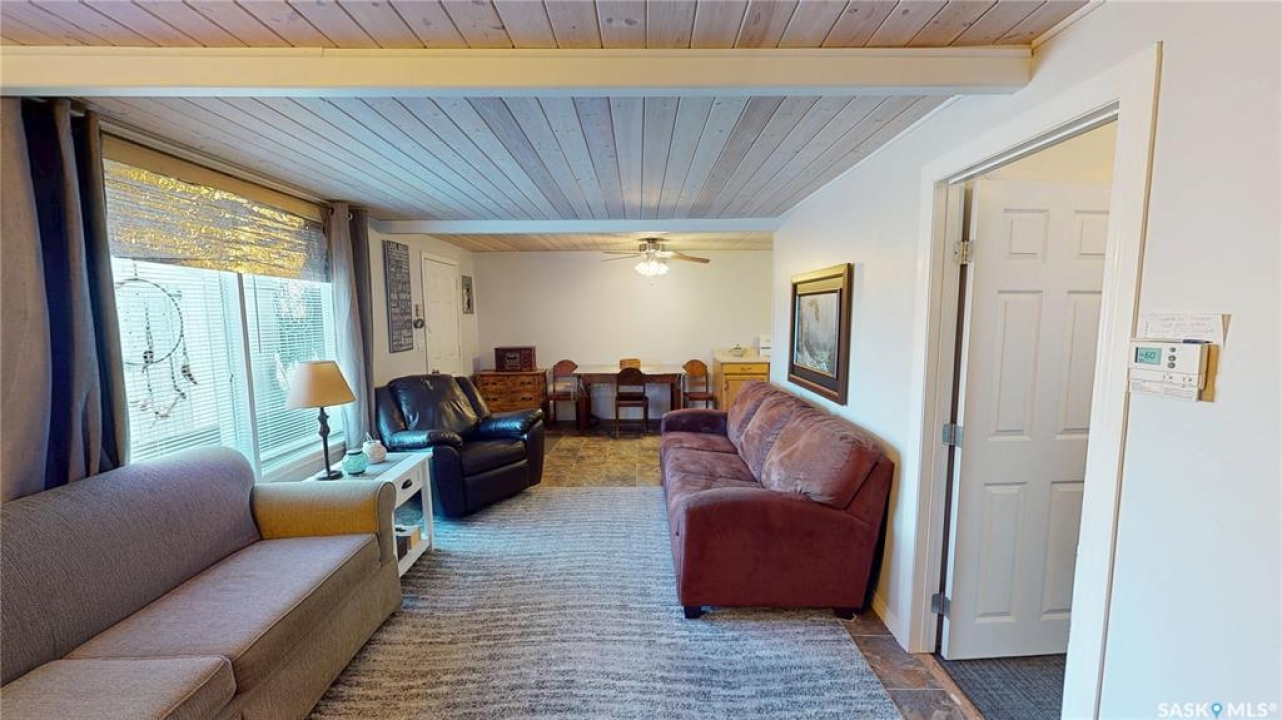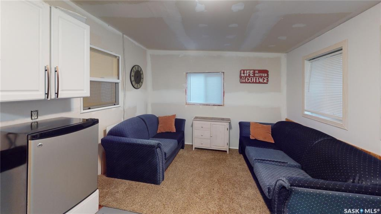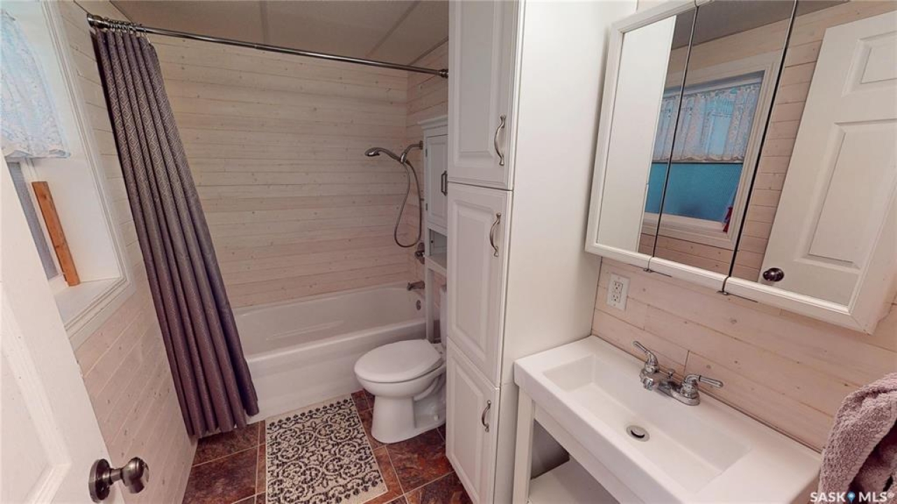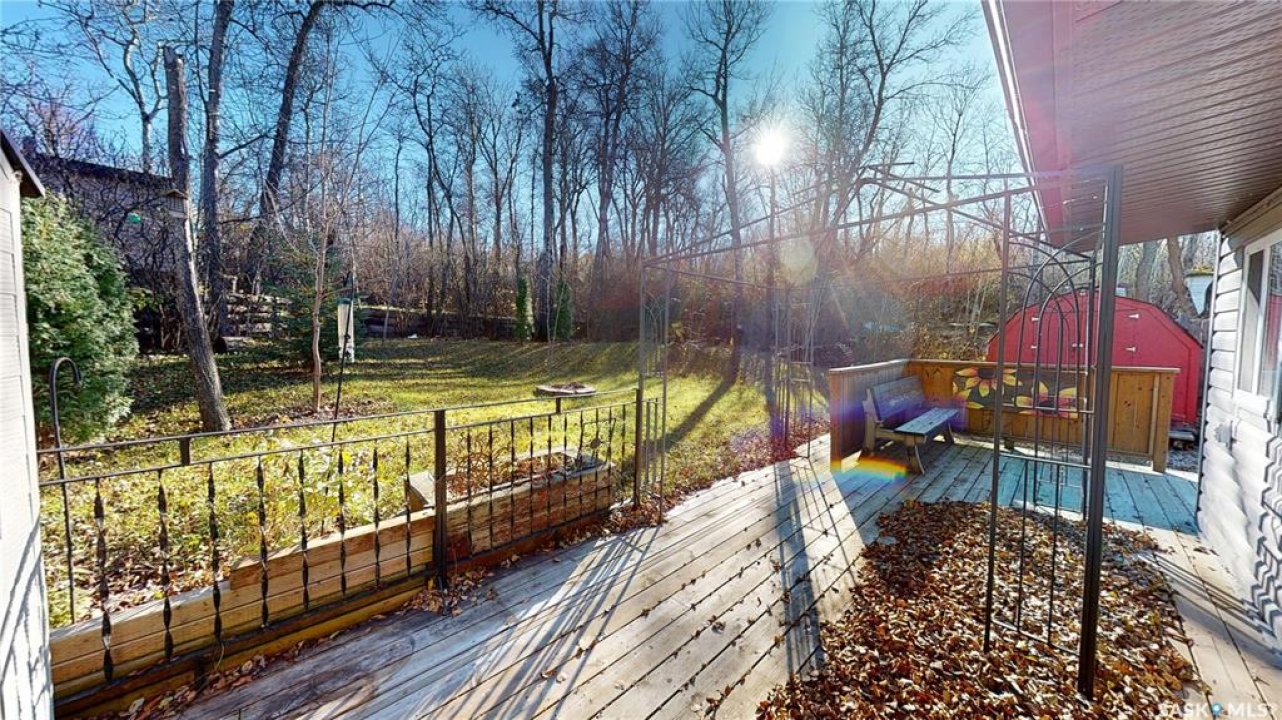 Enjoy Lake Living in this spacious year round property offering over 1100 Sq Ft of comfortable living space across two levels - plus a 220 sq.ft. Sunroom Addition surrounded by a wraparound deck on three sides. Build around 1980, this cabin has been well cared for with updated to Vinyl Siding and Shingles adding to its lasting appeal. Inside, you will find a warm and inviting interior with updated flooring, pine accent walls and ceilings creating a cozy cabin atmosphere. This home offers three good sized bedrooms each with either a walk-in closet or storage area. BONUS of TWO BATHROOMS - one on Main Floor with Tub/shower and a 2nd level large bathroom with build-in shower and large counter. Equipped for year-round use, the property features a gas furnace, central air conditioning and a crawlspace with 6 inch insulated skirting. Appliances are included and most of the furnishings remain (excluding antique pieces) making this an easy move-in opportunity. Outside, you will find four storage sheds, a nicely treed and open back yard with fire pit, plenty of parking and room for a camper/boat all just a very short walking distance to the lake. Whether you are looking for a relaxing family getaway or a full-time lakeside home, this White Bear Lake Resort property offers space, comfort, and charm in a beautiful natural setting. Call realtor for details or check out the immersive 3D Matterport Tour on this listing.