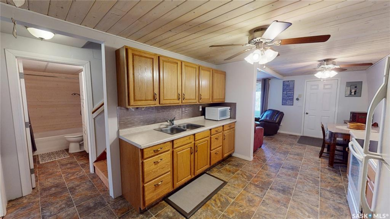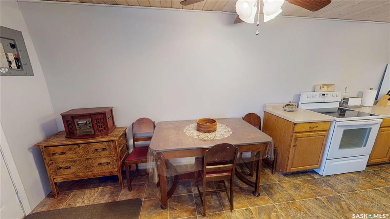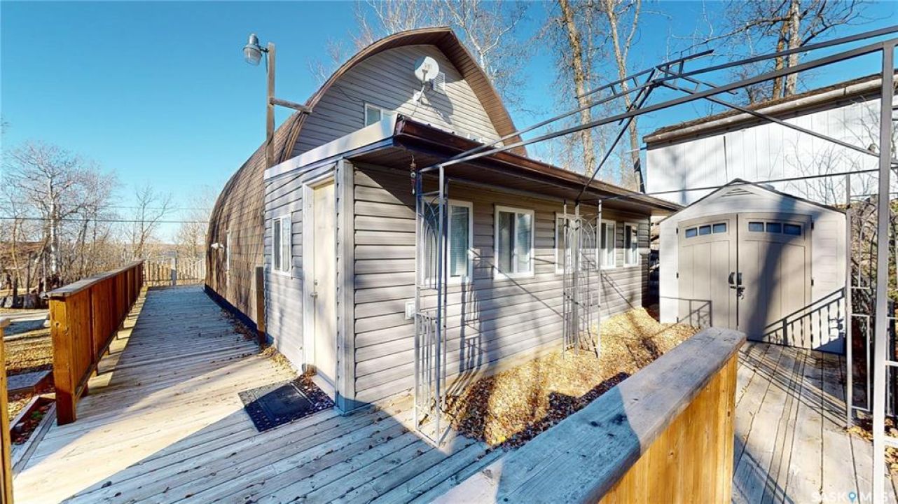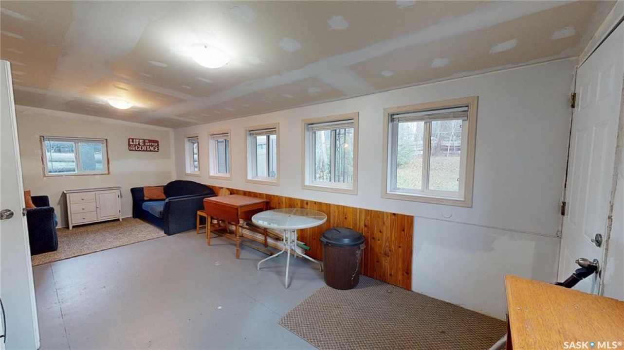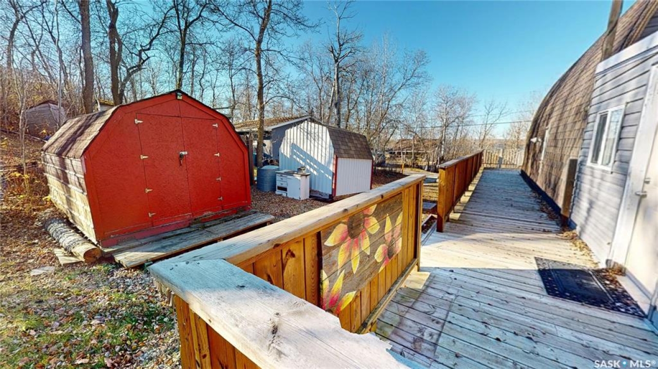 Enjoy Lake Living in this spacious year round property offering over 1100 Sq Ft of comfortable living space across two levels - plus a 220 sq.ft. Sunroom Addition surrounded by a wraparound deck on three sides. Build around 1980, this cabin has been well cared for with updated to Vinyl Siding and Shingles adding to its lasting appeal. Inside, you will find a warm and inviting interior with updated flooring, pine accent walls and ceilings creating a cozy cabin atmosphere. This home offers three good sized bedrooms each with either a walk-in closet or storage area. BONUS of TWO BATHROOMS - one on Main Floor with Tub/shower and a 2nd level large bathroom with build-in shower and large counter. Equipped for year-round use, the property features a gas furnace, central air conditioning and a crawlspace with 6 inch insulated skirting. Appliances are included and most of the furnishings remain (excluding antique pieces) making this an easy move-in opportunity. Outside, you will find four storage sheds, a nicely treed and open back yard with fire pit, plenty of parking and room for a camper/boat all just a very short walking distance to the lake. Whether you are looking for a relaxing family getaway or a full-time lakeside home, this White Bear Lake Resort property offers space, comfort, and charm in a beautiful natural setting. Call realtor for details or check out the immersive 3D Matterport Tour on this listing.
