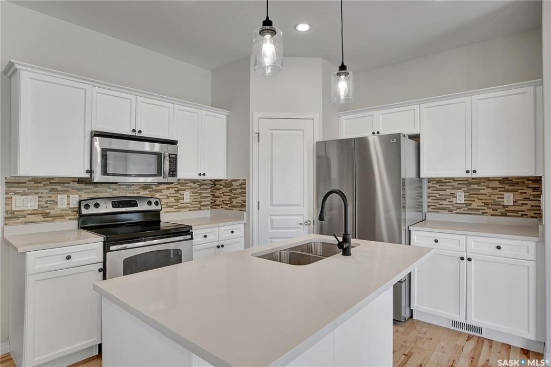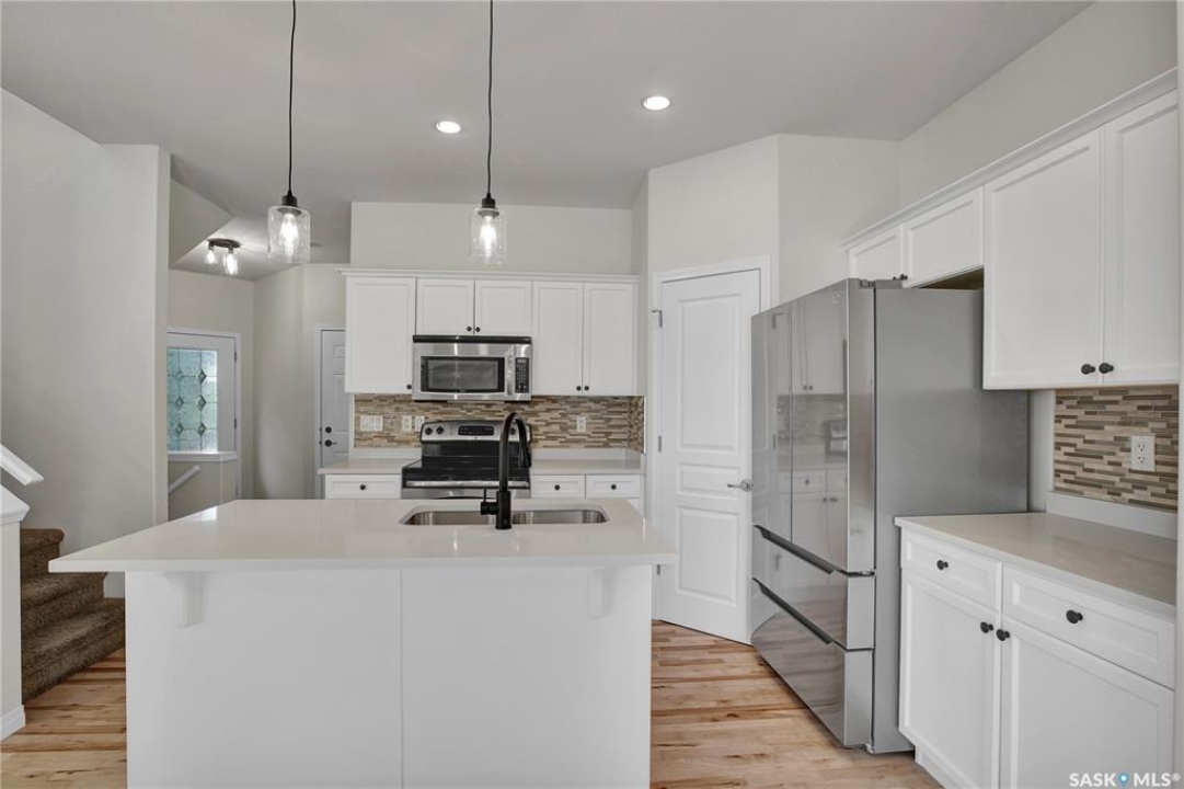 Welcome to this extensively upgraded 1573 sq. ft. luxurious home nestled on a quiet, family-friendly street in the popular Stonebridge. Recent upgrades include quartz countertops, new oversized decking, new deck railings, fresh paint throughout, new light fixtures throughout, refinished hardwood floors, updated baseboards, new faucets throughout, metal decorative registers, new lock-sets, new cabinet finishings throughout, regraded landscaping, and a painted garage interior. Built in 2010, this two storey sits on a generous 3757 sq. ft. rectangular lot. Step inside to a bright open-concept main floor with a soft and inviting colour palette features gorgeous wood floors, a spacious living/dining combo area, and a stylish kitchen with solid wood cabinets and stainless-steel appliances. Convenient main floor laundry adds everyday ease for the homemaker of the house. Upstairs, you'll find an oversized family room—perfect for movie nights, a playroom, or a home office—along with a private primary suite featuring a walk-in closet and a 3-piece ensuite. The two adjoining second floor bedrooms and main 4-piece bathroom are proportionately sized for overall comfort. The basement is ready for your personal touch, offering endless potential for additional living space for the growing family and equitable growth. Outside, enjoy a fully fenced backyard, complete with a massive deck for entertaining and full landscaping, ideal for summer BBQ's or letting kids play safely. The carpets were just professionally shampooed, too! With nearby amenities and schools just minutes away, this is the family home you've been waiting for. Visit the open houses between 2-4pm on October 4th & 5th.