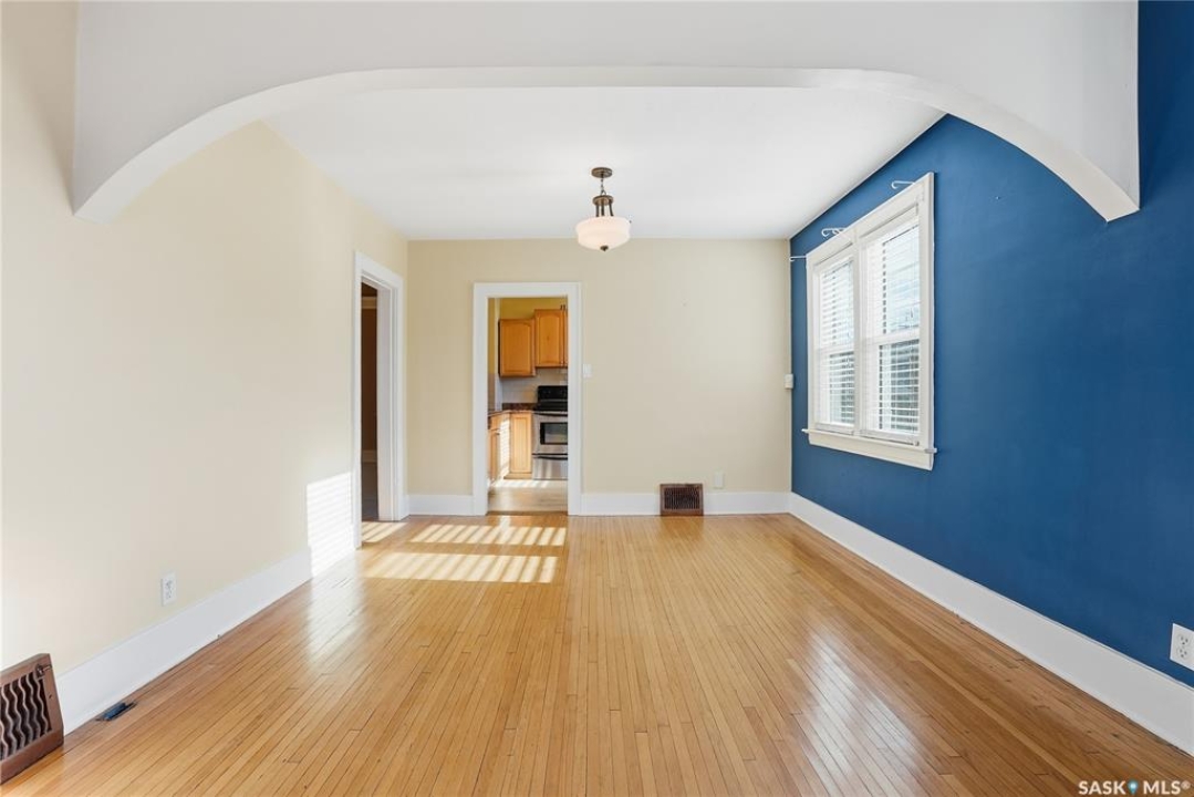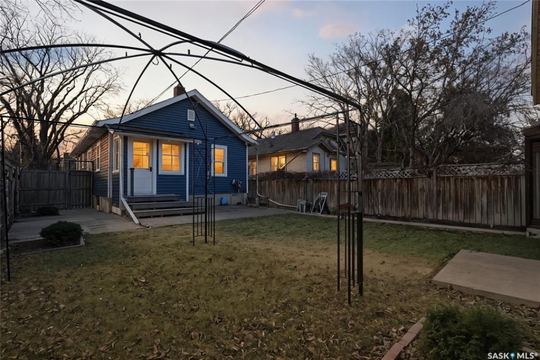 Welcome to the little blue bungalow on Avenue B North. Packed with charm and refreshed from top to bottom, this home blends character details with modern updates in all the right places. The exterior stands out with new siding, cedar shakes, updated windows, and shingles, giving it a bright, welcoming look. Inside, the living room offers warm hardwood floors and sunny windows that make the space feel cheerful and bright. The kitchen has been modernized with butcher-block counters, a tile backsplash, stainless appliances, and crisp cabinetry that adds style without trying too hard. Two cozy bedrooms and a full bath finish the main floor. Downstairs, you will find a fully developed basement with a large family room, a full 4-piece bathroom, one bedroom with a walk-in closet, and an additional flex room that can serve as an office, hobby space, gym, or storage. Laundry and mechanical are tucked neatly into the utility area. Outside, the yard is fenced with alley access, and the real surprise is the newer detached heated workshop. It is the size of a super-single garage and was framed so it can easily be converted into a garage if needed. Parks, schools, transit, groceries, coffee, and Sask Polytechnic are all just a short walk away, with downtown and Circle Drive minutes from the door. This little blue bungalow is move-in ready, full of personality, and easy to love the moment you step inside.