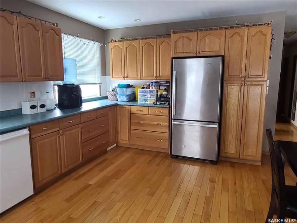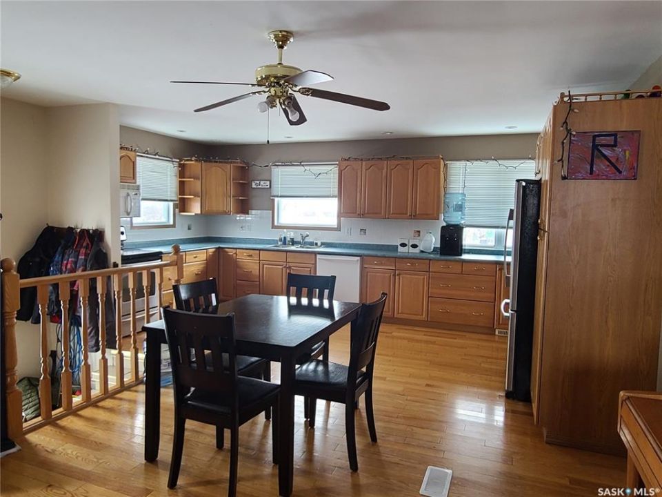 46 Newcombe Street. Nestled in the peaceful village of Manor this home sits on a 50'x120' lot. Built in 1970 with a total of 1,148 sqft and full basement that's partially finished. Open Concept Layout: The main floor welcomes you with an open concept kitchen, living room, and dining room, all adorned with hardwood flooring. There are three bedrooms on the main floor, providing comfortable accommodation for residents or guests. A 4-piece bathroom on the main floor offers convenience and functionality. The basement features a large recreation room with completed gyprock, paint, flooring, and trim. This space is ideal for entertaining or relaxation., 2-piece bathroom with plumbing for a 4-piece setup, offering the potential for further customization to meet the needs of the household. Utility/Laundry Room: A dedicated utility/laundry room provides practical solutions for household chores and storage needs. The basement offers lots of storage space, ensuring that residents have plenty of room to keep belongings organized. Spacious deck on the north side of the home provides an ideal outdoor space for relaxation, dining, or socializing. The backyard boasts plenty of trees and shrubs, offering privacy during the summer months. A gravel pad is ready for the construction of a garage, providing additional storage space or shelter for vehicles. Recent updates include a gas water heater installed in 2021, a high-efficiency gas furnace added in 2014, and new shingles in 2015. These updates contribute to the home's energy efficiency, comfort, and overall maintenance. Be sure to check out this property, schedule a viewing today!