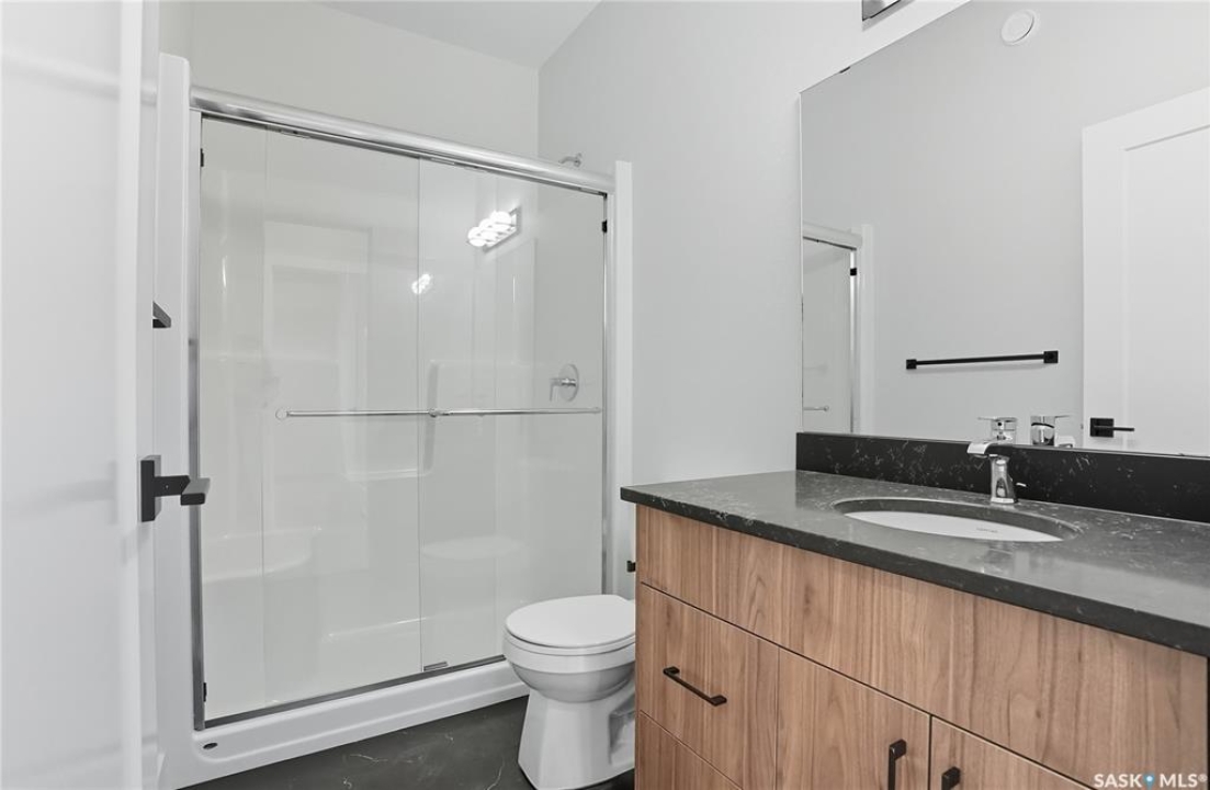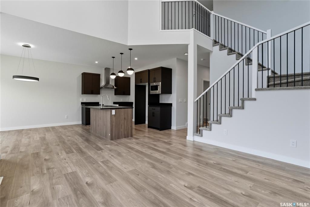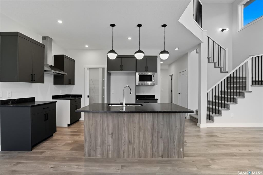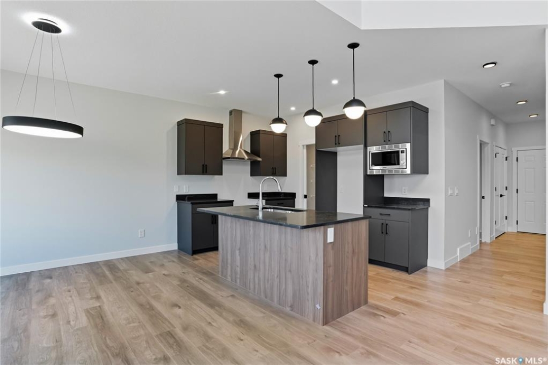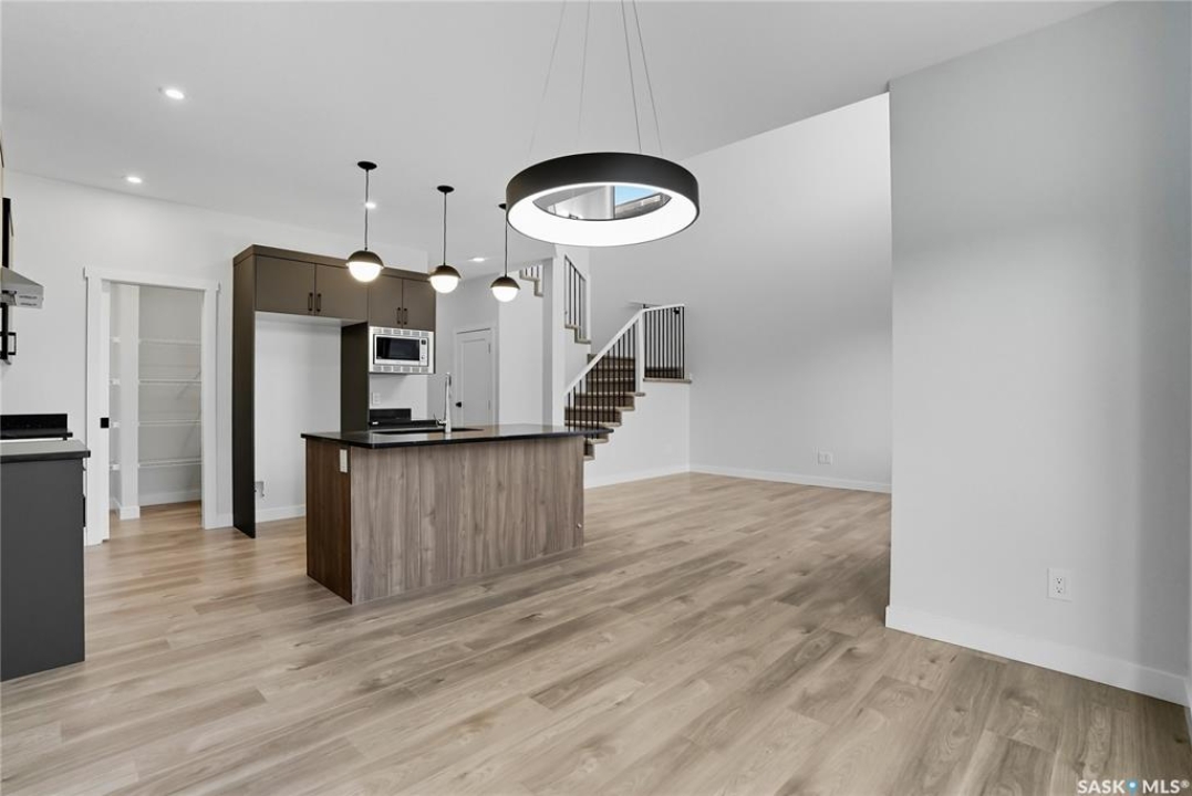 Immediate possession available! Step into this thoughtfully designed 1,766 sq ft Malibu model by North Prairie Developments, located in the vibrant community of Brighton. The open-concept layout is bathed in natural light, with soaring ceilings in the great room and expansive windows, creating an inviting atmosphere. On the main floor, you'll find a convenient bedroom and 3-piece bathroom, perfect for guests or a home office. The spacious kitchen features a large island, ideal for both meal prep and entertaining, and flows seamlessly into the dining area. For those who love extra storage and functionality, there's an option to include a spice kitchen/butler pantry in the walk-in pantry. Upstairs, the large primary bedroom offers a walk-in closet and a relaxing 4-piece ensuite, providing a private retreat. Two additional bedrooms, a second 4-piece bathroom, and a laundry room complete the upper floor, offering both comfort and convenience. This home also features a double attached garage, making it perfect for modern family living. This plan has an option for a 1 bedroom legal basement suite. All North Prairie homes are covered under the Saskatchewan Home Warranty program. PST & GST included in the purchase price with a rebate to the builder. Errors and omissions excluded. Prices, plans, promotions, and specifications subject to change without notice. Basement development is an optional upgrade.