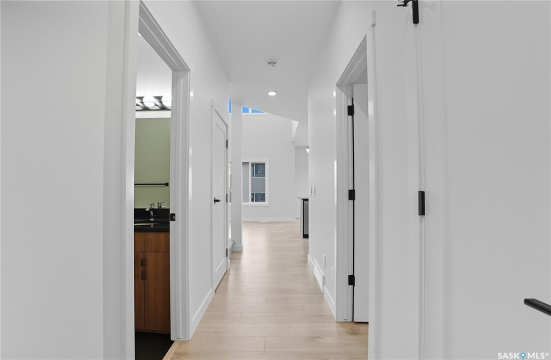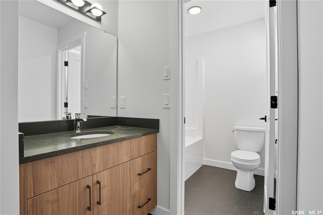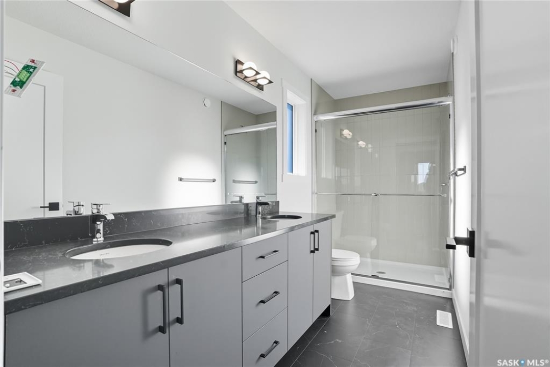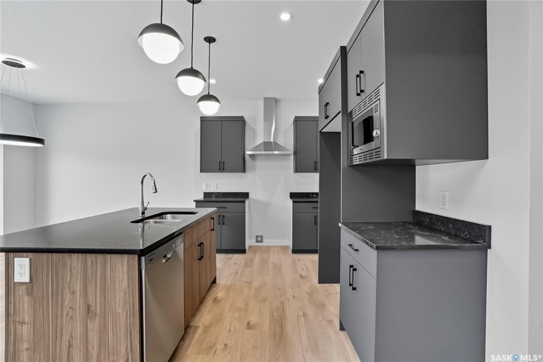 Immediate possession available! Step into this thoughtfully designed 1,766 sq ft Malibu model by North Prairie Developments, located in the vibrant community of Brighton. The open-concept layout is bathed in natural light, with soaring ceilings in the great room and expansive windows, creating an inviting atmosphere. On the main floor, you'll find a convenient bedroom and 3-piece bathroom, perfect for guests or a home office. The spacious kitchen features a large island, ideal for both meal prep and entertaining, and flows seamlessly into the dining area. For those who love extra storage and functionality, there's an option to include a spice kitchen/butler pantry in the walk-in pantry. Upstairs, the large primary bedroom offers a walk-in closet and a relaxing 4-piece ensuite, providing a private retreat. Two additional bedrooms, a second 4-piece bathroom, and a laundry room complete the upper floor, offering both comfort and convenience. This home also features a double attached garage, making it perfect for modern family living. This plan has an option for a 1 bedroom legal basement suite. All North Prairie homes are covered under the Saskatchewan Home Warranty program. PST & GST included in the purchase price with a rebate to the builder. Errors and omissions excluded. Prices, plans, promotions, and specifications subject to change without notice. Basement development is an optional upgrade.