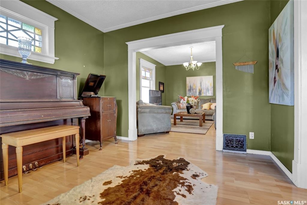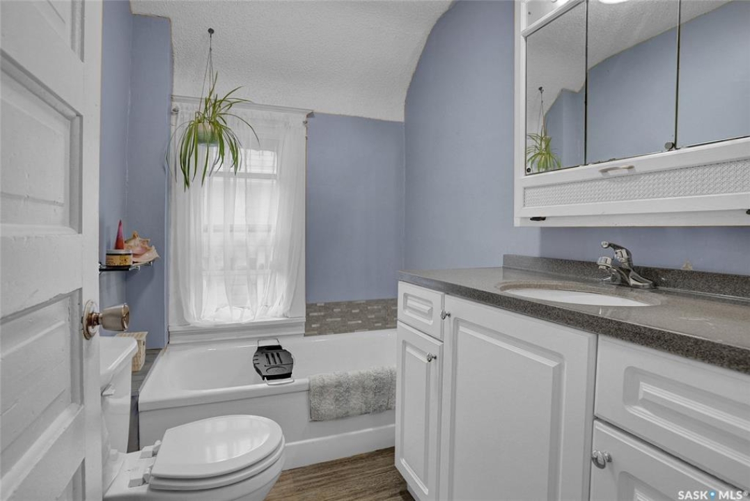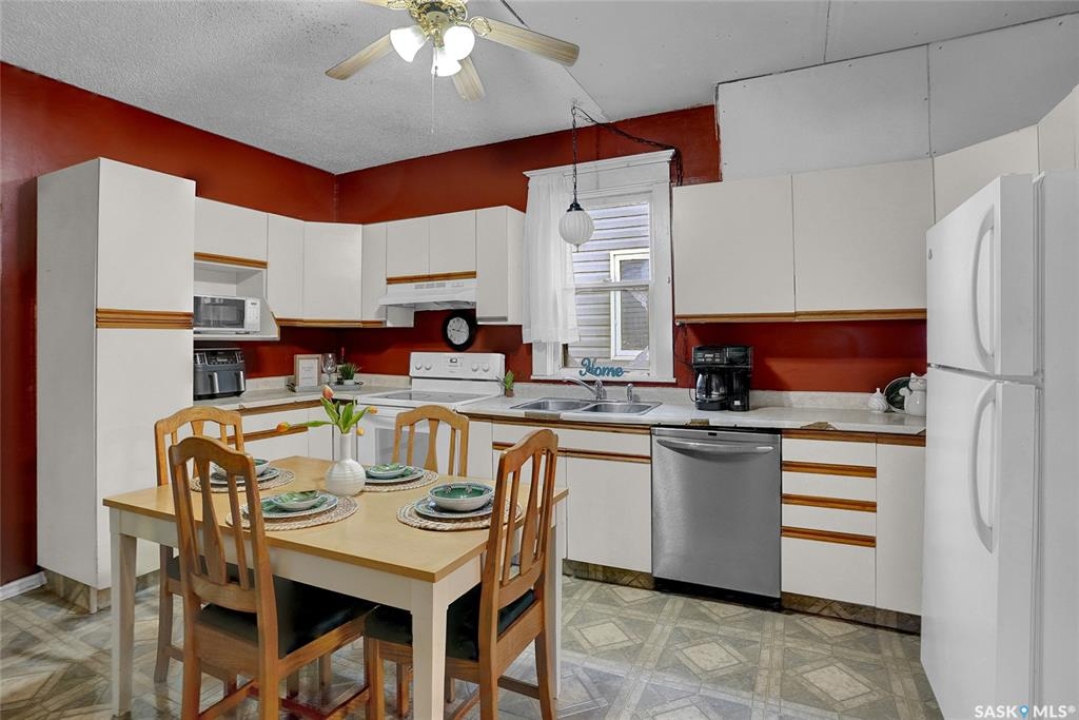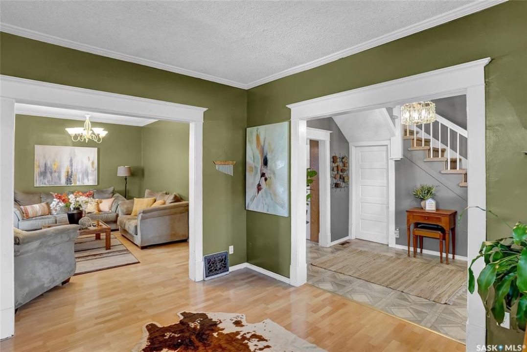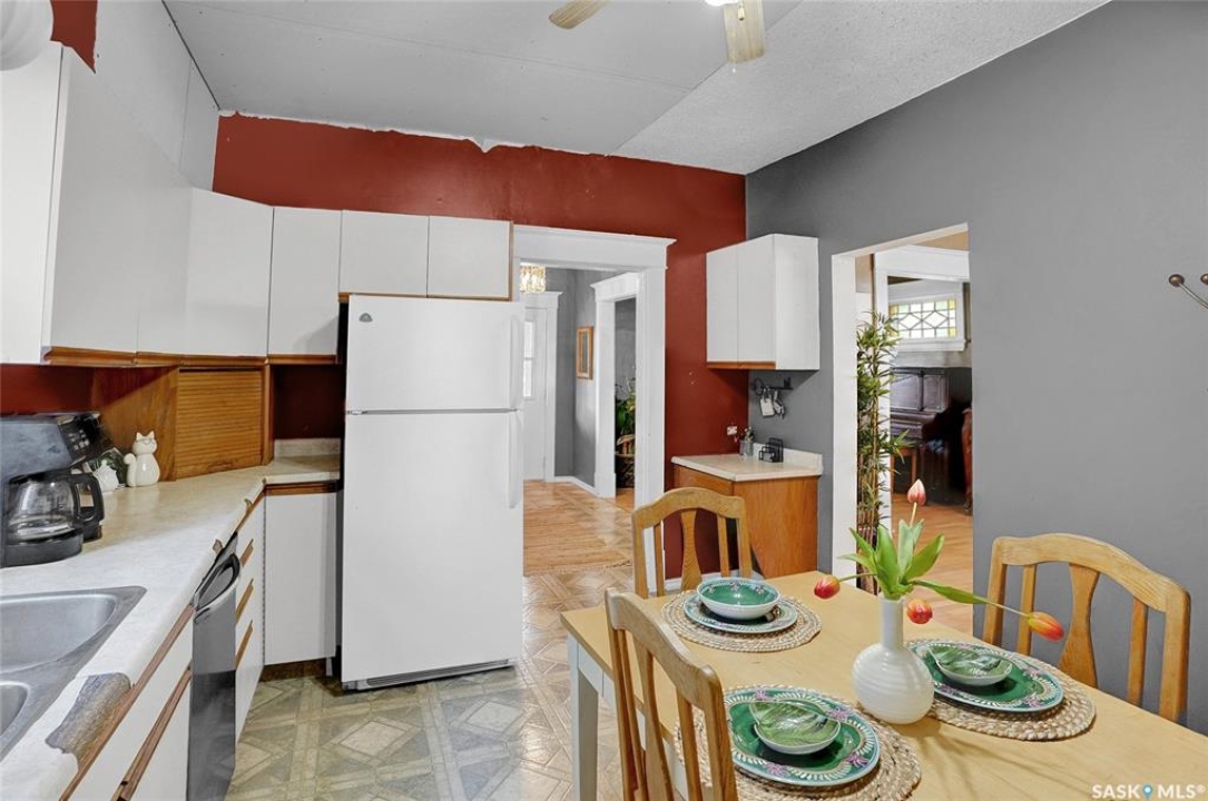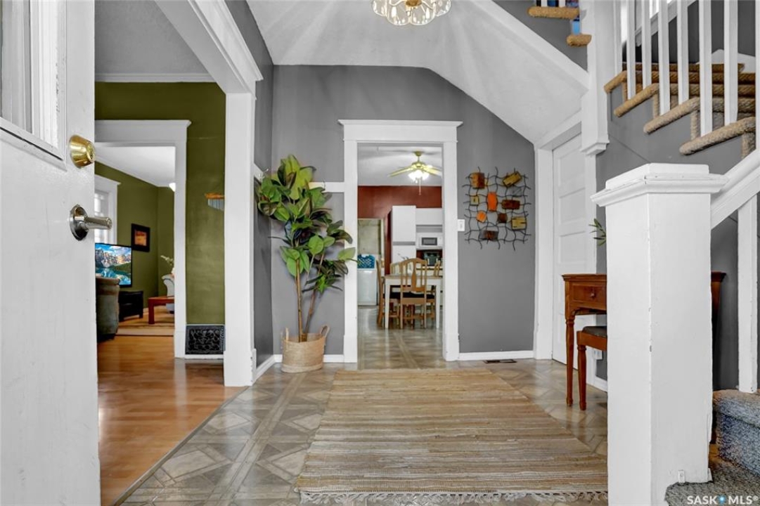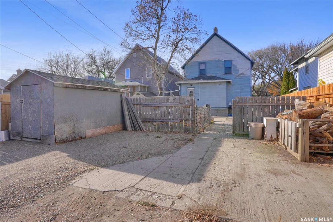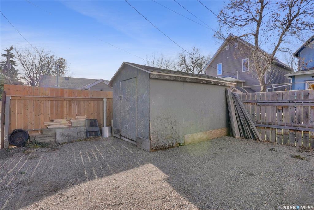 Nestled on a tree-lined street in the “Avenues of Moose Jaw” this home has been owned by the current over 20 years where they cherished creating family memories. It is ready for new owners to add their personal touches to create their own memories. This 1.5 Storey home invites you by the front open veranda that is the starting point to welcome you & guests into the foyer. This opens into the Living Room with laminate flooring running into the Dining Room, great spaces to entertain and relax with the family. The kitchen with European style cabinetry has great cabinetry storage, and note where there is new drywall placed, the stack to the home has been recently replaced. Off the kitchen is a mudroom which also houses main floor laundry, and the seller has started to install/renovate a bath (not completed), toilet is included (not completed). The 2nd floor enjoys not only the primary bedroom which is sized for a king size suite but 3 additional bedrooms making it a 4-bedroom home. This floor is complete with a 3pc. Bath that has been updated. The lower level is set for a possible family room, storage, and utility. The yard is set with nice green space and parking off alley and a Shed. This is a home priced to sell. Call today for your personal tour and CLICK on the MULTI MEDIA LINK FOR A FULL VISUAL TOUR.