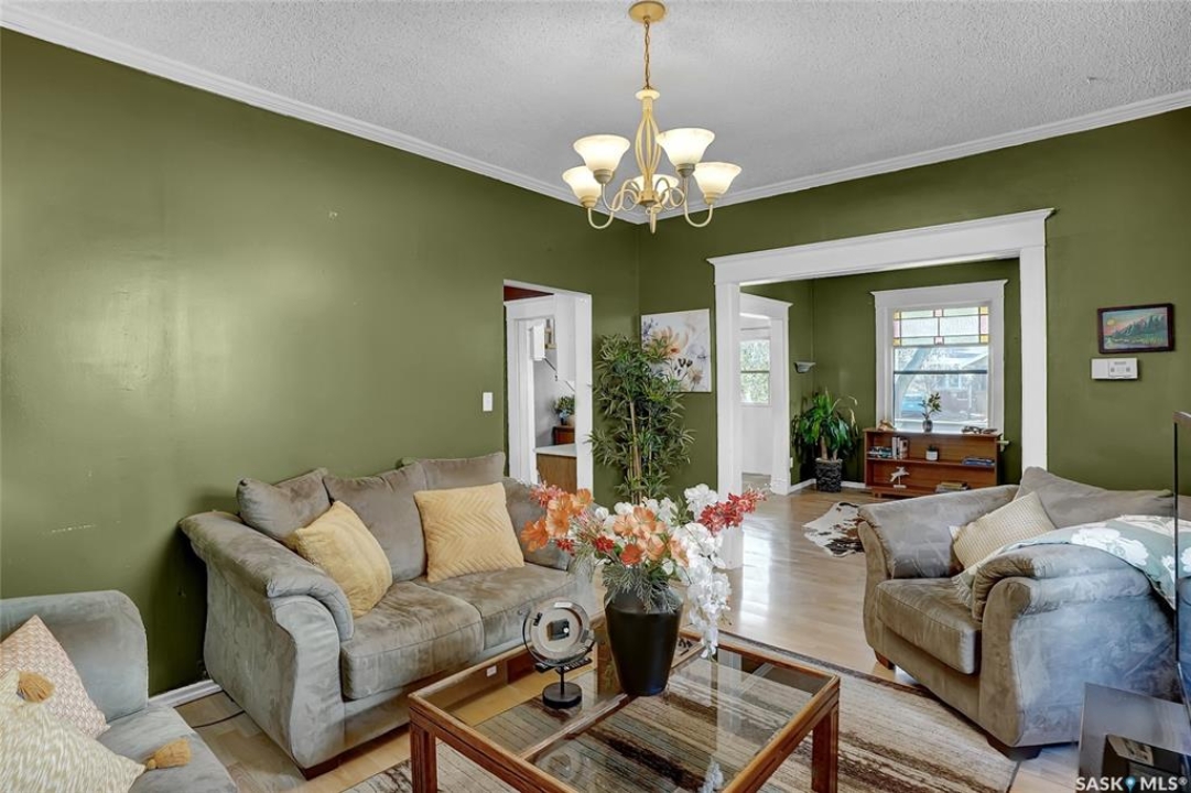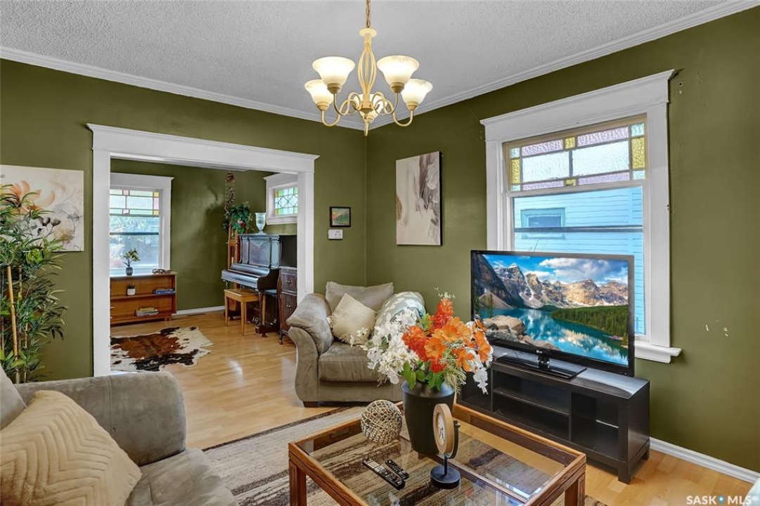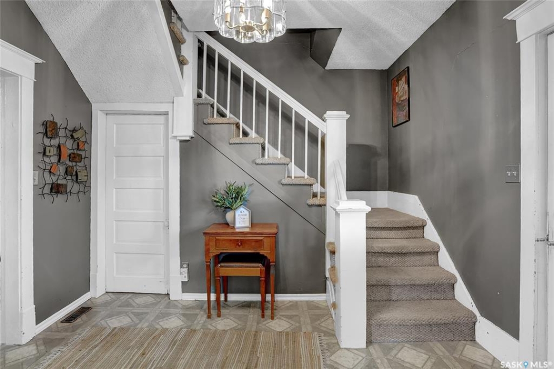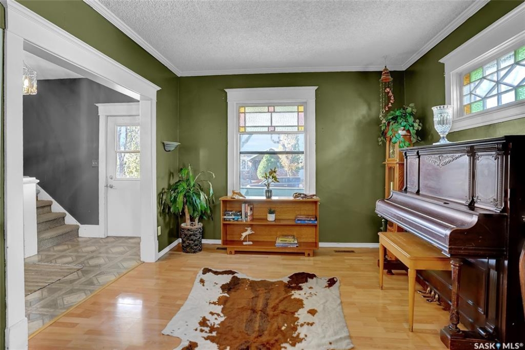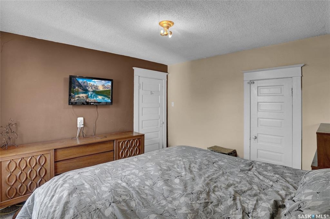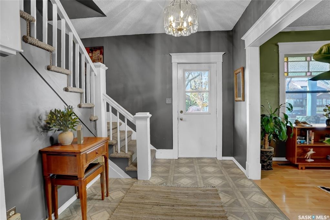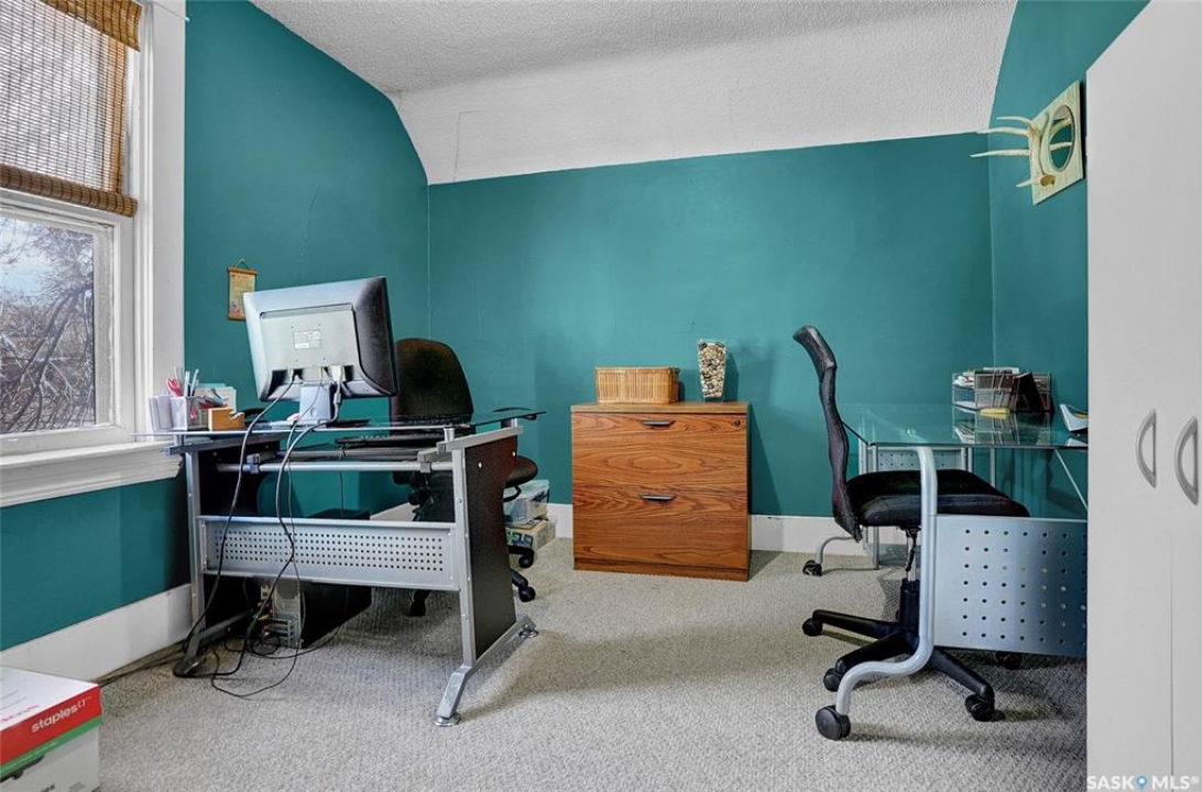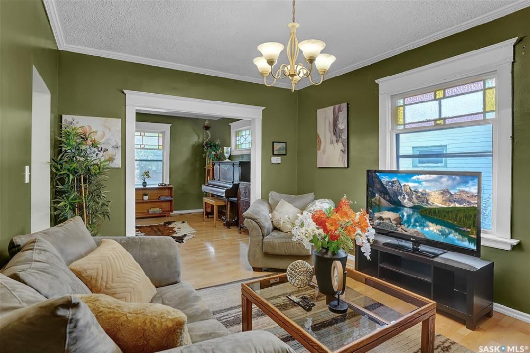 Nestled on a tree-lined street in the “Avenues of Moose Jaw” this home has been owned by the current over 20 years where they cherished creating family memories. It is ready for new owners to add their personal touches to create their own memories. This 1.5 Storey home invites you by the front open veranda that is the starting point to welcome you & guests into the foyer. This opens into the Living Room with laminate flooring running into the Dining Room, great spaces to entertain and relax with the family. The kitchen with European style cabinetry has great cabinetry storage, and note where there is new drywall placed, the stack to the home has been recently replaced. Off the kitchen is a mudroom which also houses main floor laundry, and the seller has started to install/renovate a bath (not completed), toilet is included (not completed). The 2nd floor enjoys not only the primary bedroom which is sized for a king size suite but 3 additional bedrooms making it a 4-bedroom home. This floor is complete with a 3pc. Bath that has been updated. The lower level is set for a possible family room, storage, and utility. The yard is set with nice green space and parking off alley and a Shed. This is a home priced to sell. Call today for your personal tour and CLICK on the MULTI MEDIA LINK FOR A FULL VISUAL TOUR.